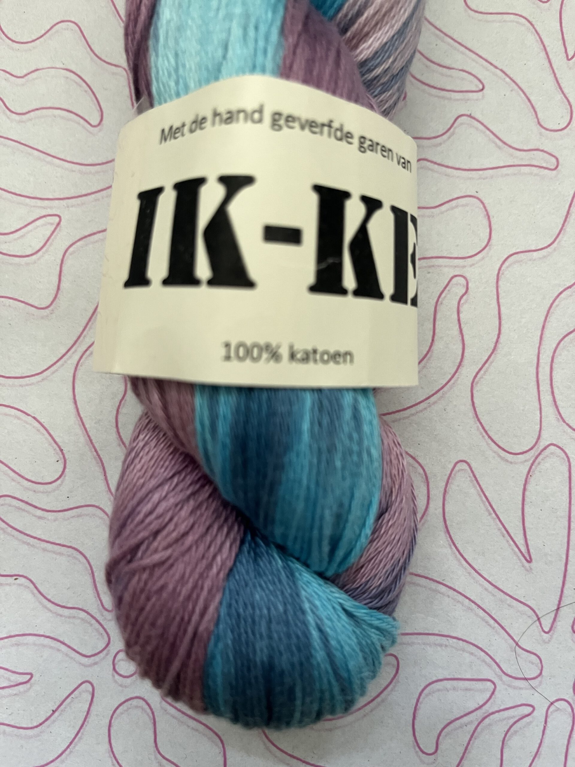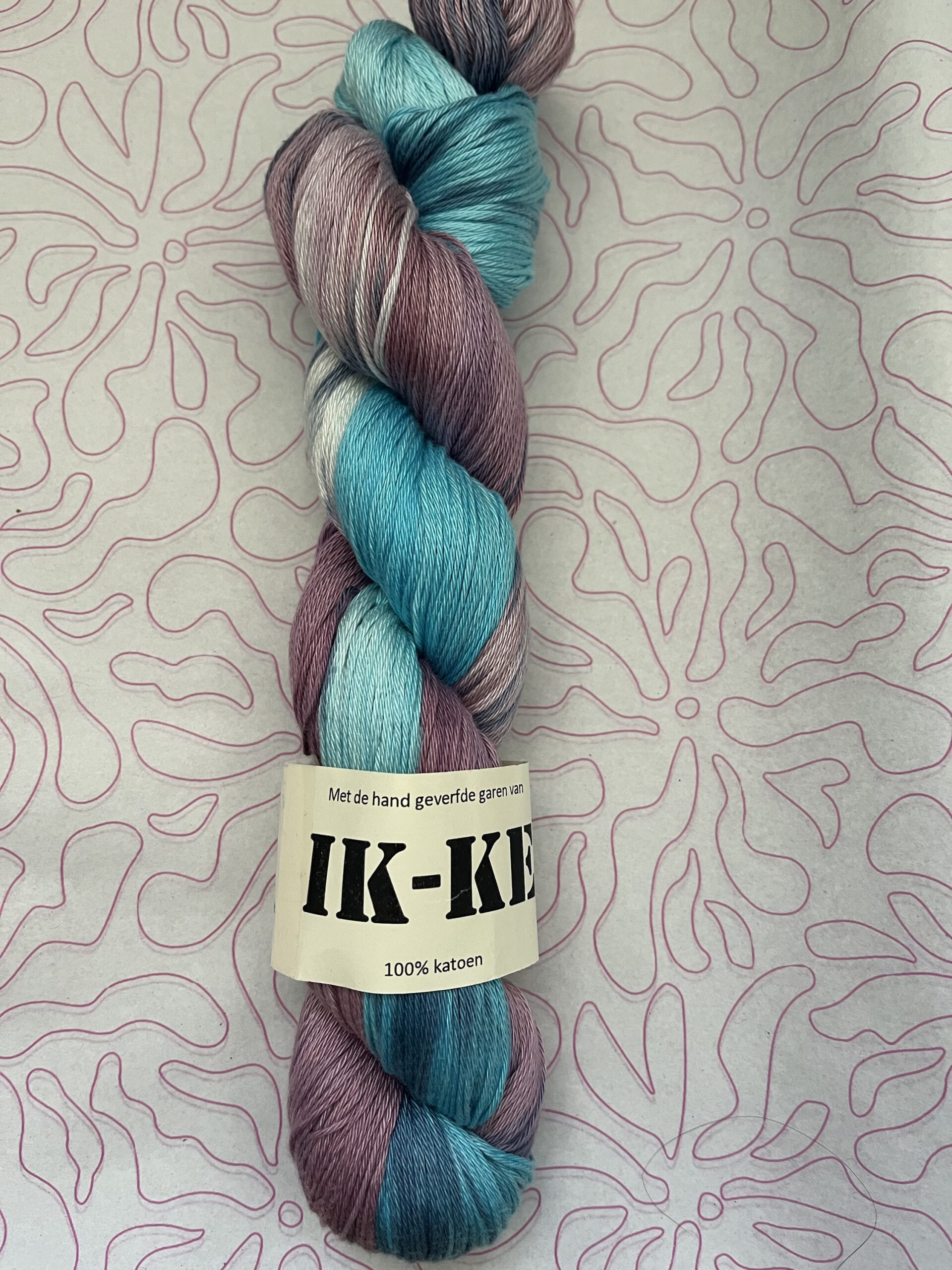 Handgeverfde 100% katoenen garen in de kleur Aurora.