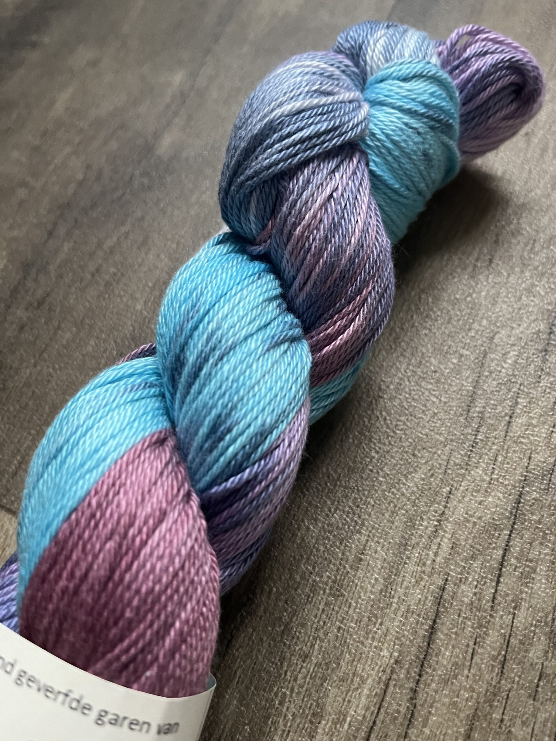 Er is geen streng qua kleur precies hetzelfde, ook al komen de strengen uit hetzelfde verfbad. Dit komt doordat de strengen met de hand geverfd worden en de kleuren elke streng net iets anders kunnen raken.