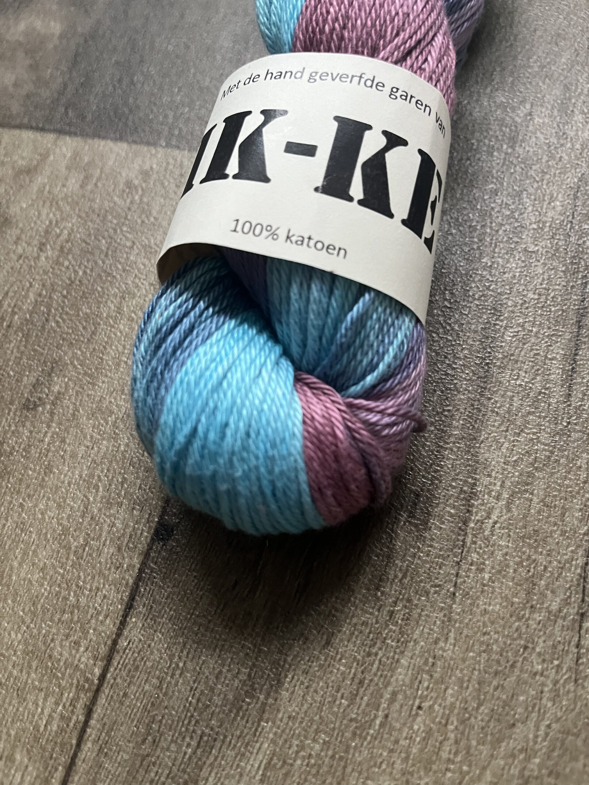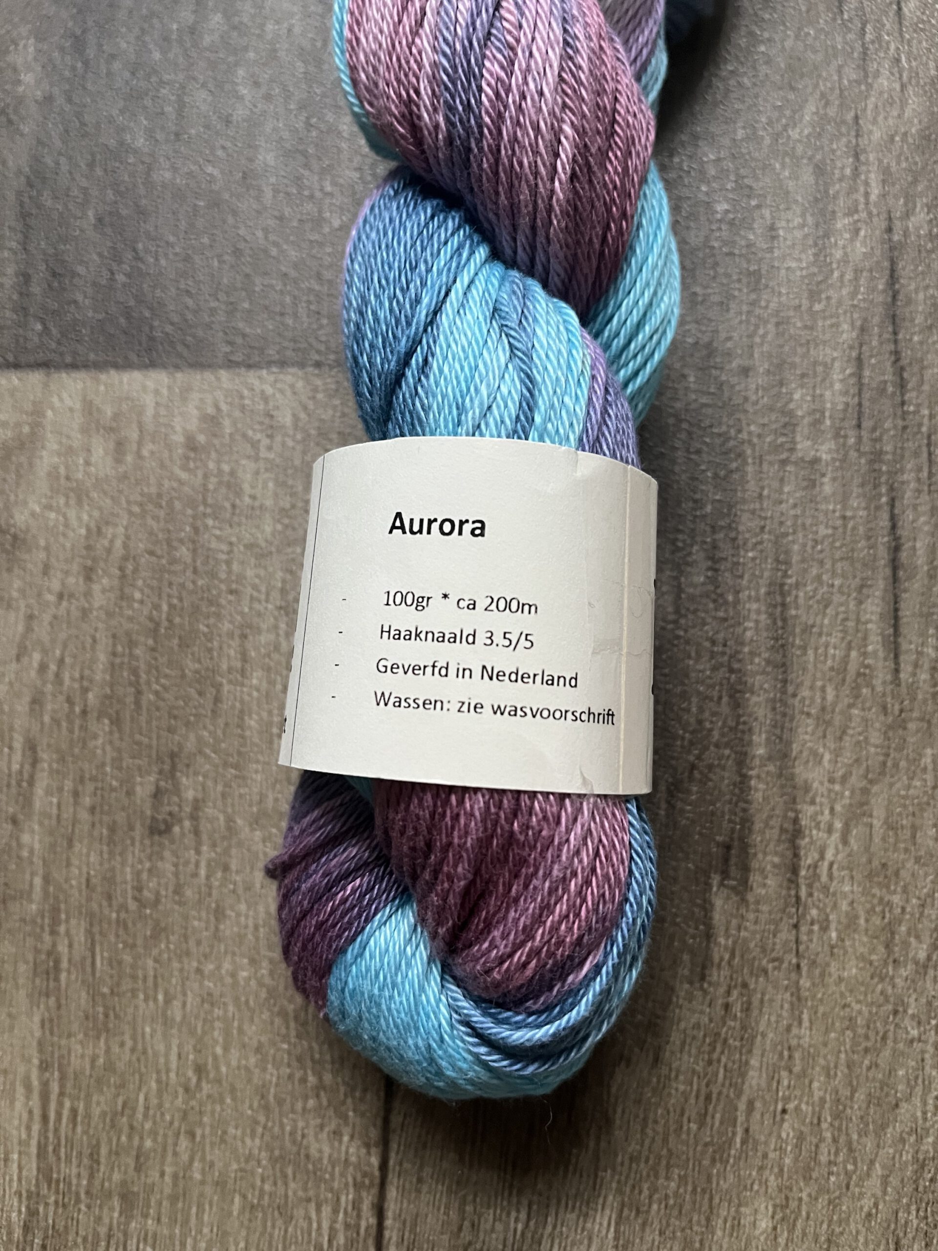 Handgeverfde 100% katoenen garen in de kleur Aurora.