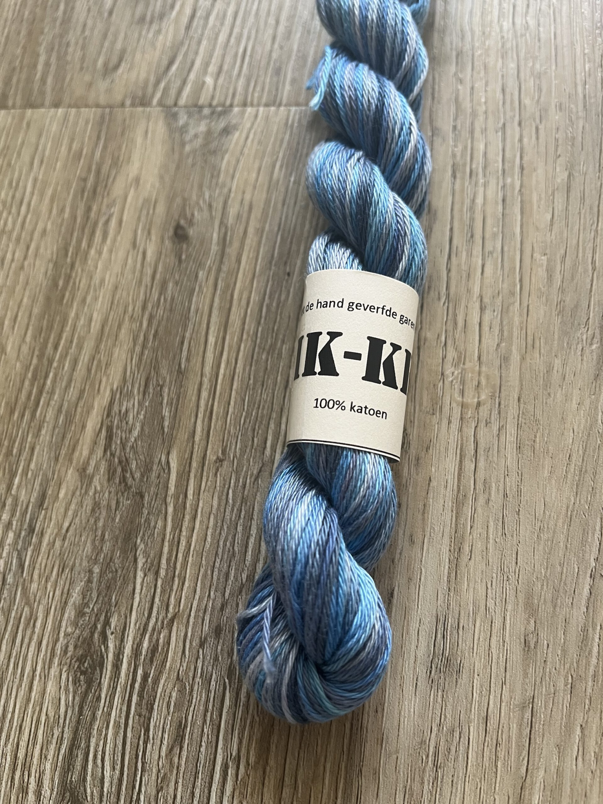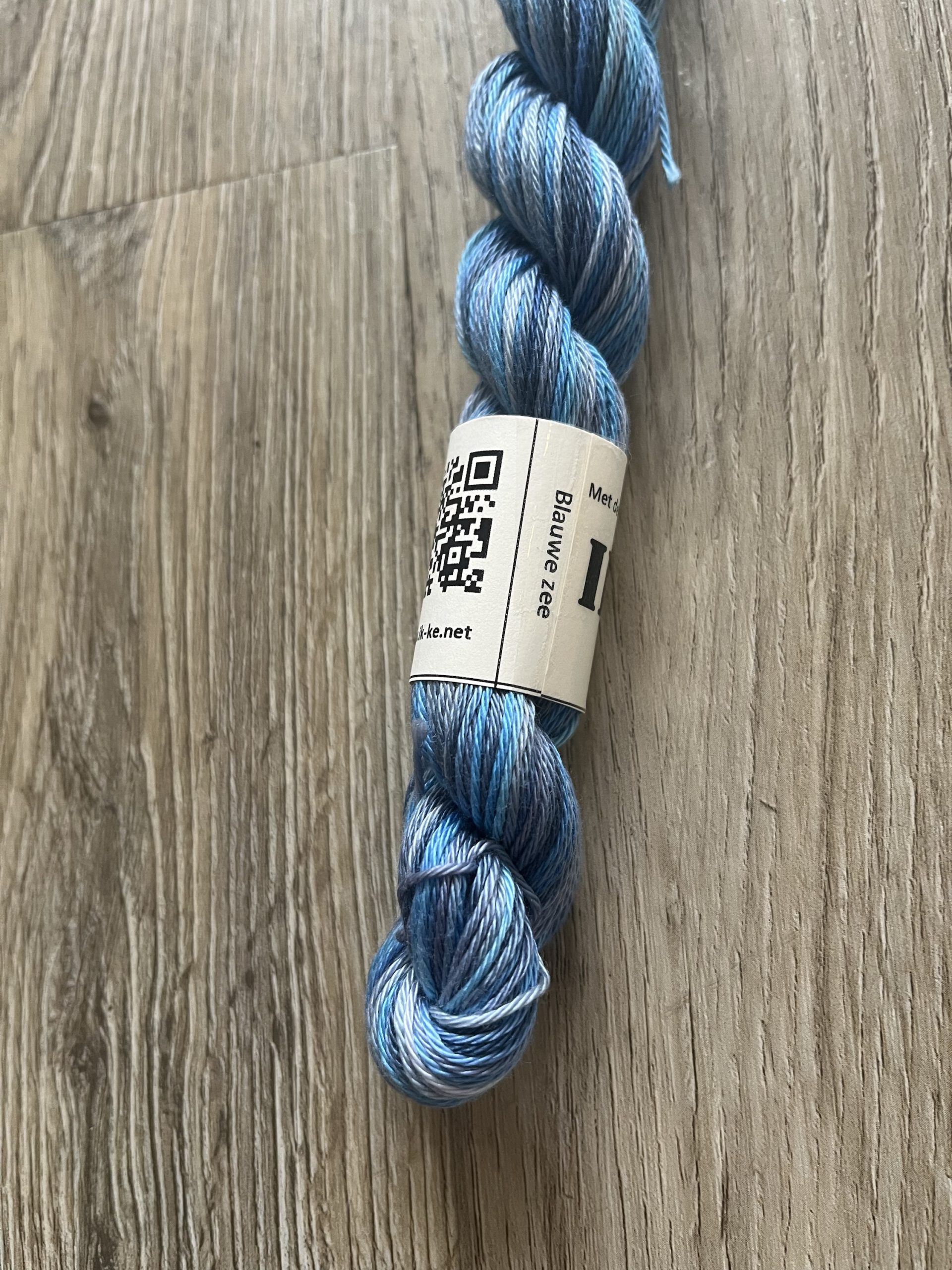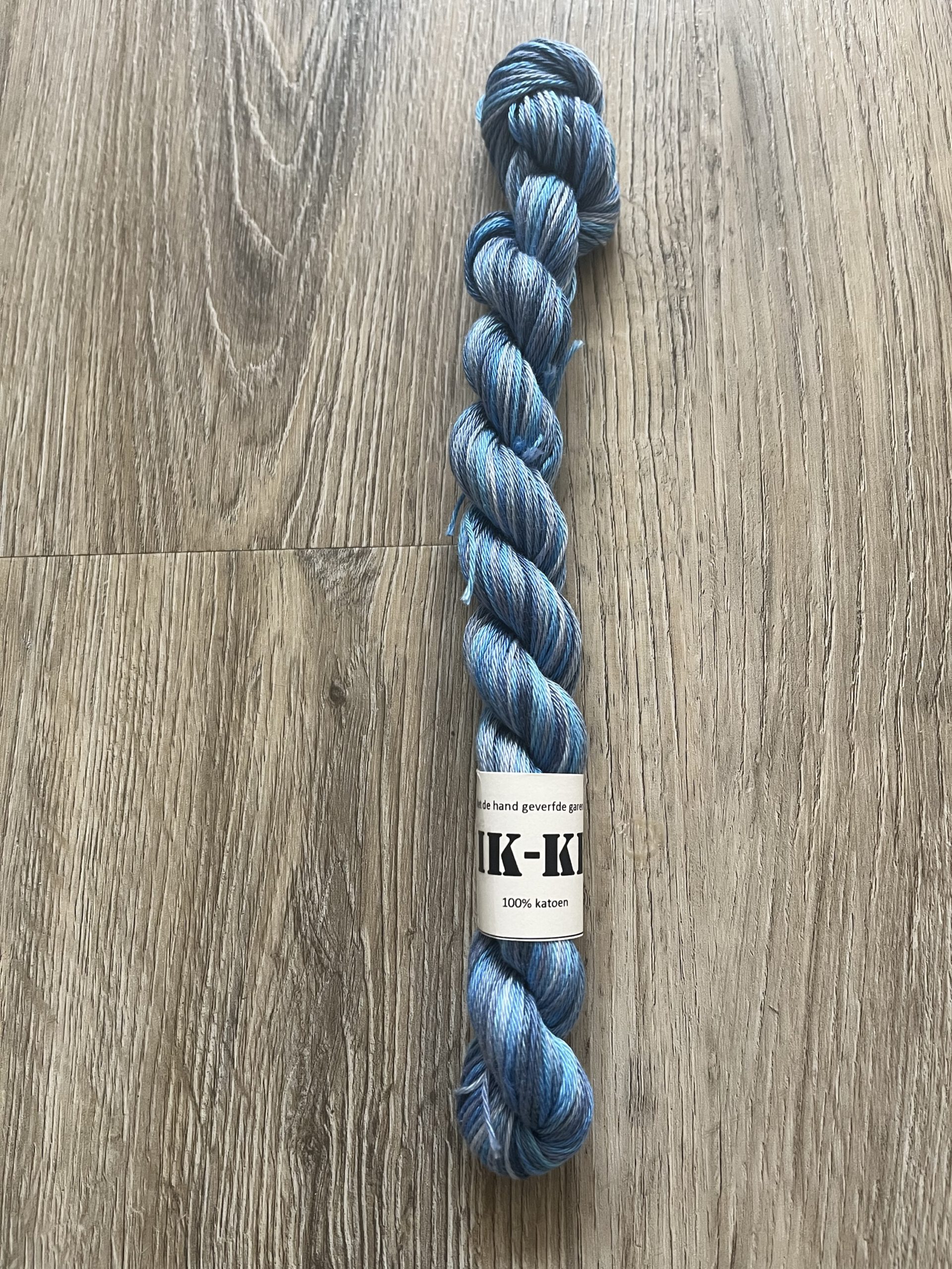 Handgeverfde 100% katoenen garen in de kleur Blauwe zee.