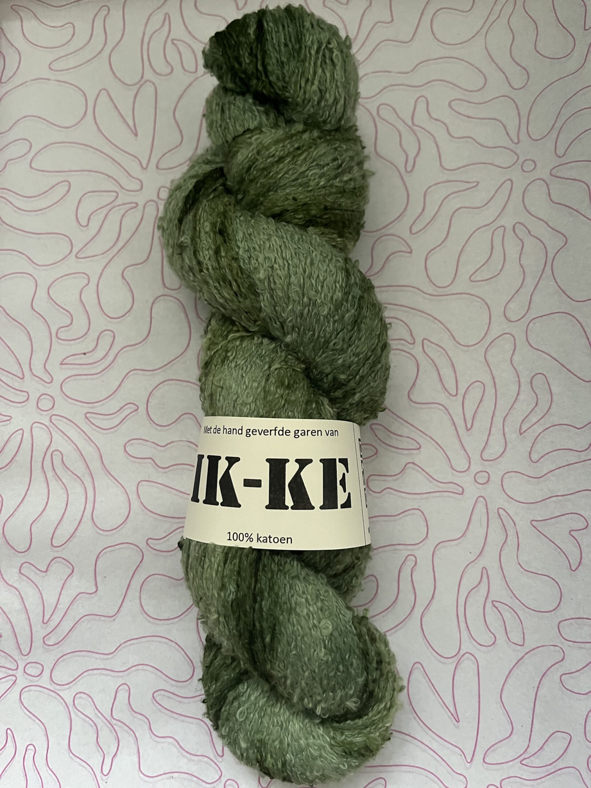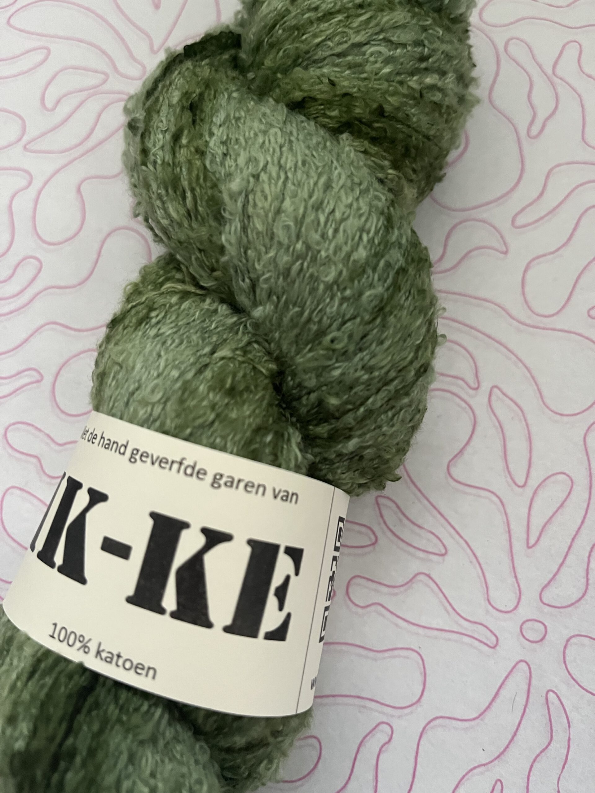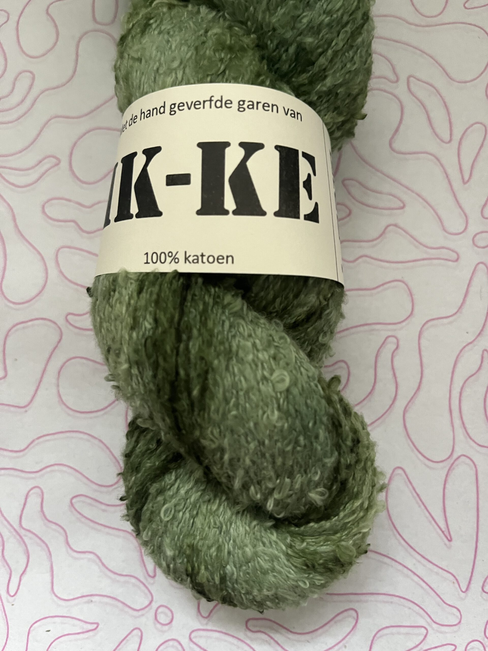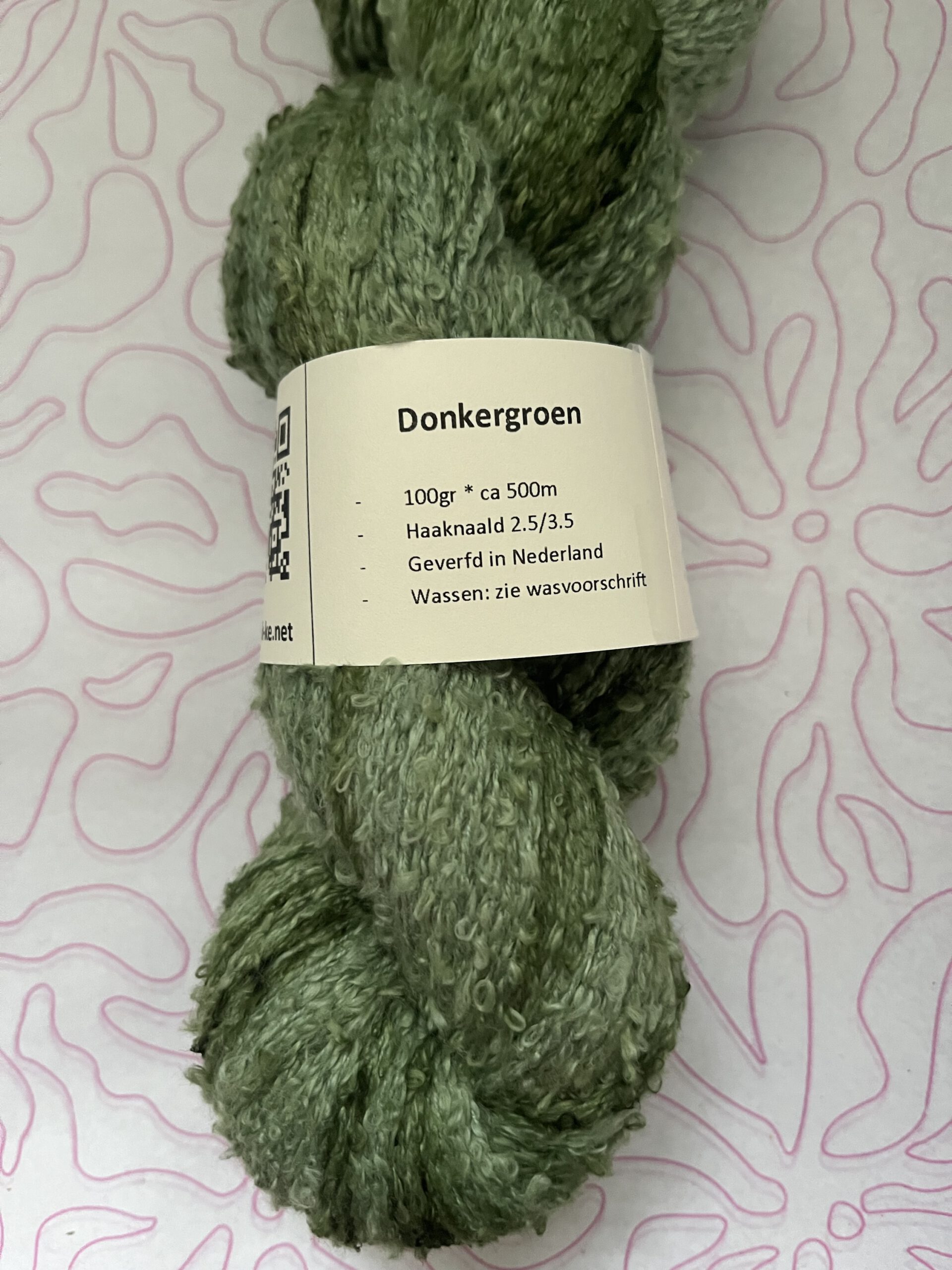 Handgeverfde 100% katoenen garen bouclé in de kleur Donkergroen.