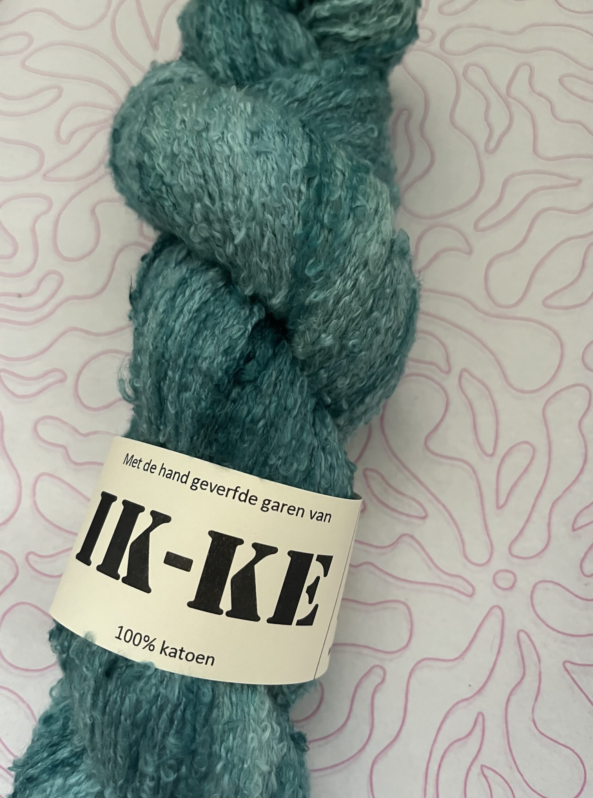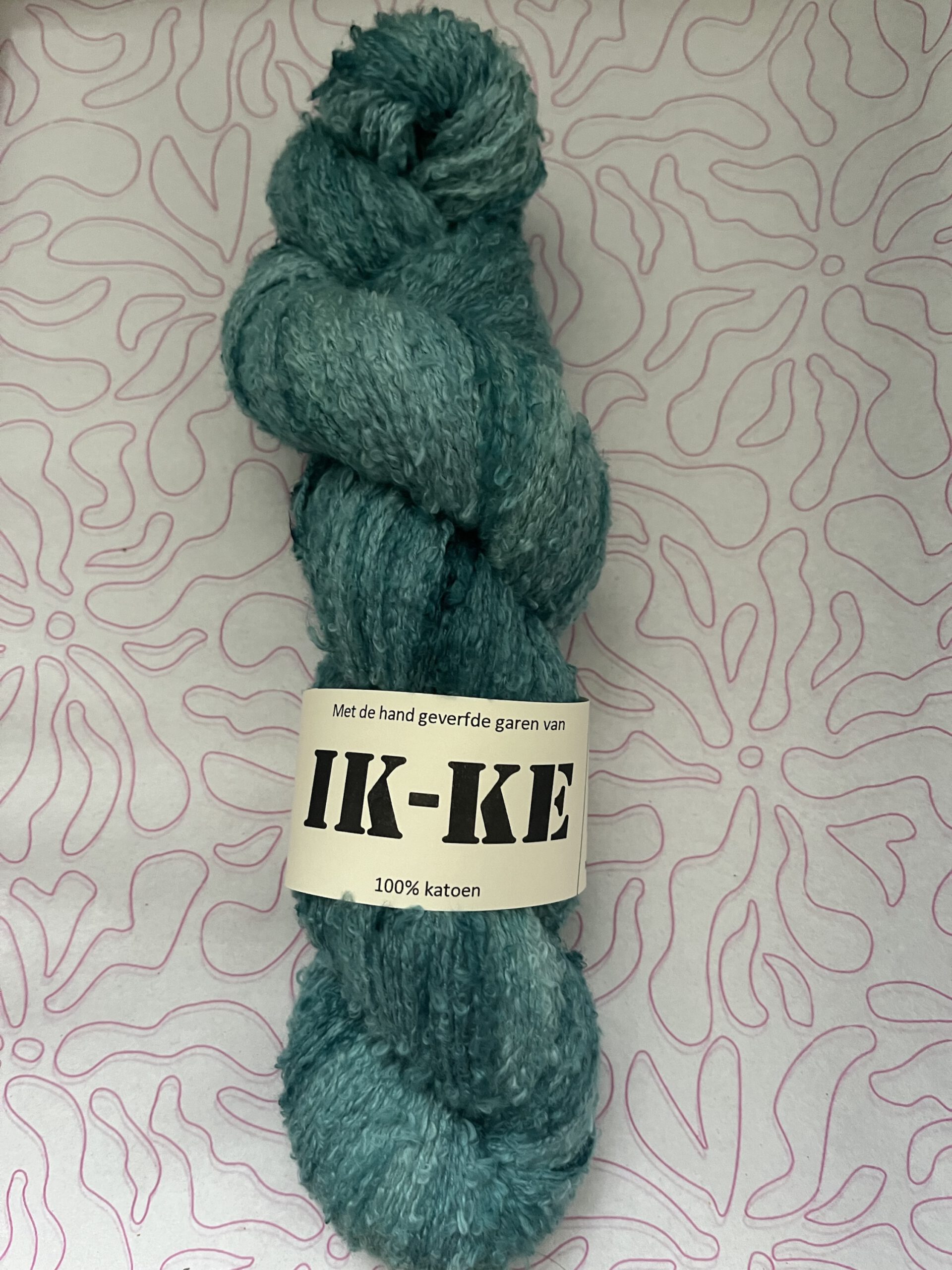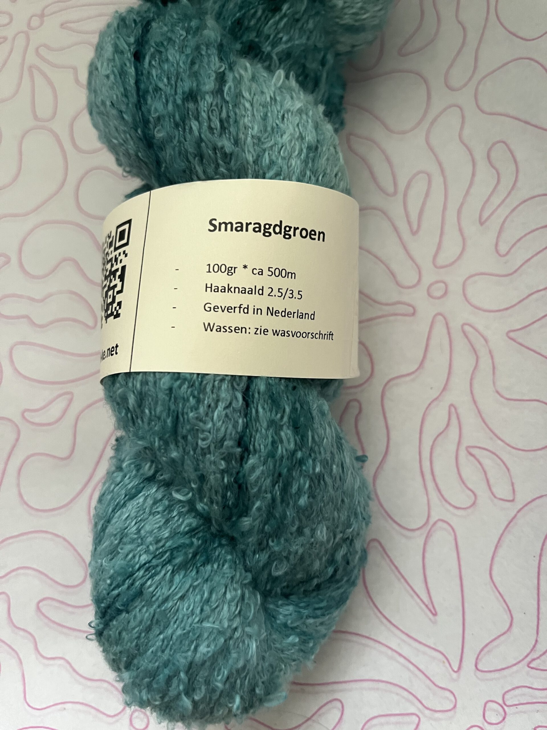 Handgeverfde 100% katoenen garen bouclé in de kleur Smaragdgroen.
