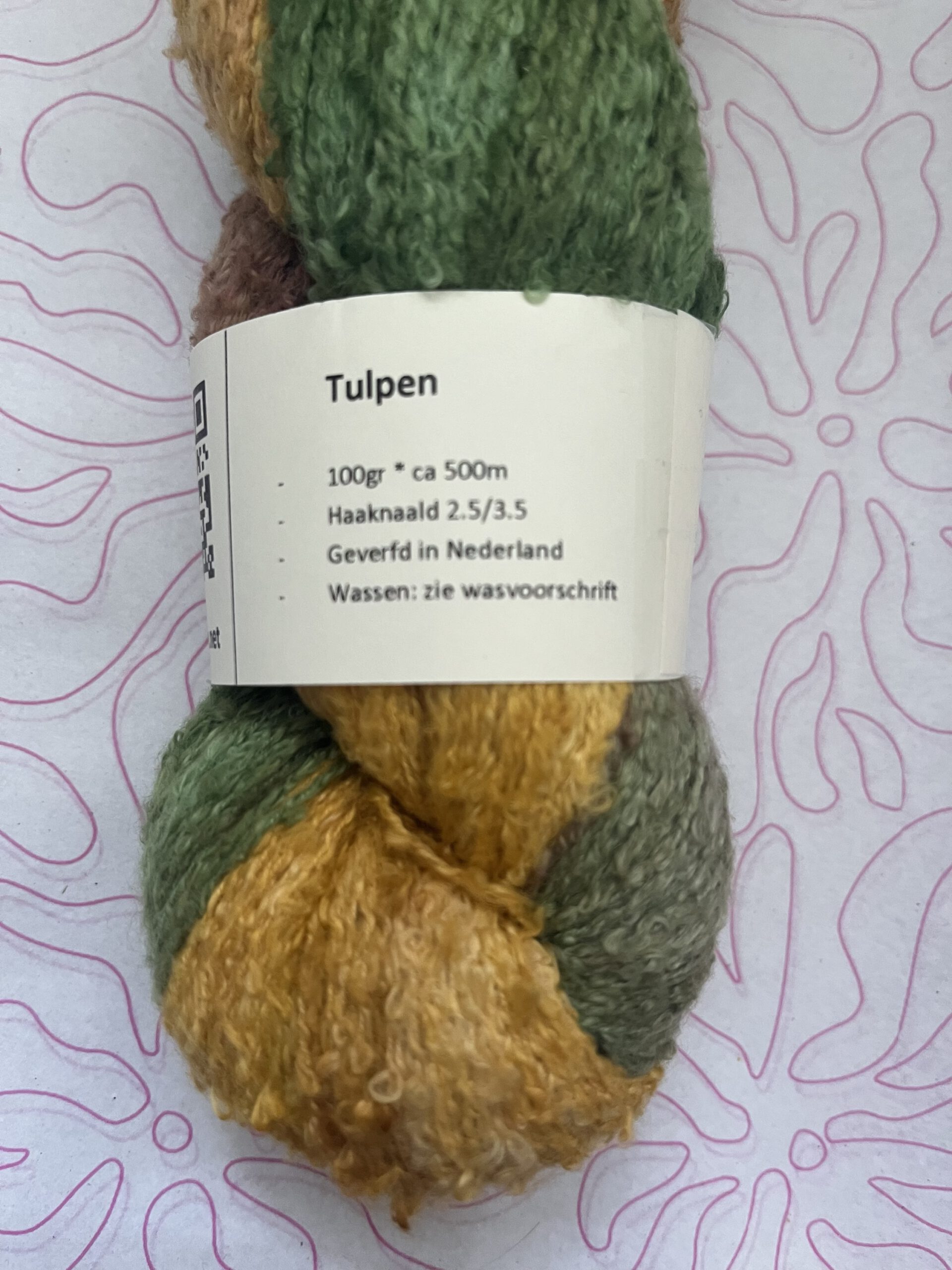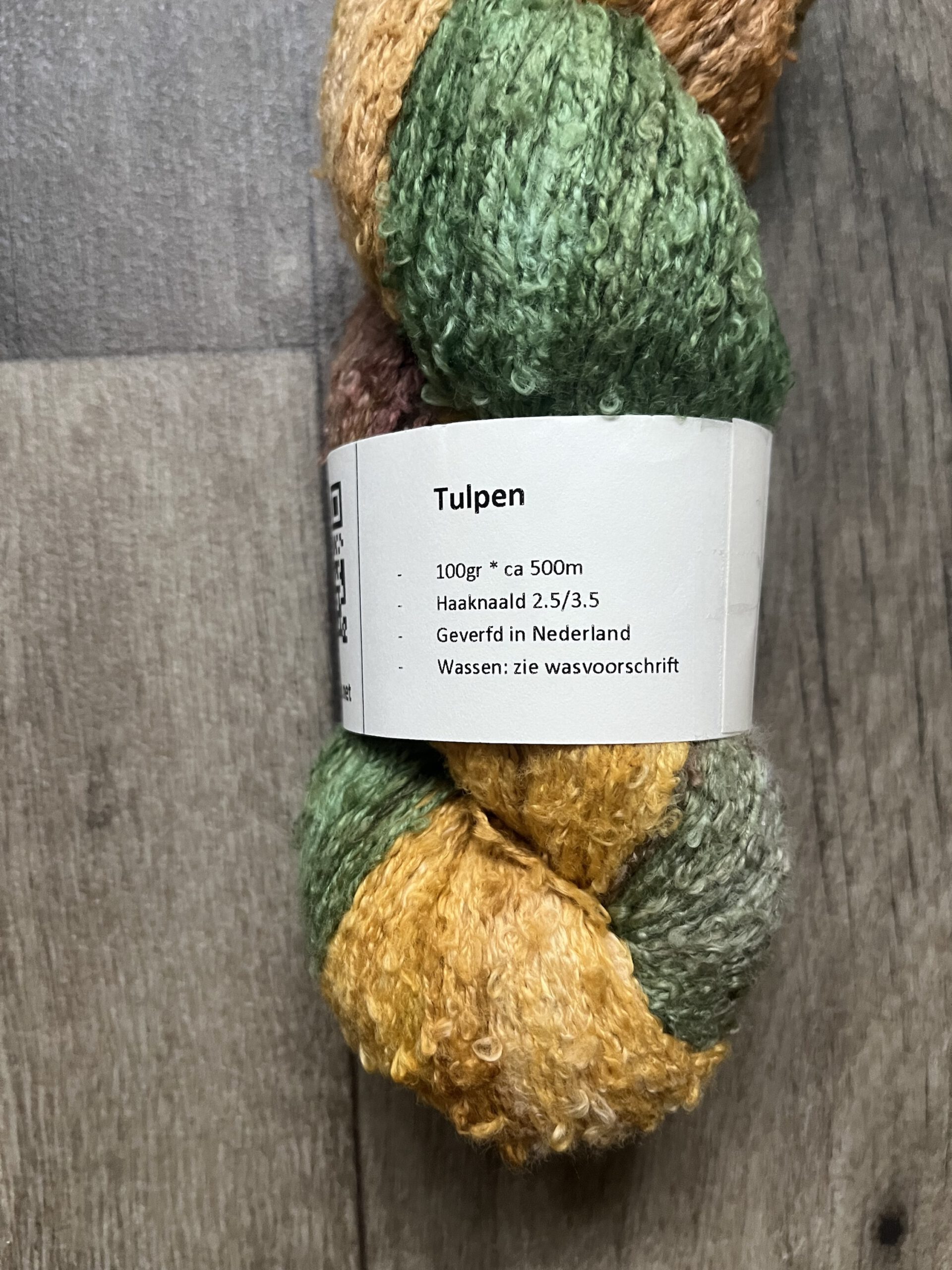 Handgeverfde garen katoen bouclé – Tulpen 500m/100gr
