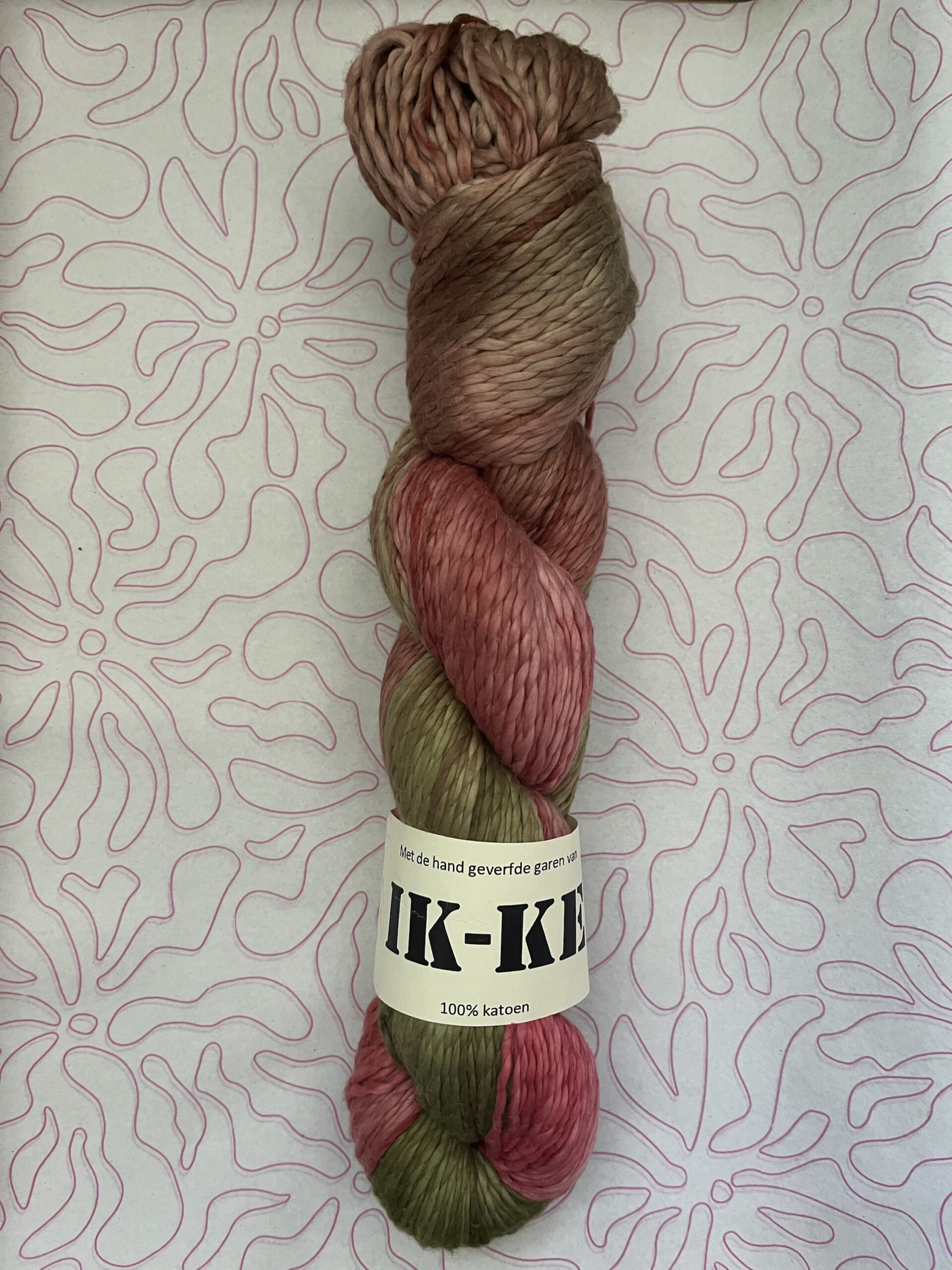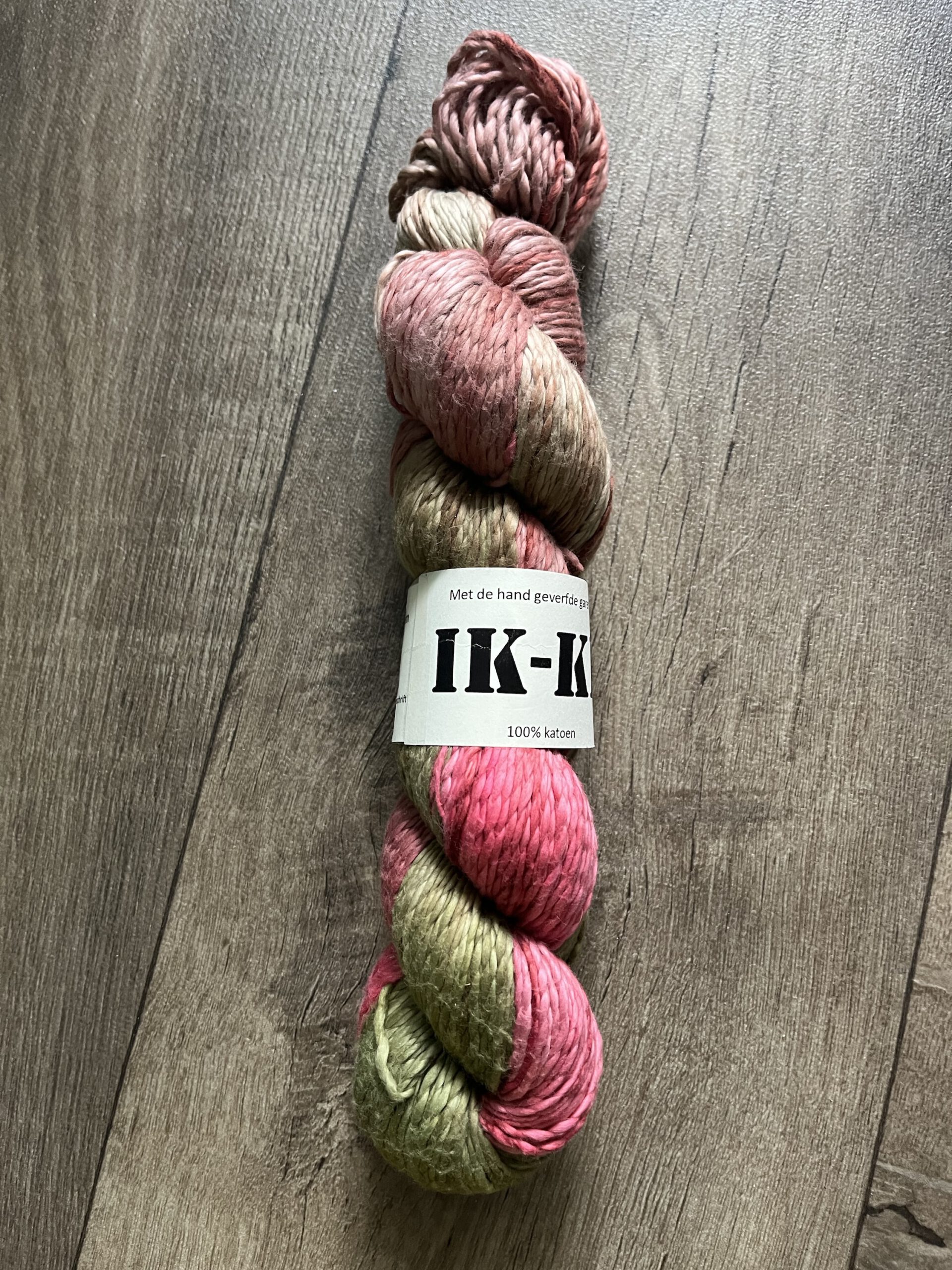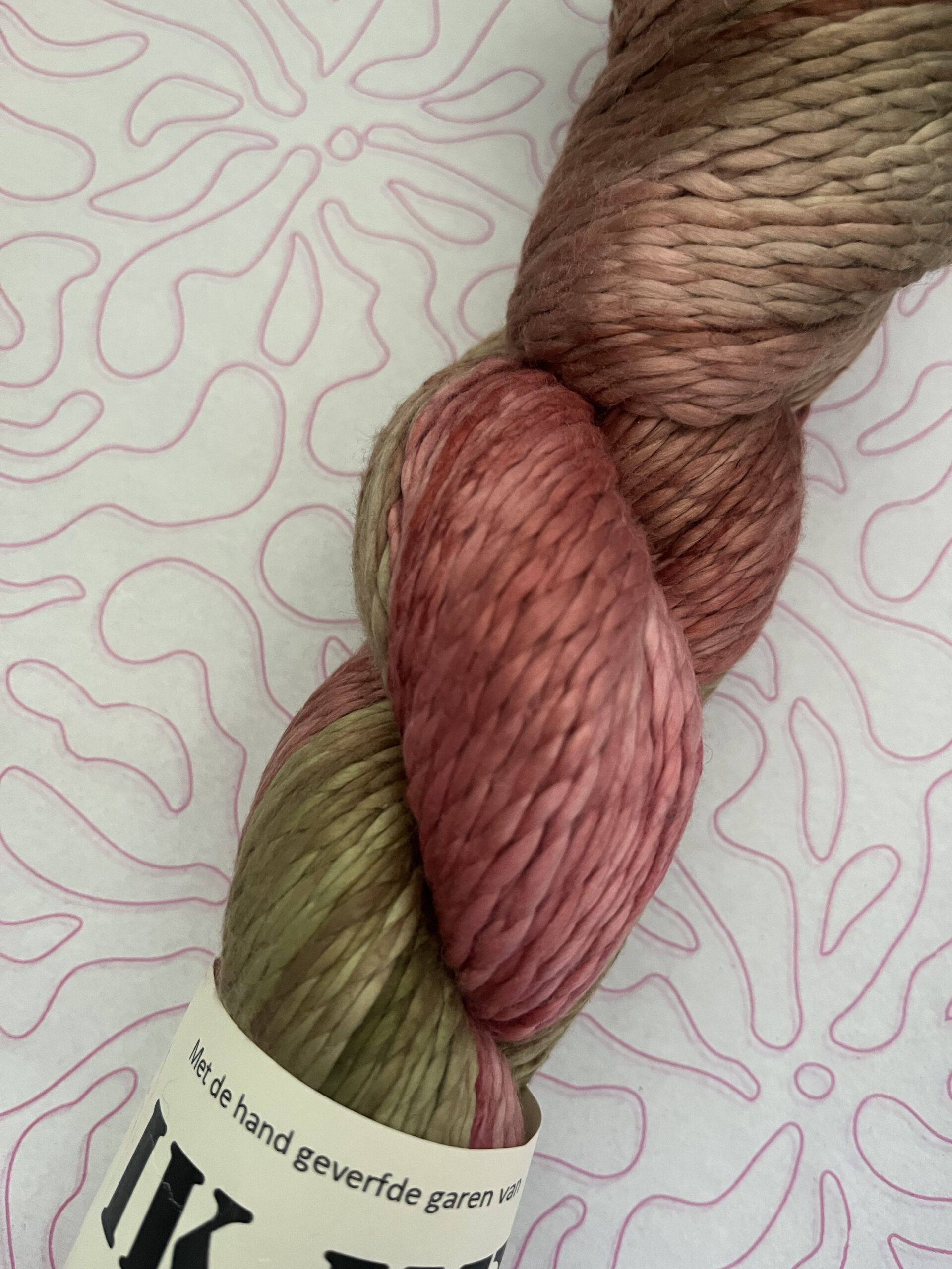 Handgeverfde 100% katoenen garen in de kleur Kersenbloesem.