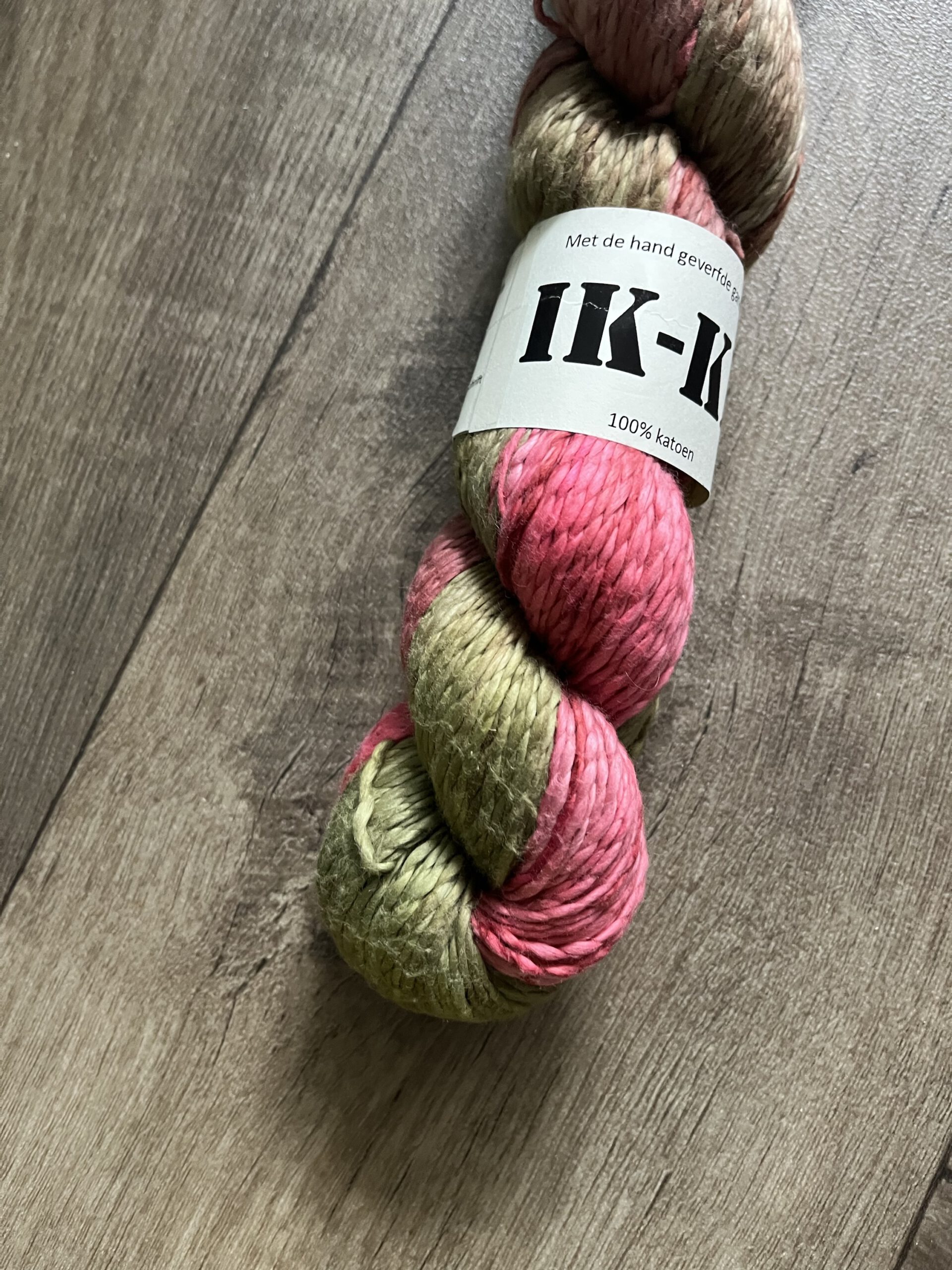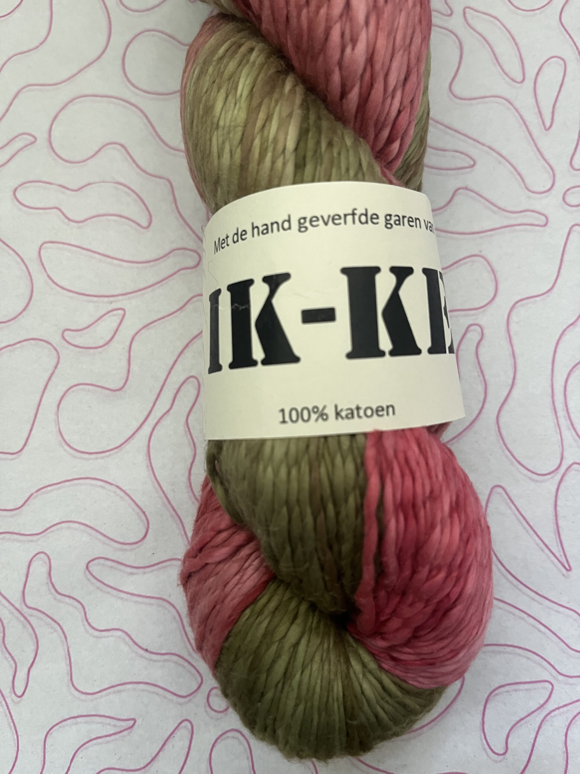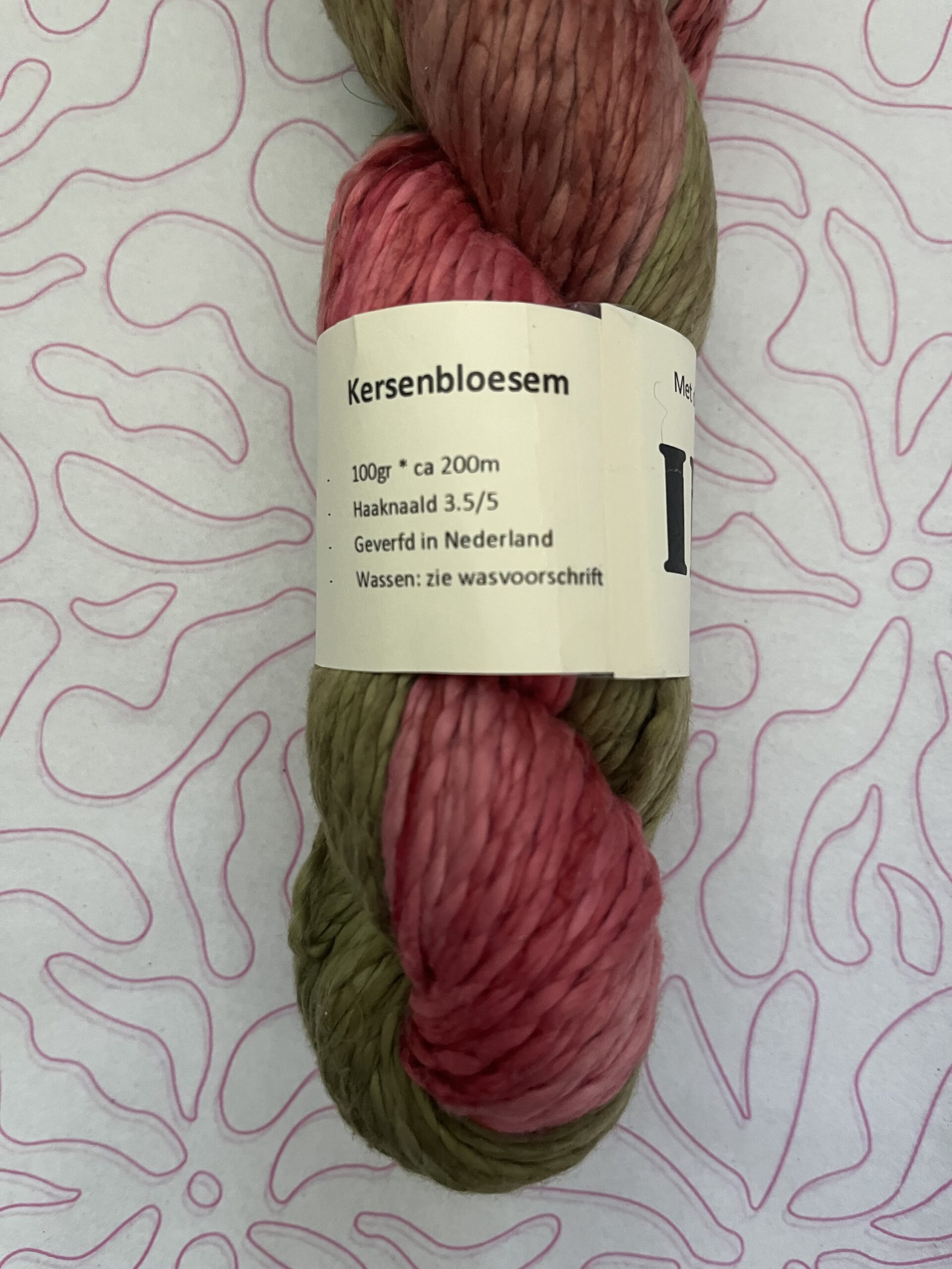 Handgeverfde 100% katoenen garen in de kleur Kersenbloesem.