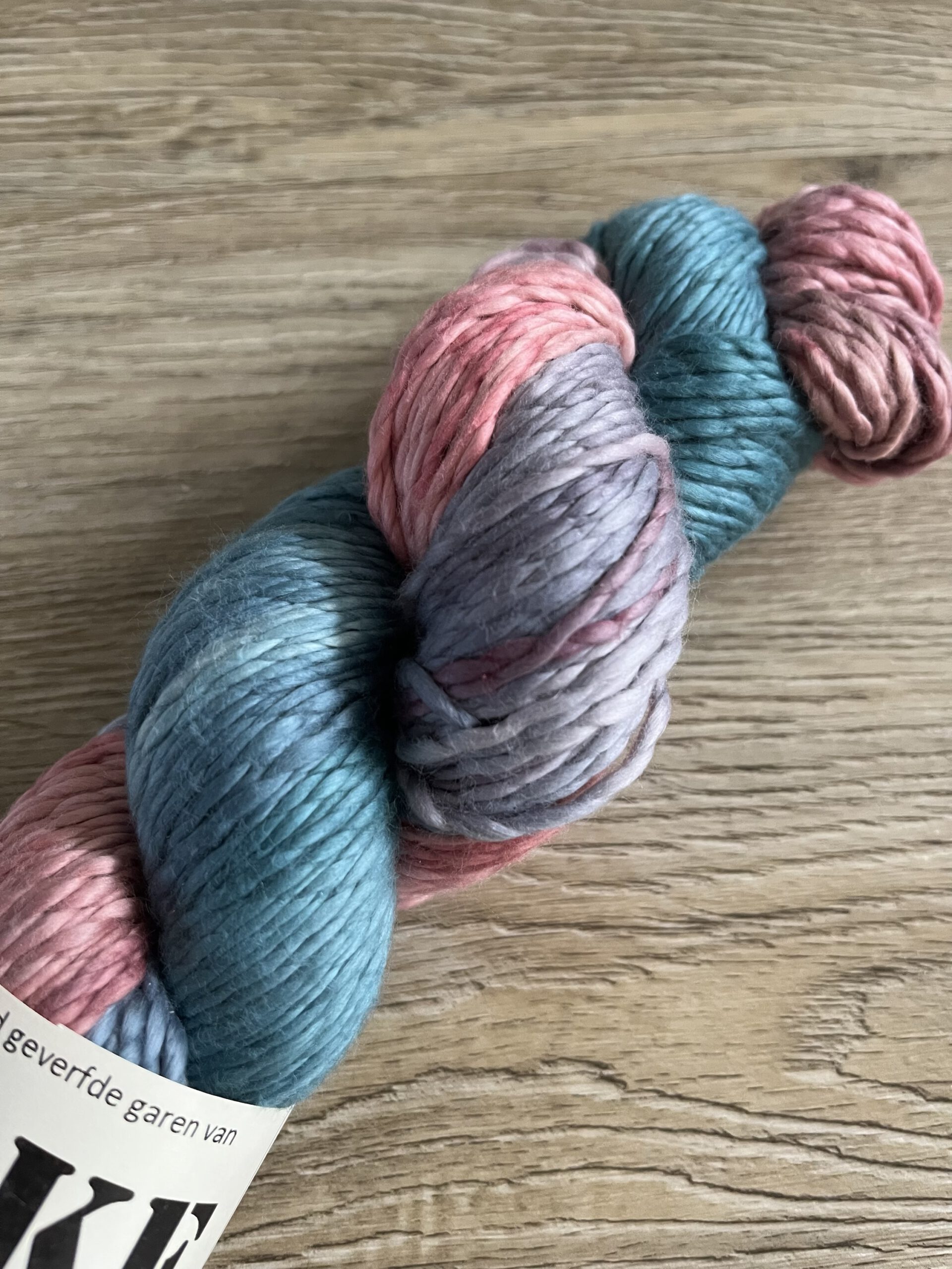 Er is geen streng qua kleur precies hetzelfde, ook al komen de strengen uit hetzelfde verfbad. Dit komt doordat de strengen met de hand geverfd worden en de kleuren elke streng net iets anders kunnen raken.