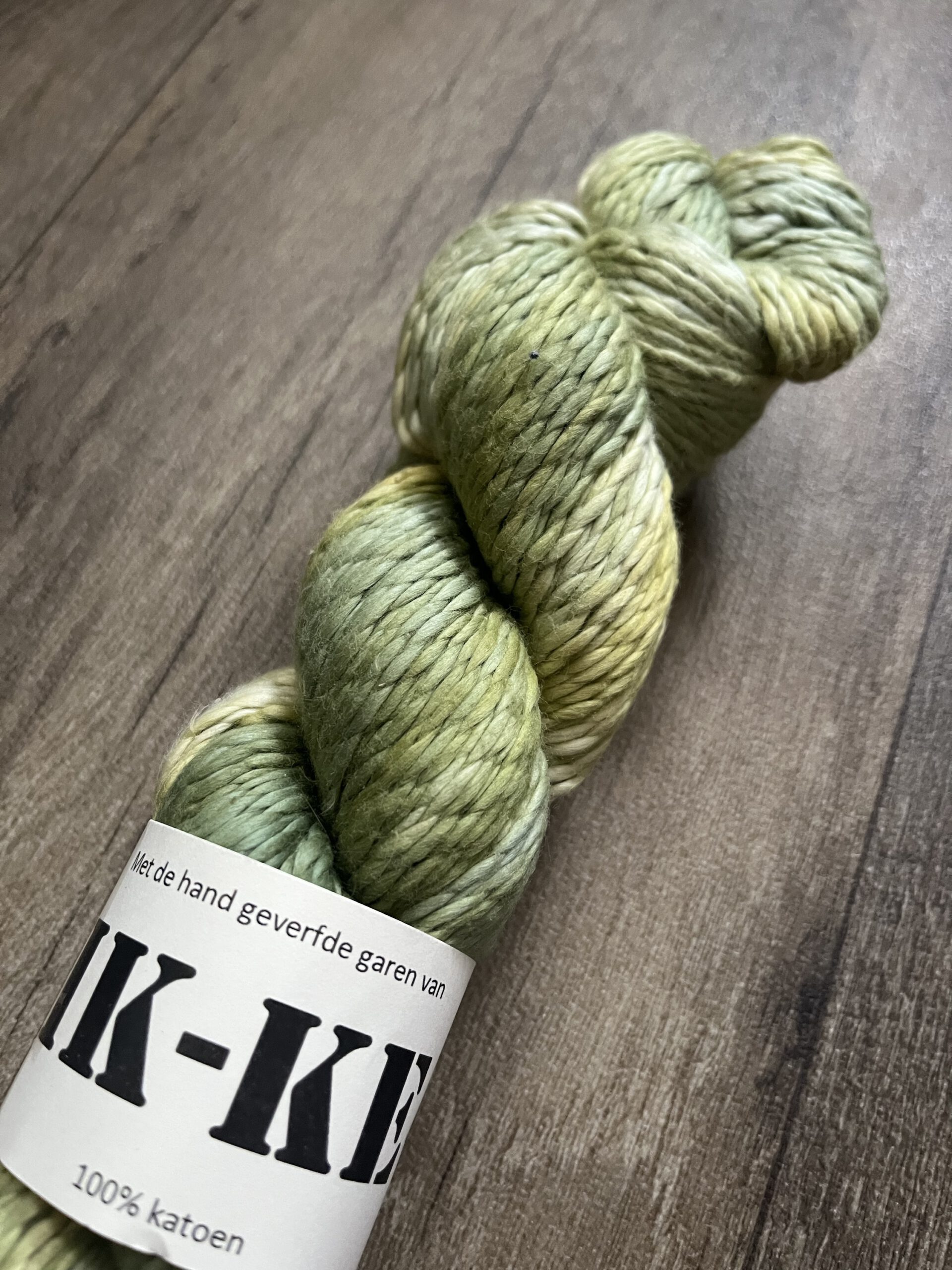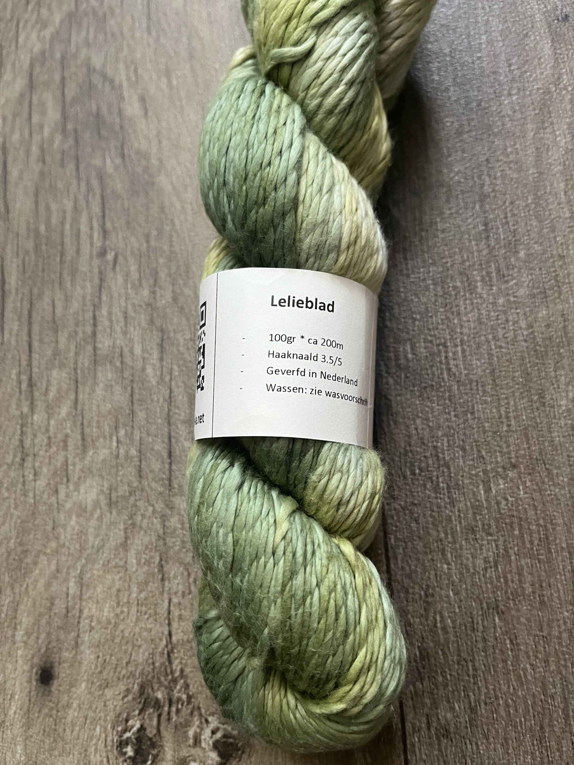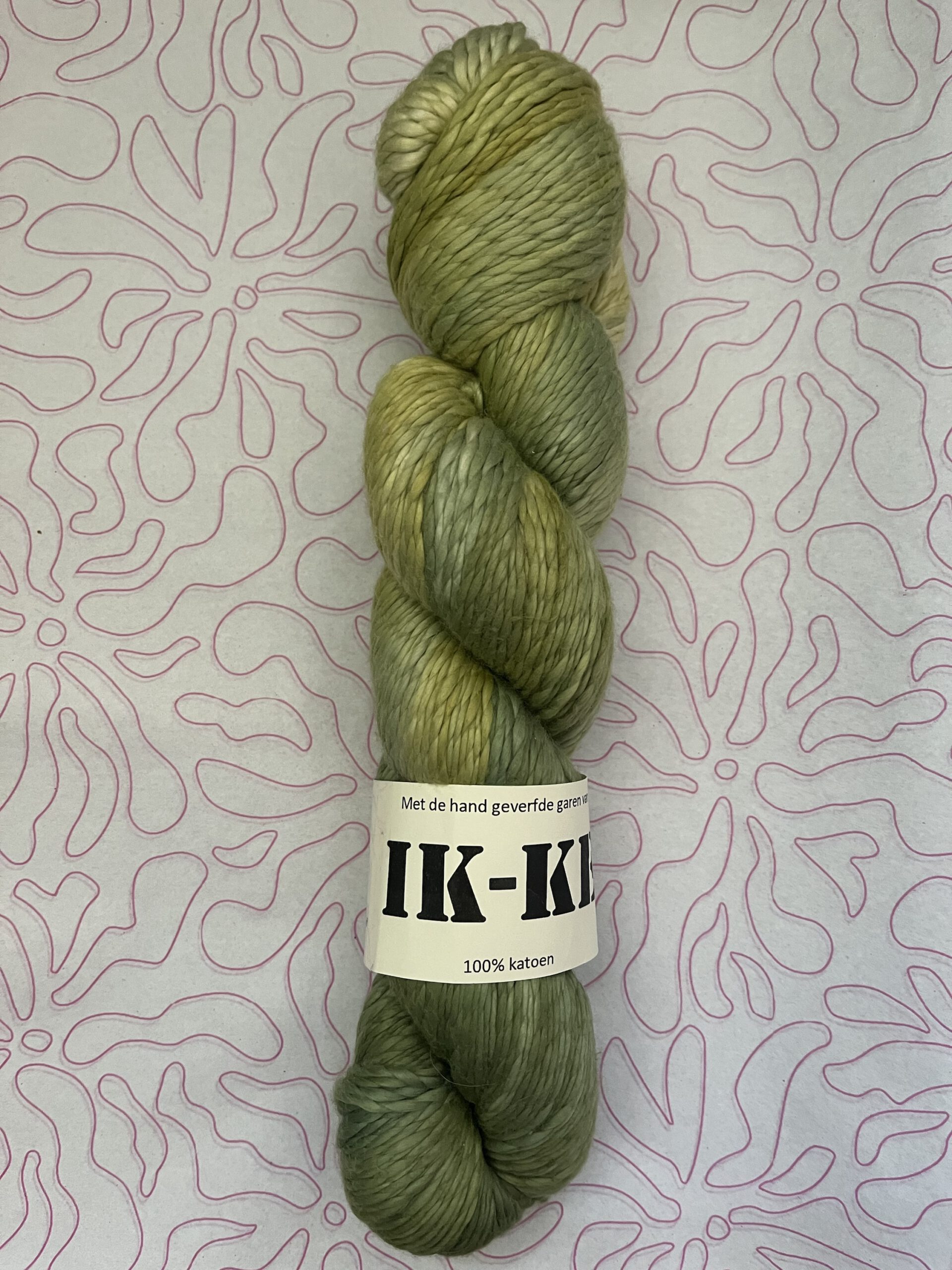 Handgeverfde 100% katoenen garen in de kleur Lelieblad.
