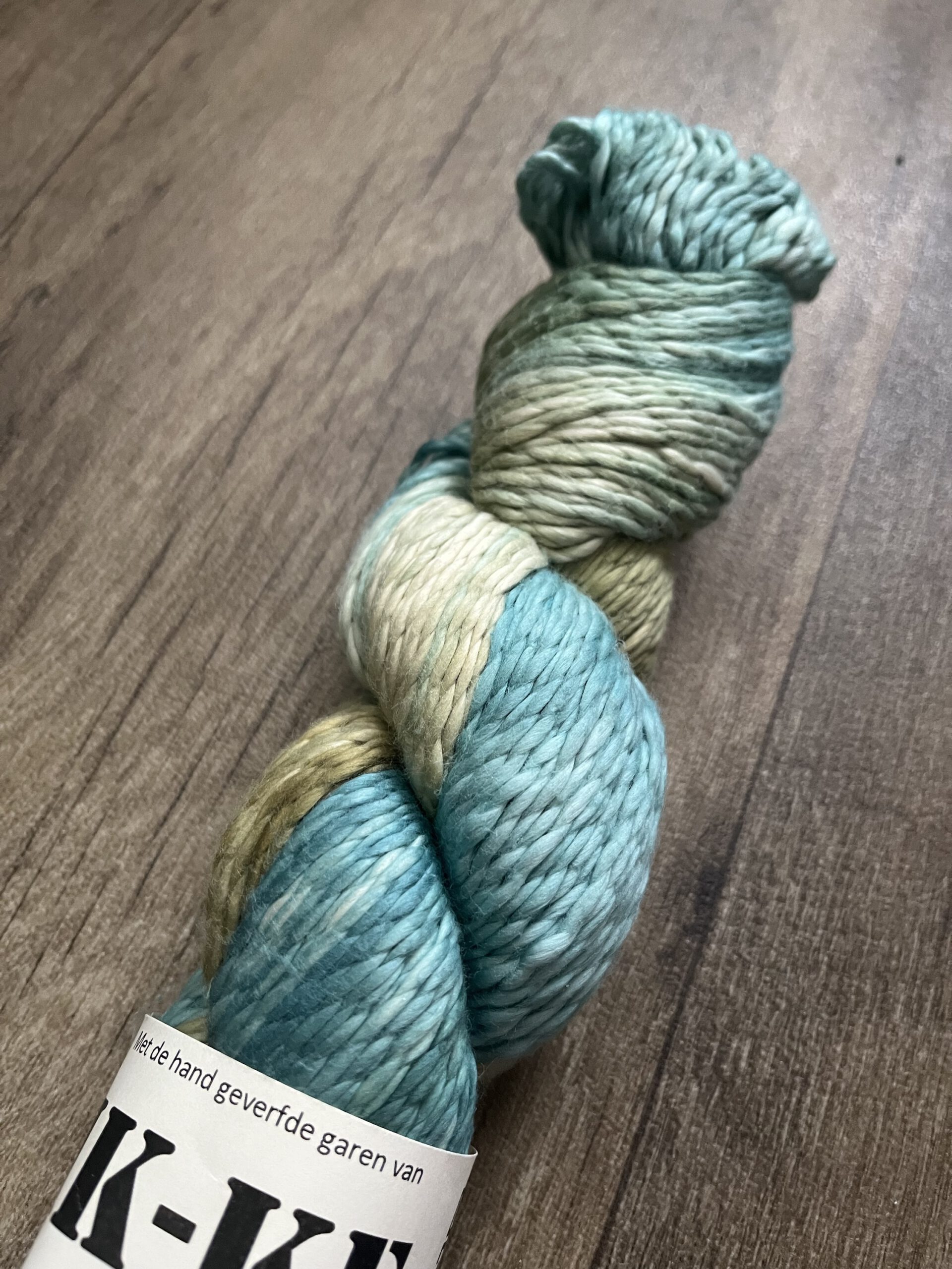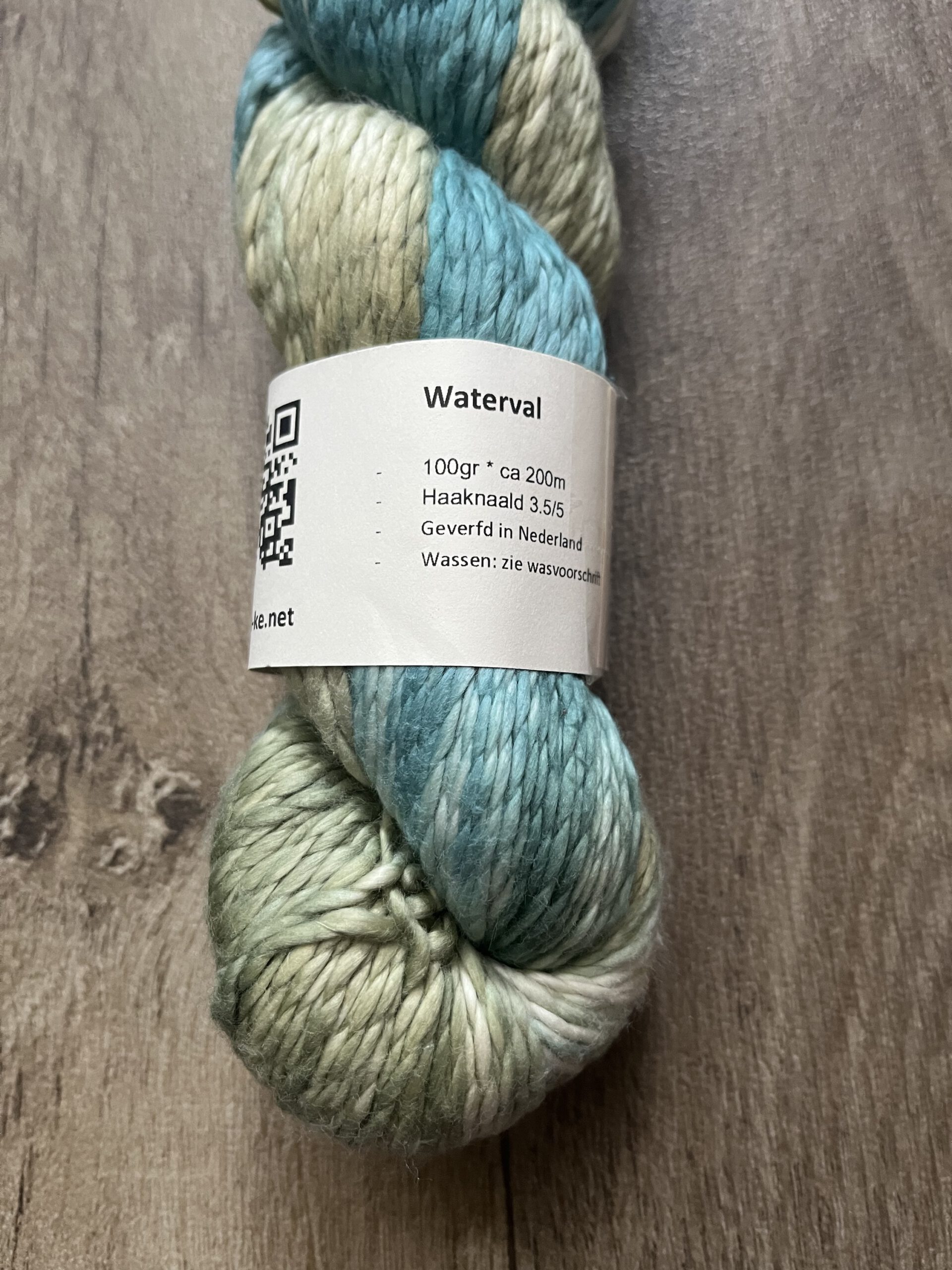 Handgeverfde 100% katoenen garen in de kleur Waterval.