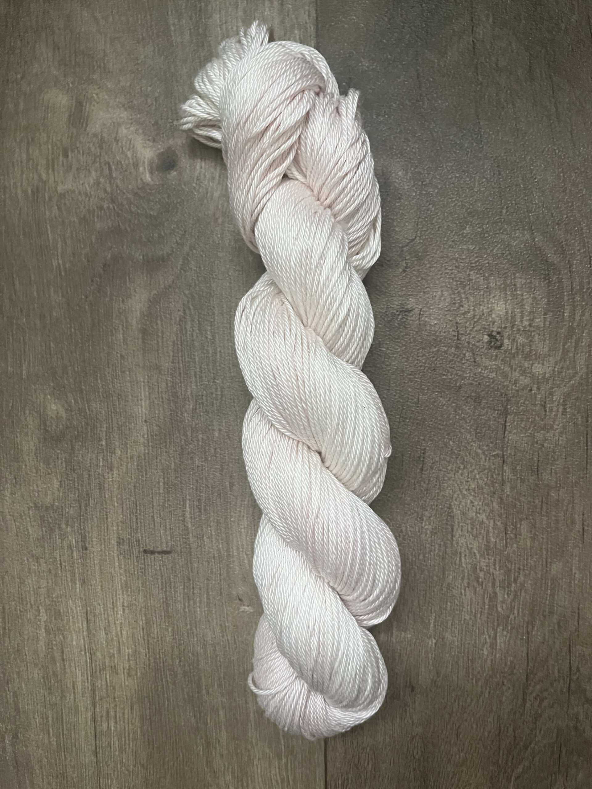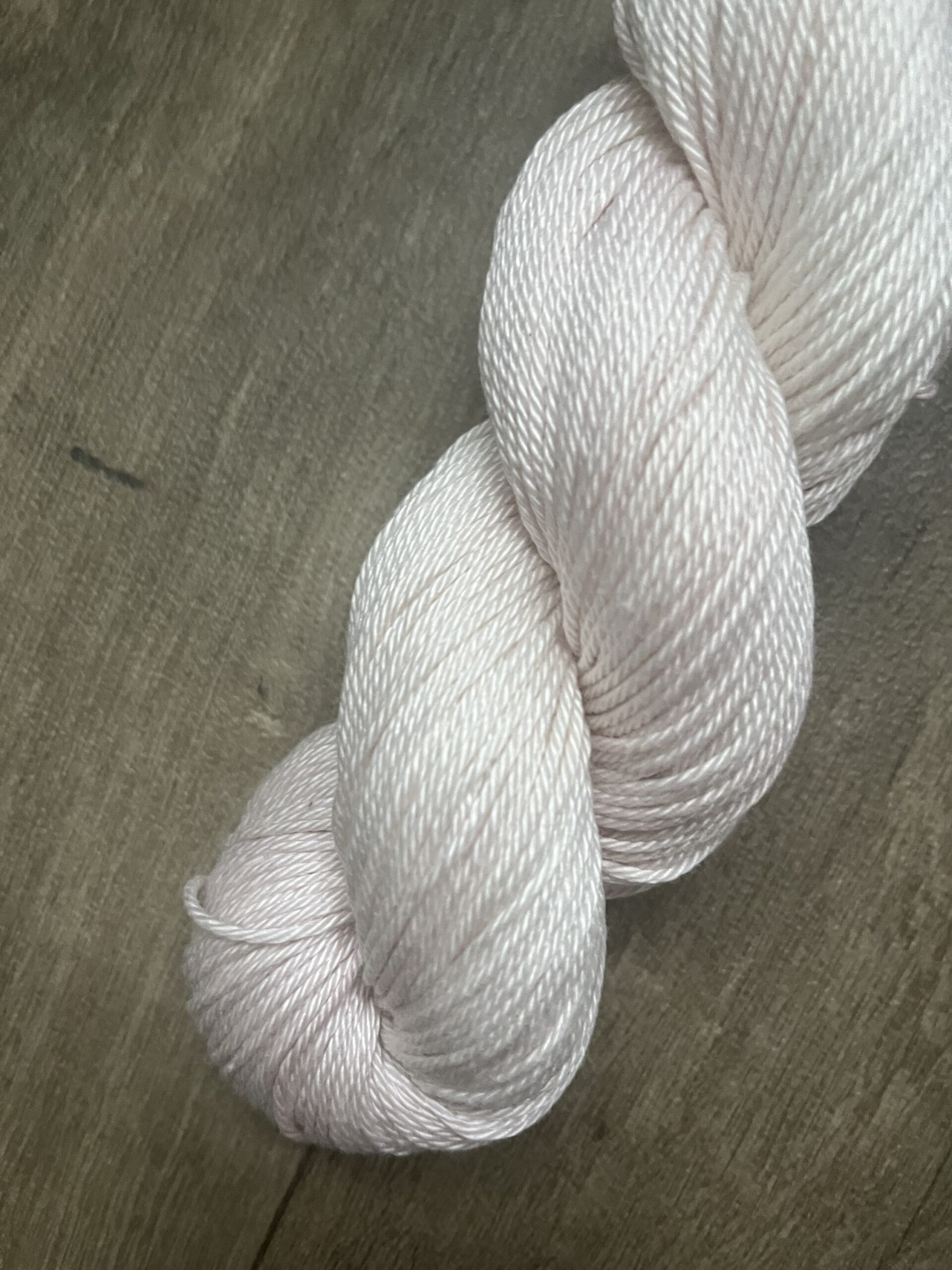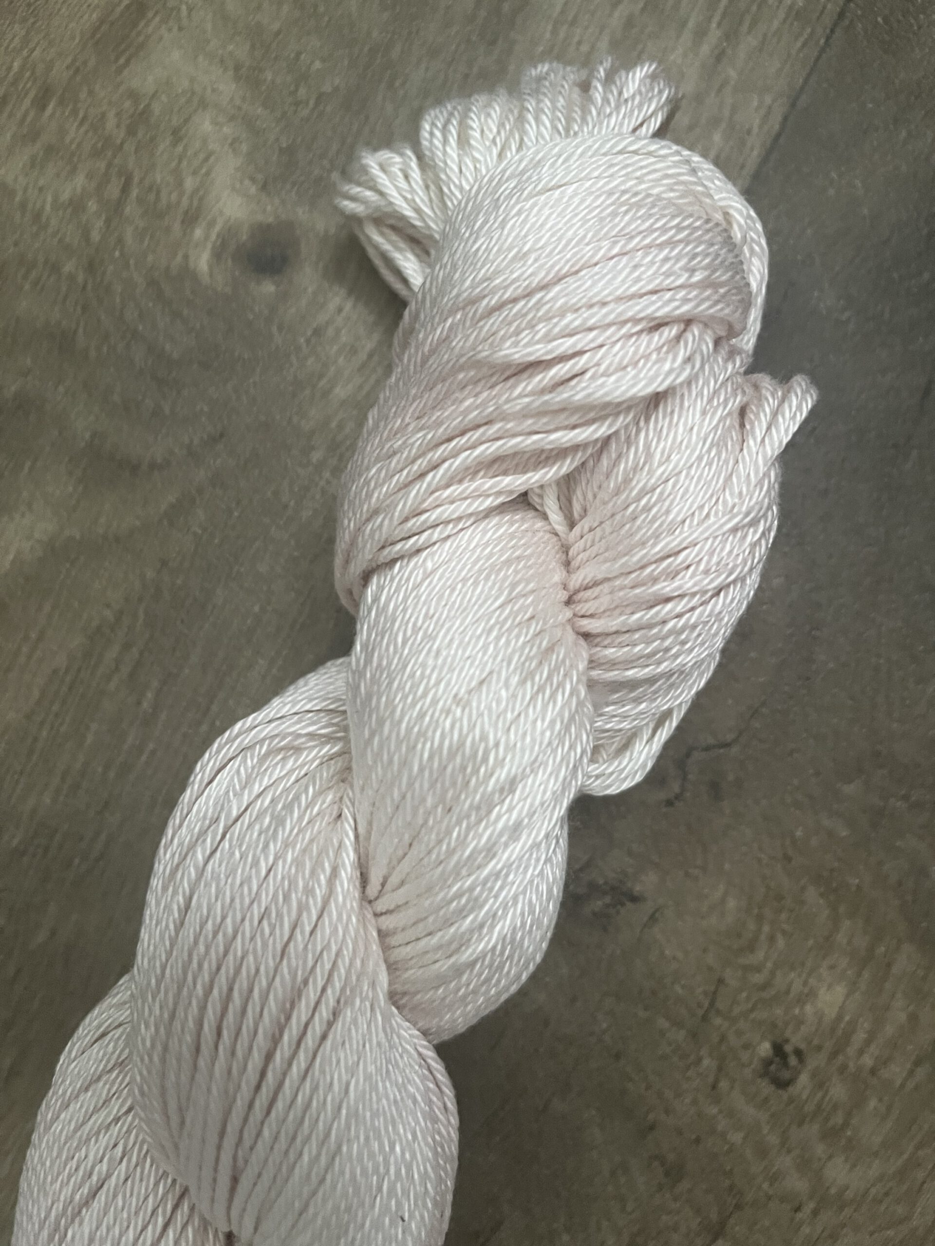 Handgeverfde 100% katoenen garen in de kleur Katoenbloem.