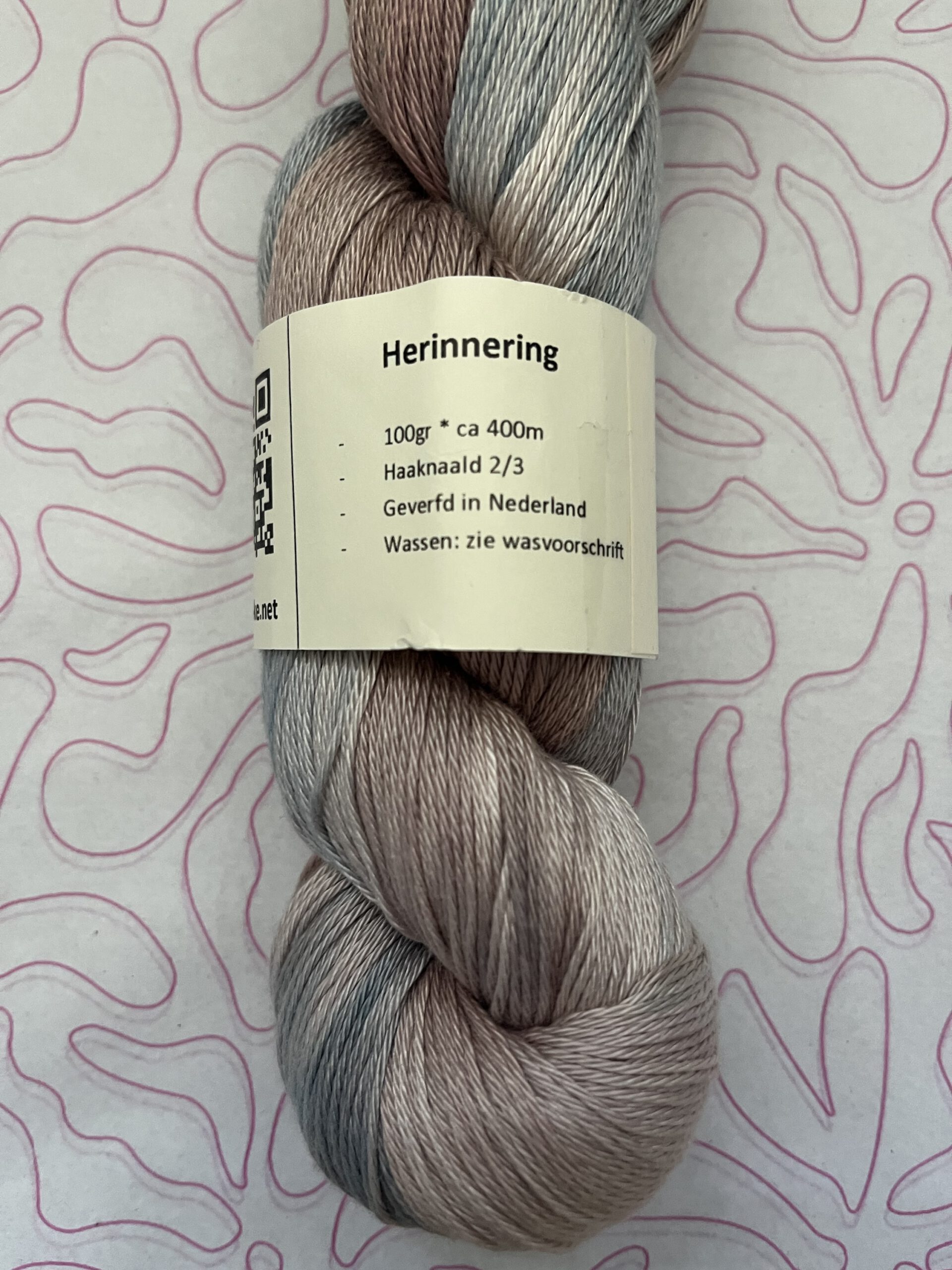 Handgeverfde 100% katoenen garen in de kleur Herinnering.
