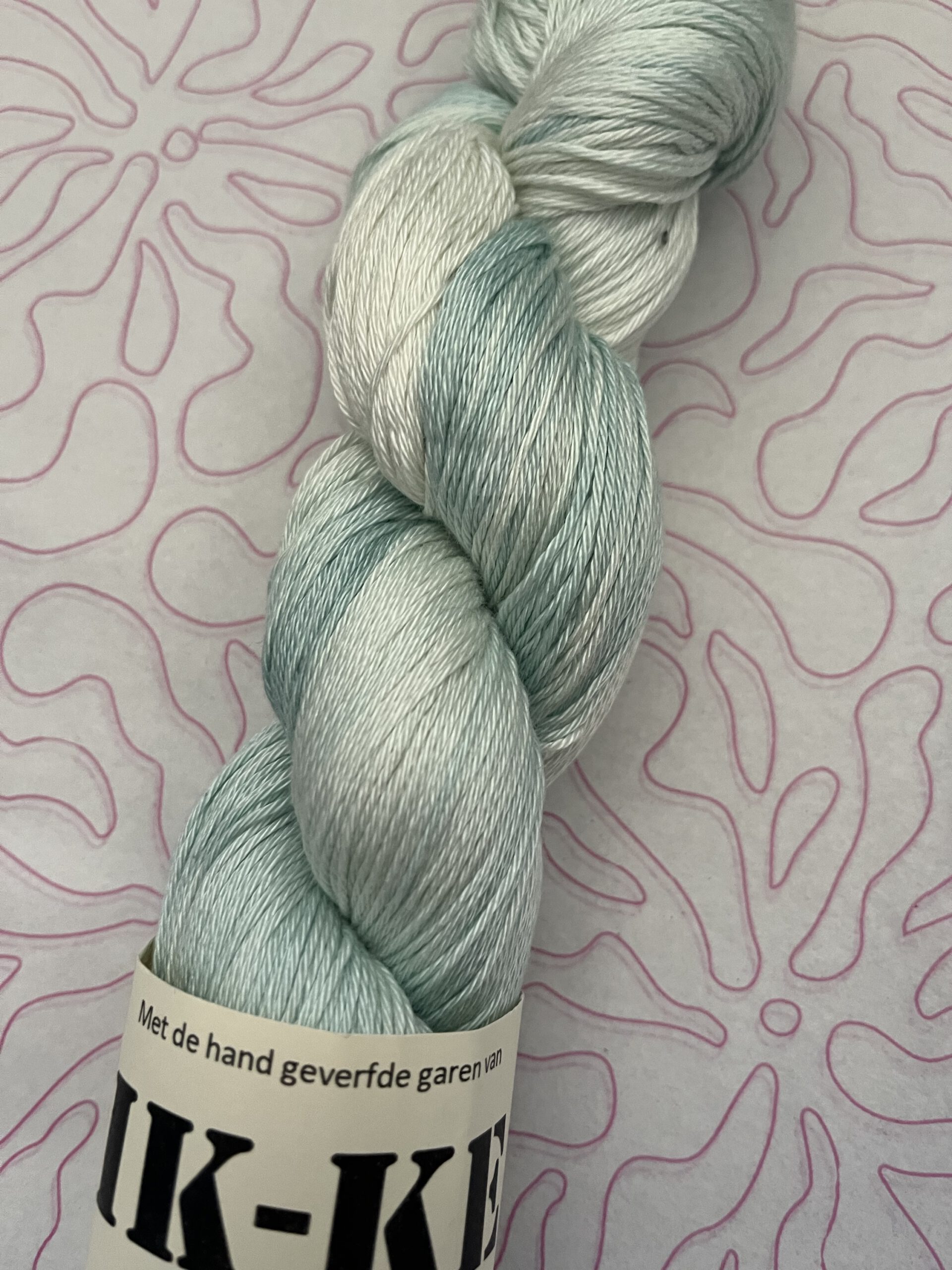 Handgeverfde 100% katoenen garen in de kleur IJskristal.