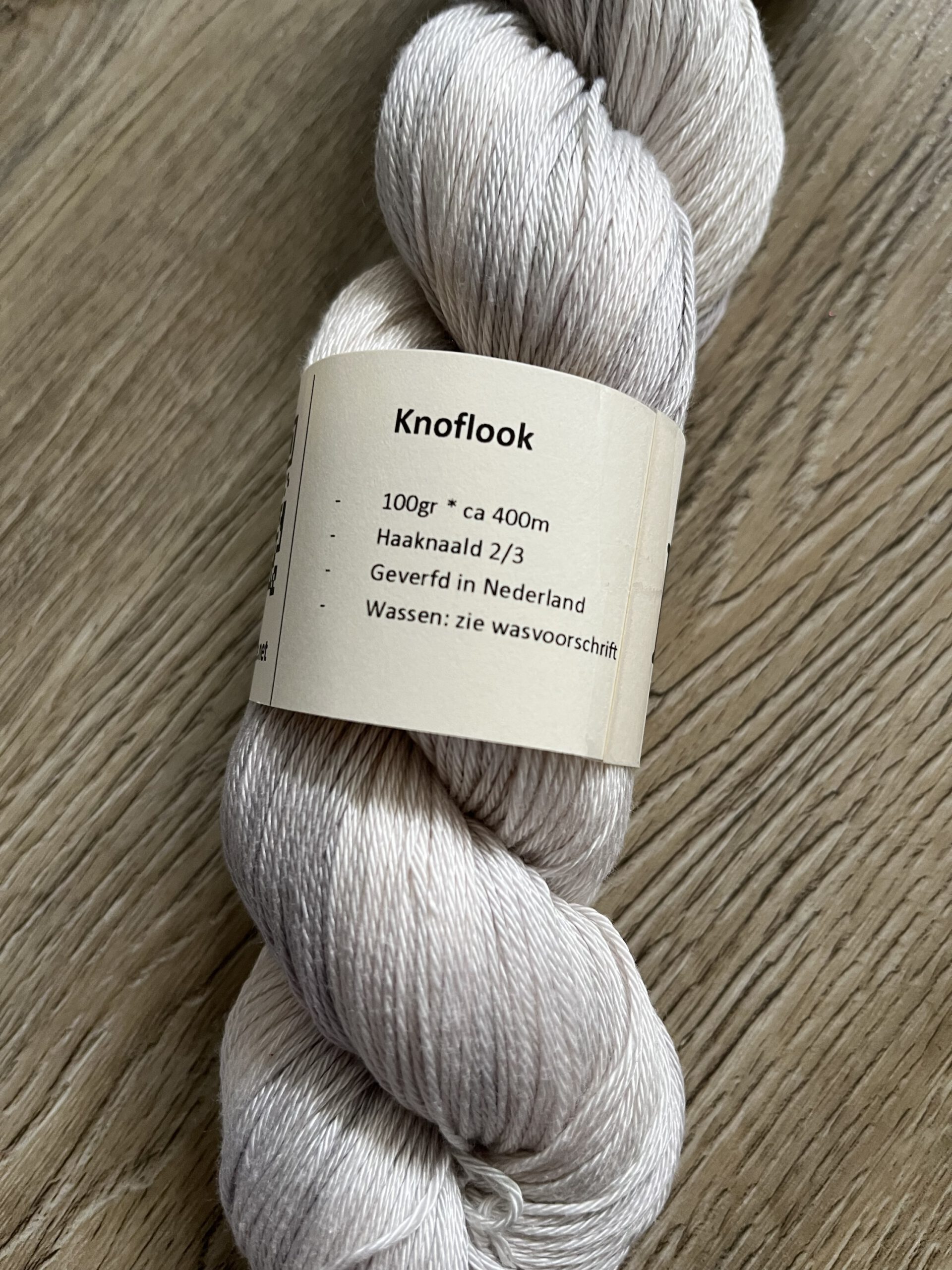 Handgeverfde 100% katoenen garen in de kleur Knoflook.