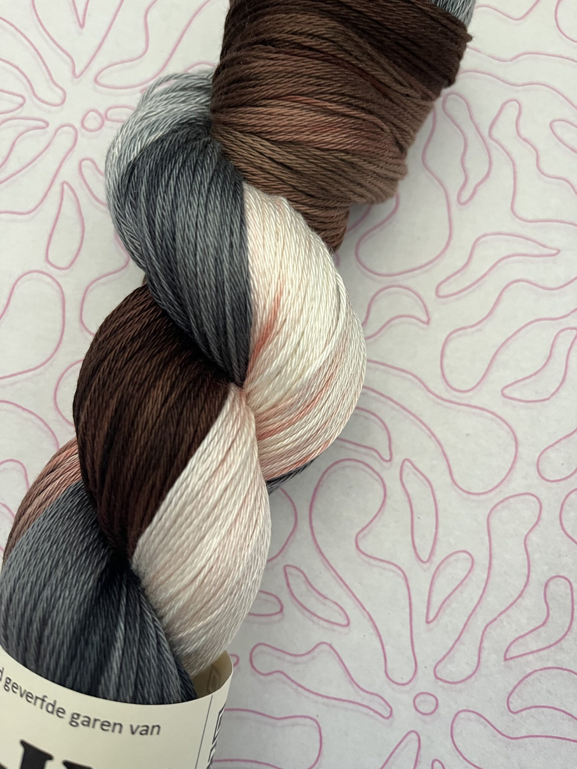 Handgeverfde 100% katoenen garen in de kleur Koeiendans.