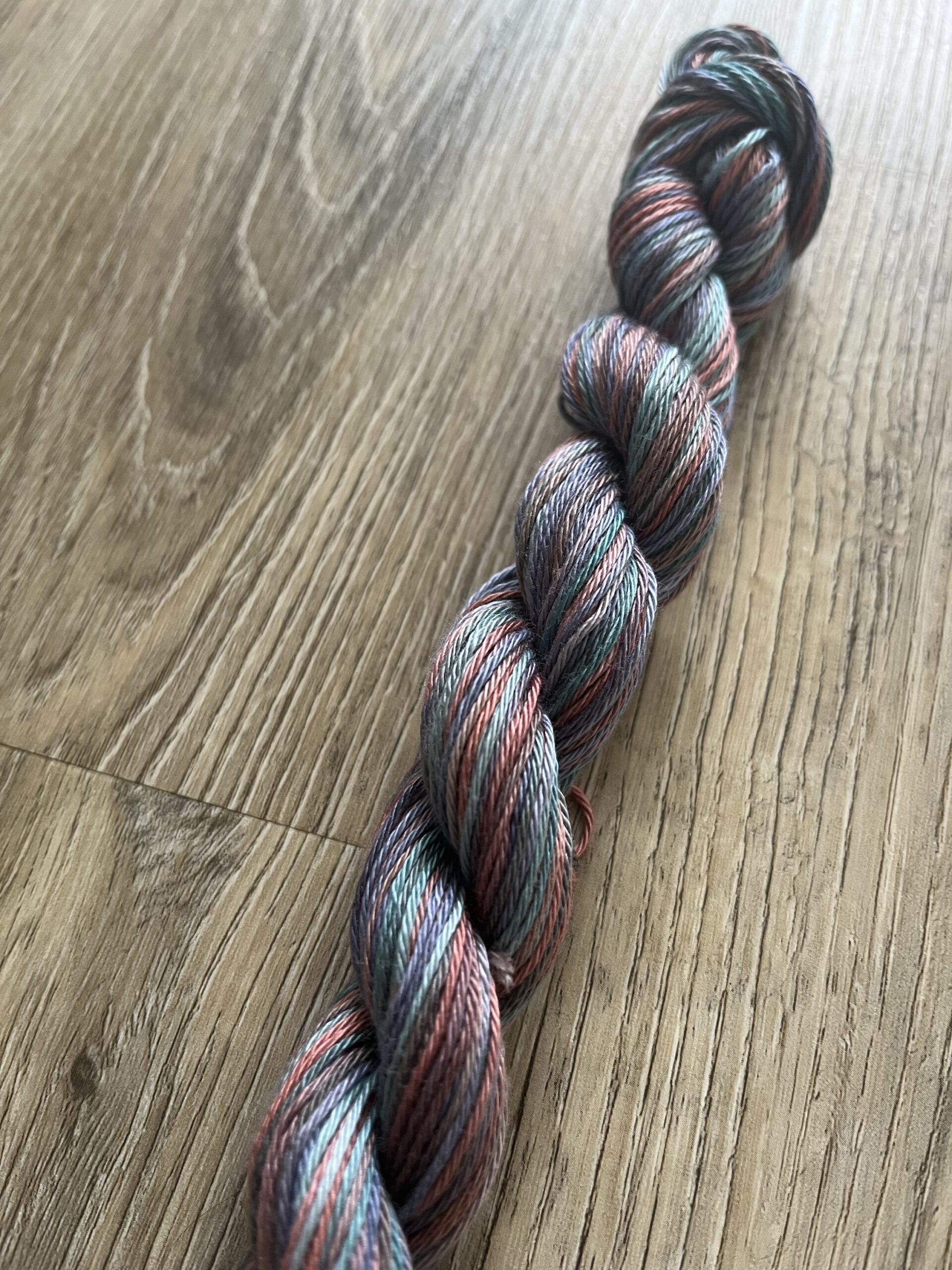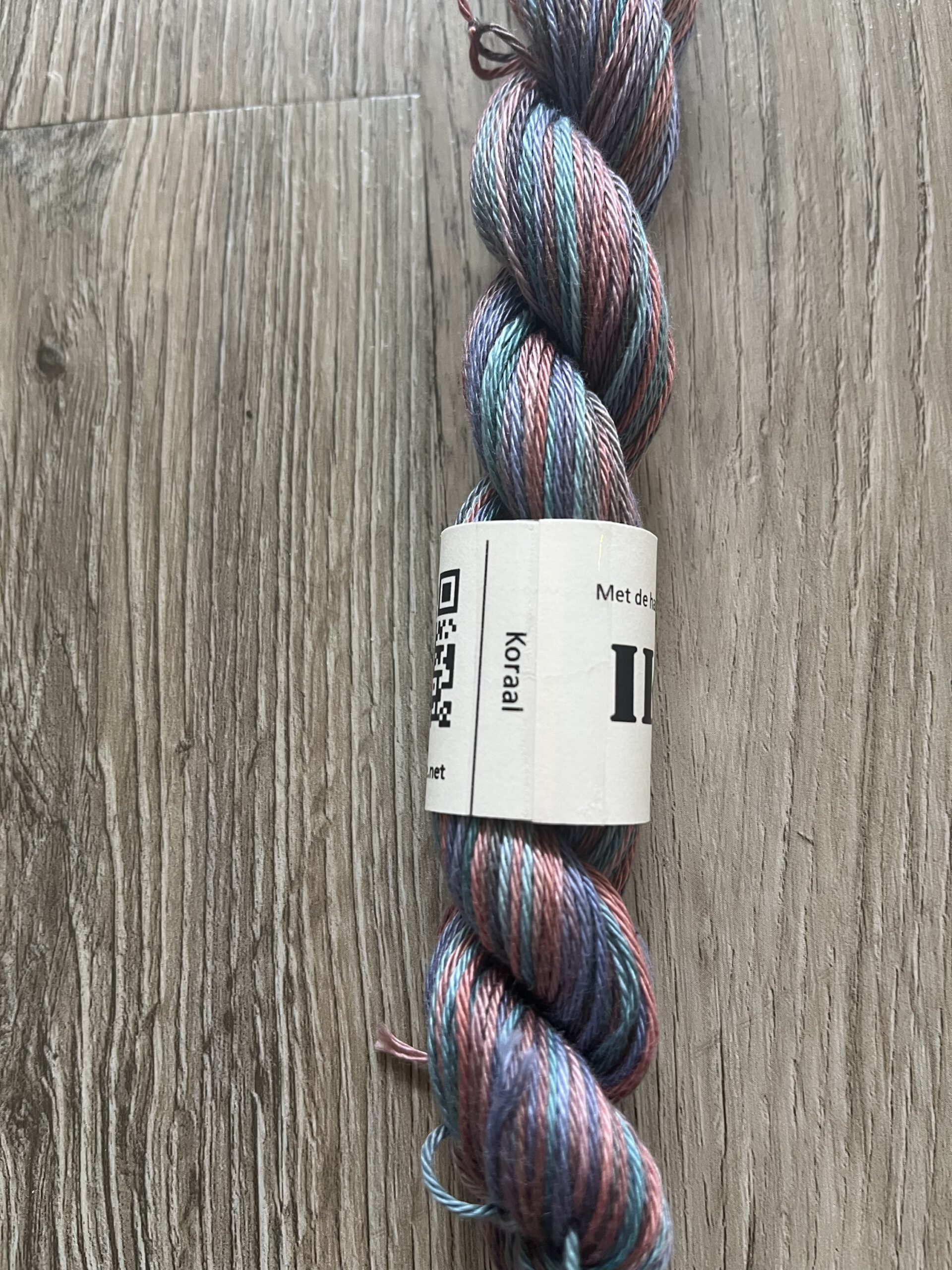 Er is geen streng qua kleur precies hetzelfde, ook al komen de strengen uit hetzelfde verfbad. Dit komt doordat de strengen met de hand geverfd worden en de kleuren elke streng net iets anders kunnen raken.