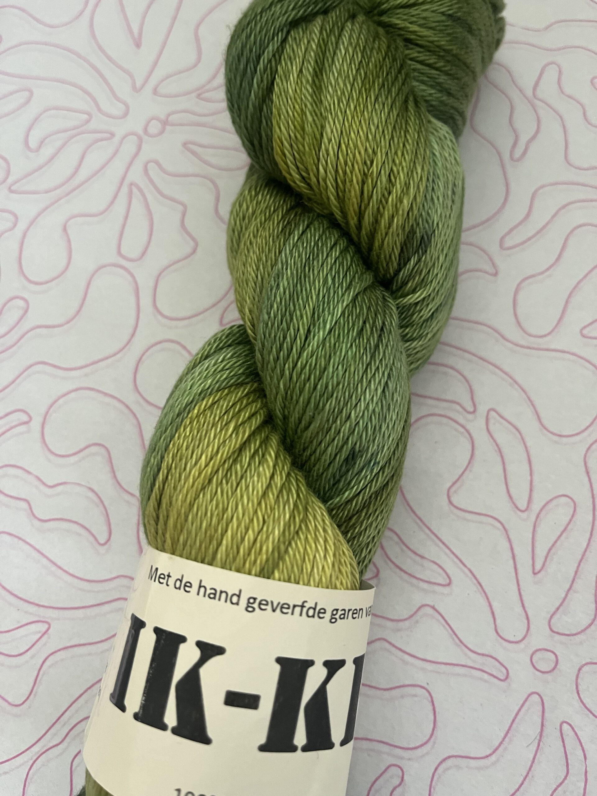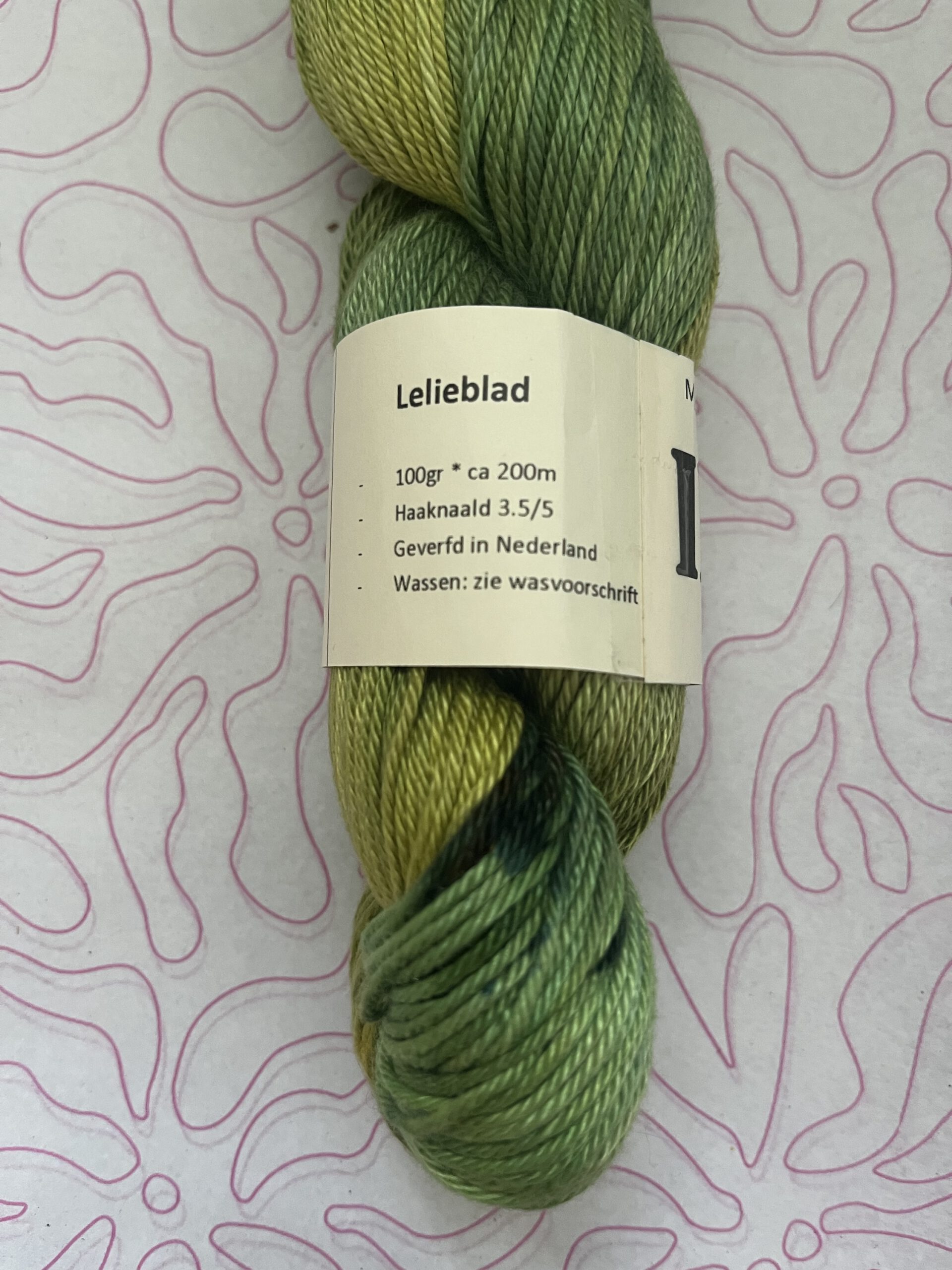 Handgeverfde 100% katoenen garen in de kleur Lelieblad.