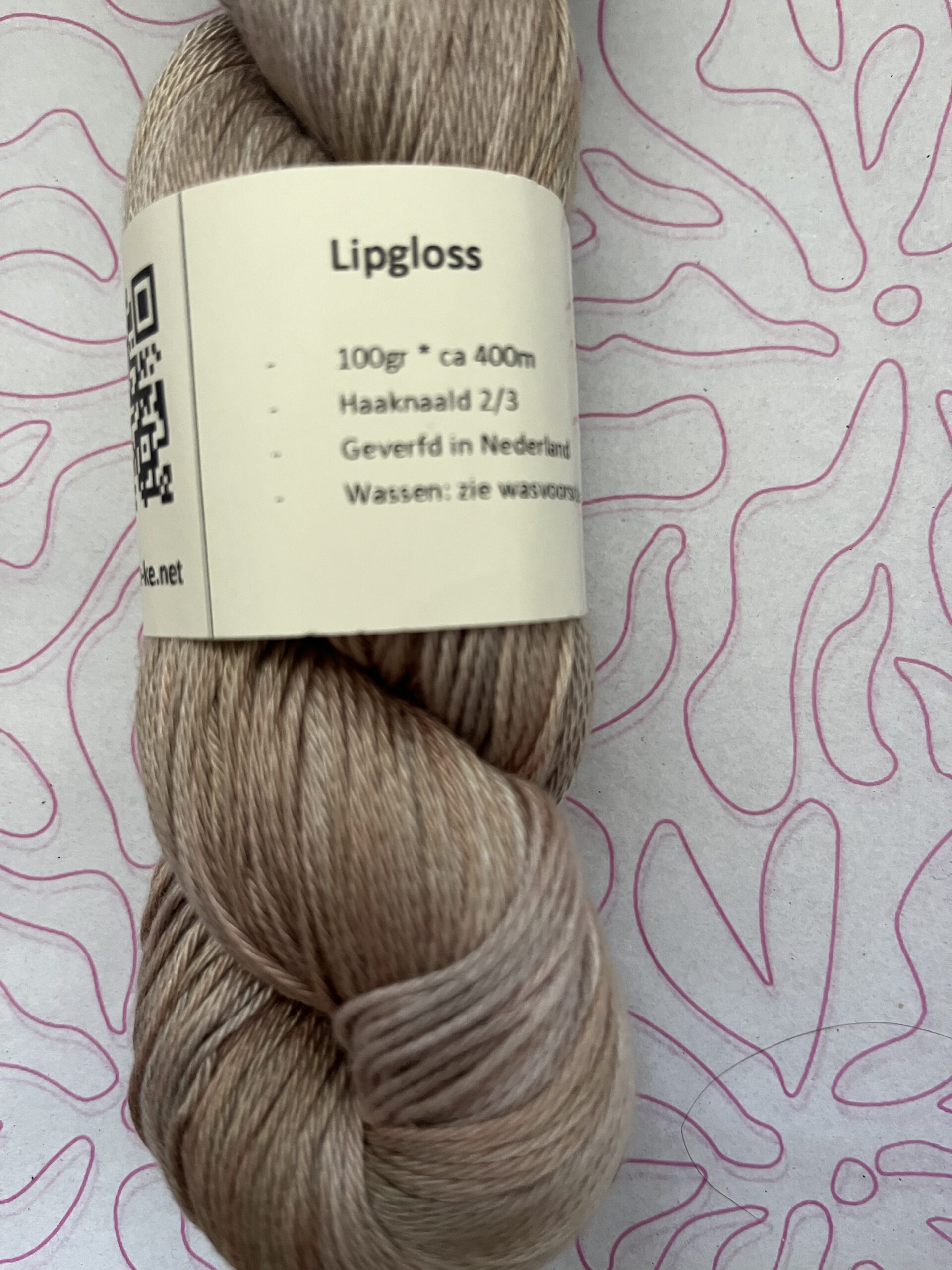 Handgeverfde 100% katoenen garen in de kleur Lipgloss.