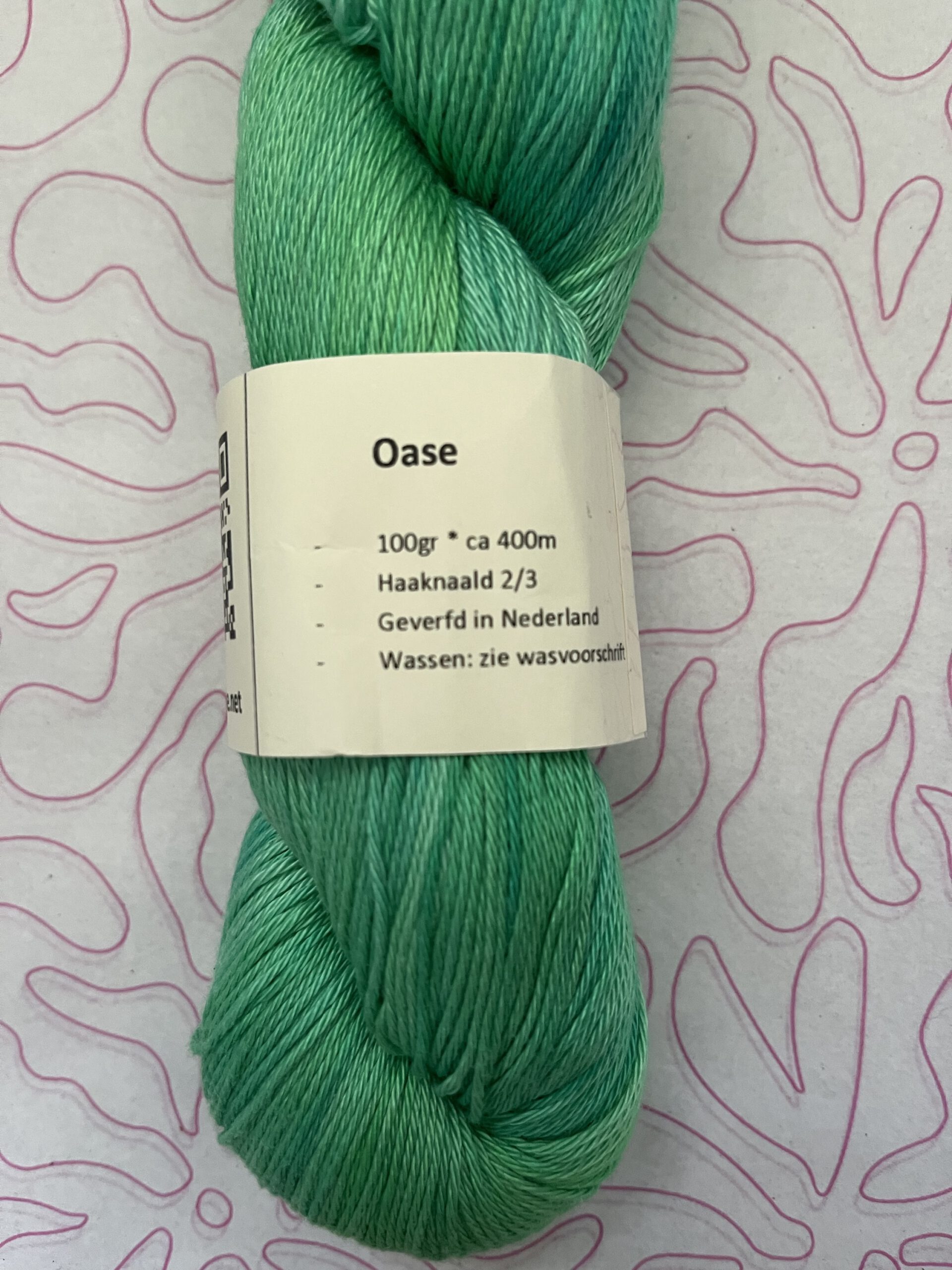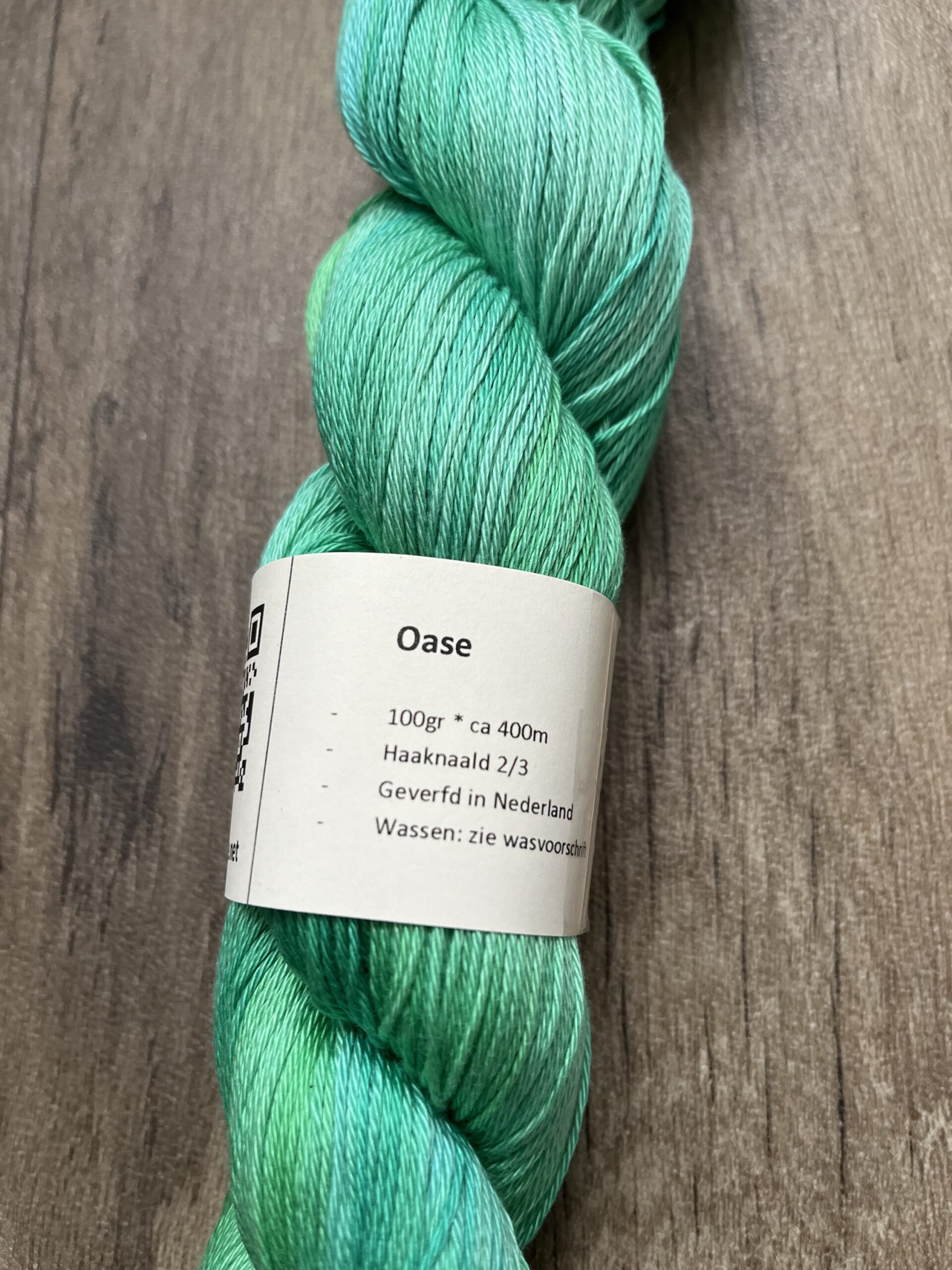 Handgeverfde 100% katoenen garen in de kleur Oase.