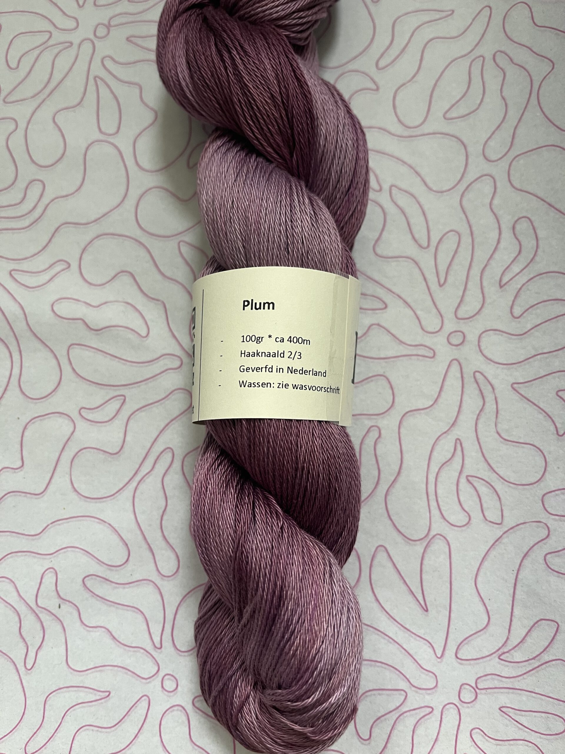Handgeverfde 100% katoenen garen in de kleur Plum.