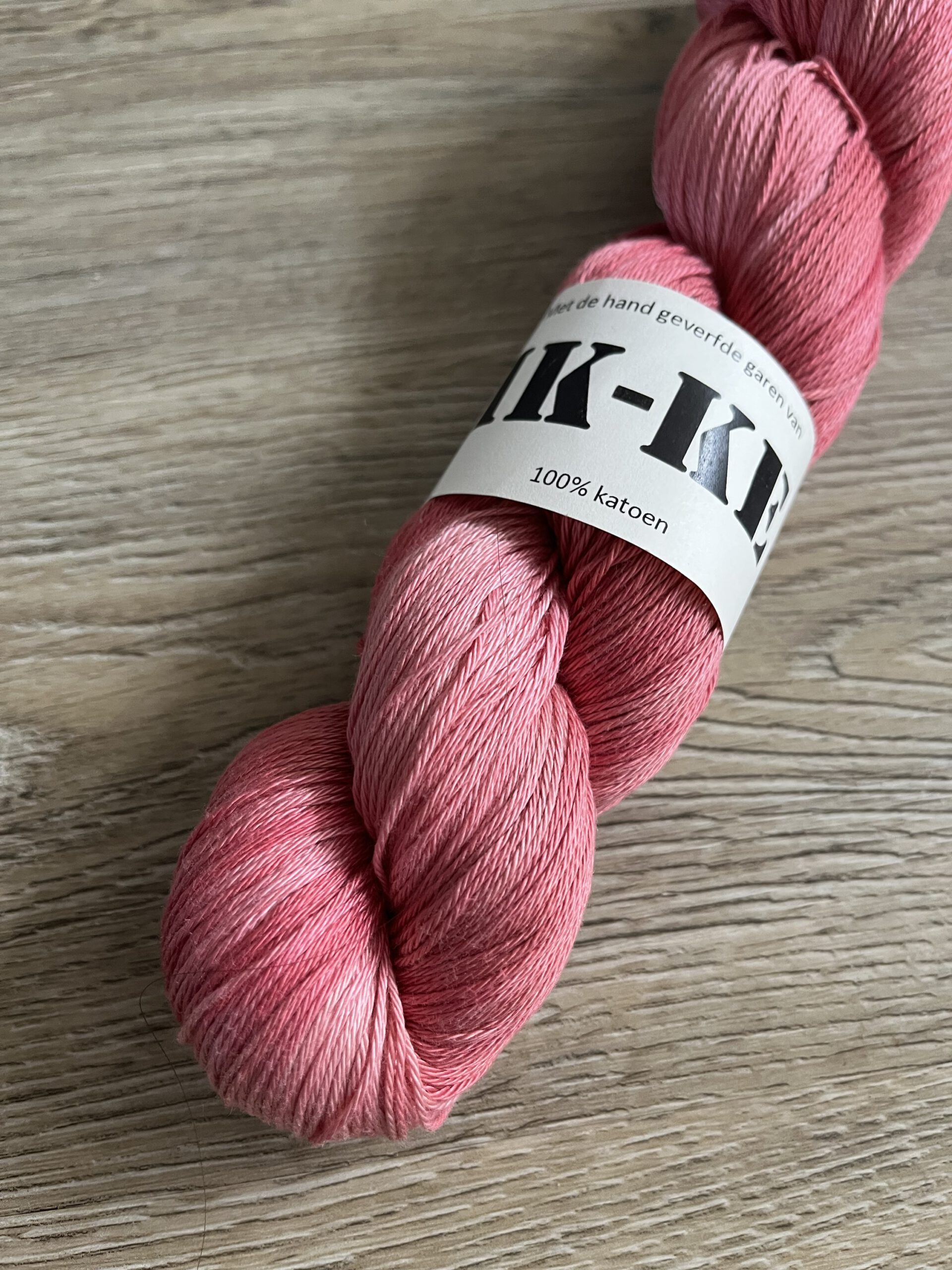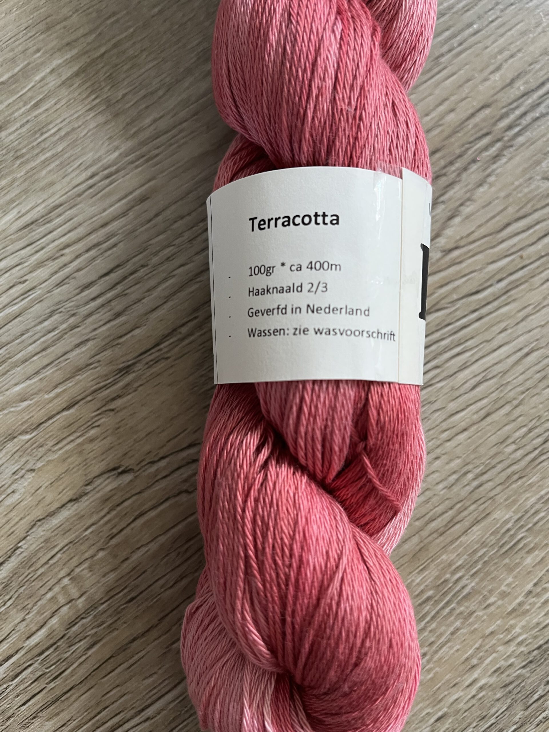Handgeverfde 100% katoenen garen in de kleur Terracotta.