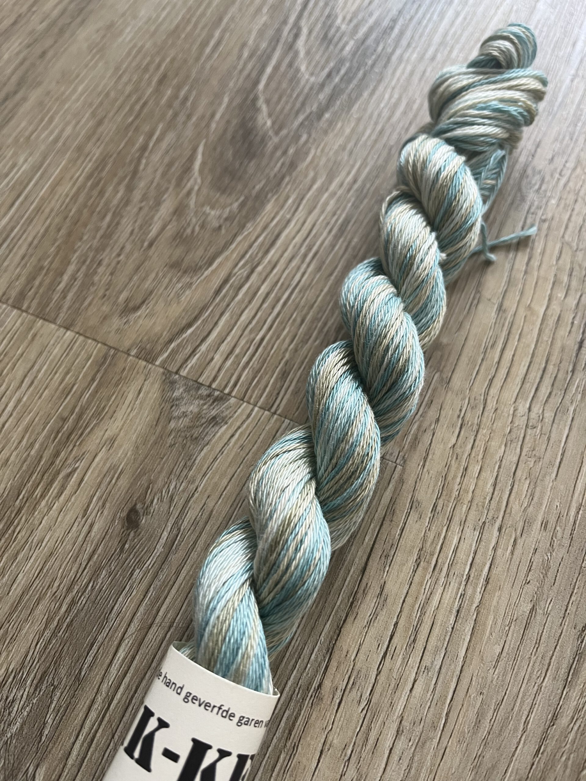 Handgeverfde 100% katoenen garen in de kleur Waterval.