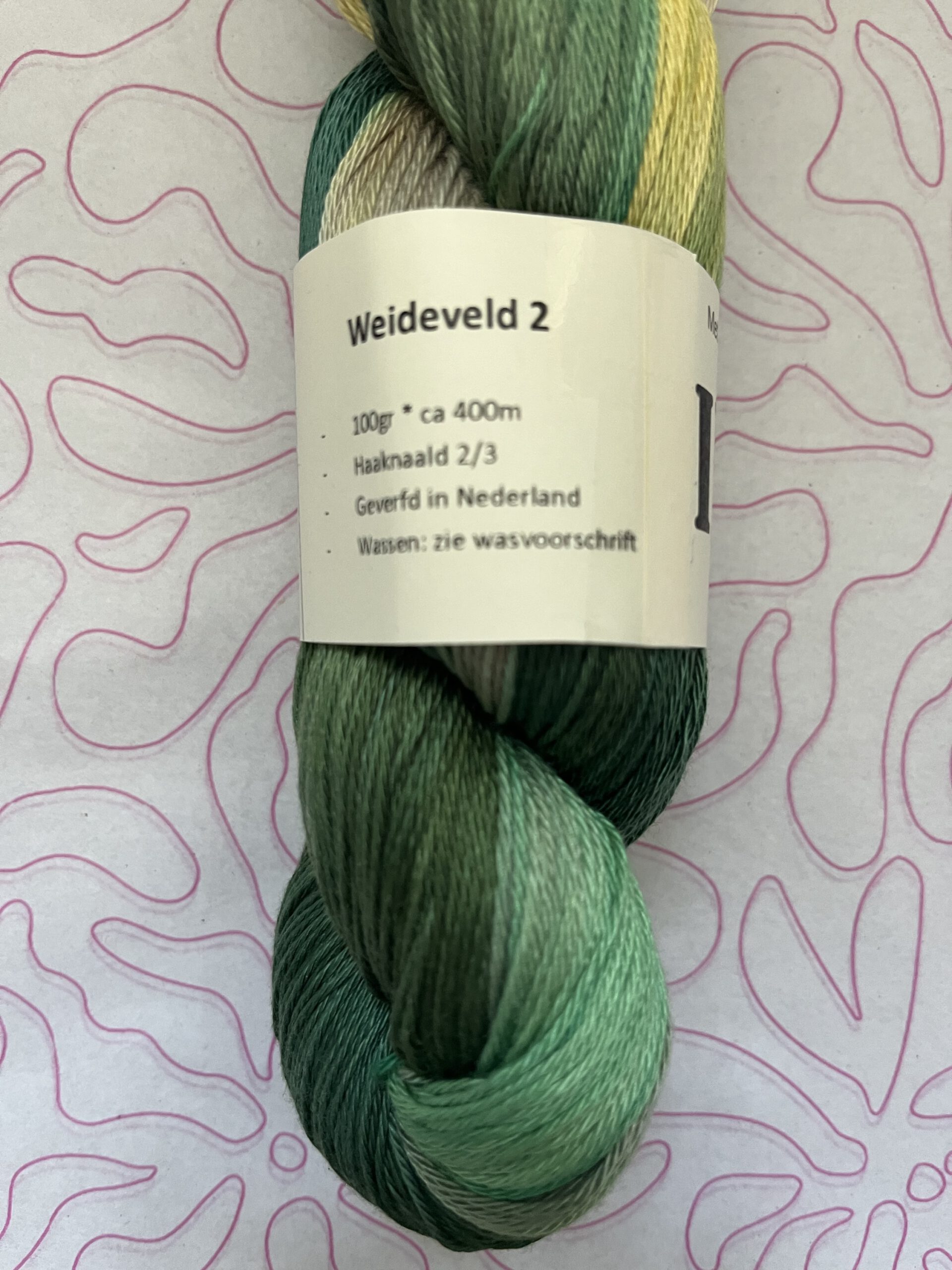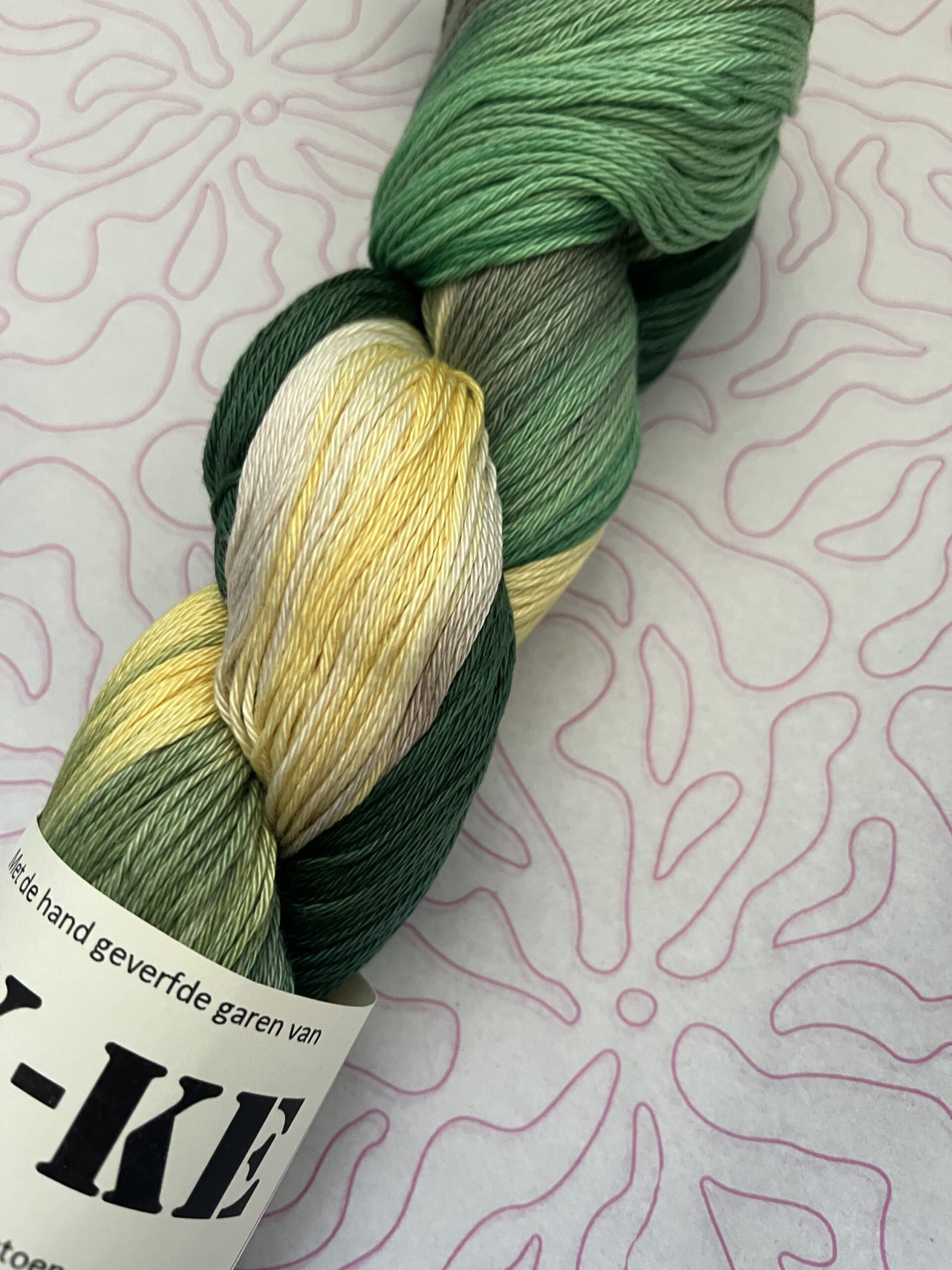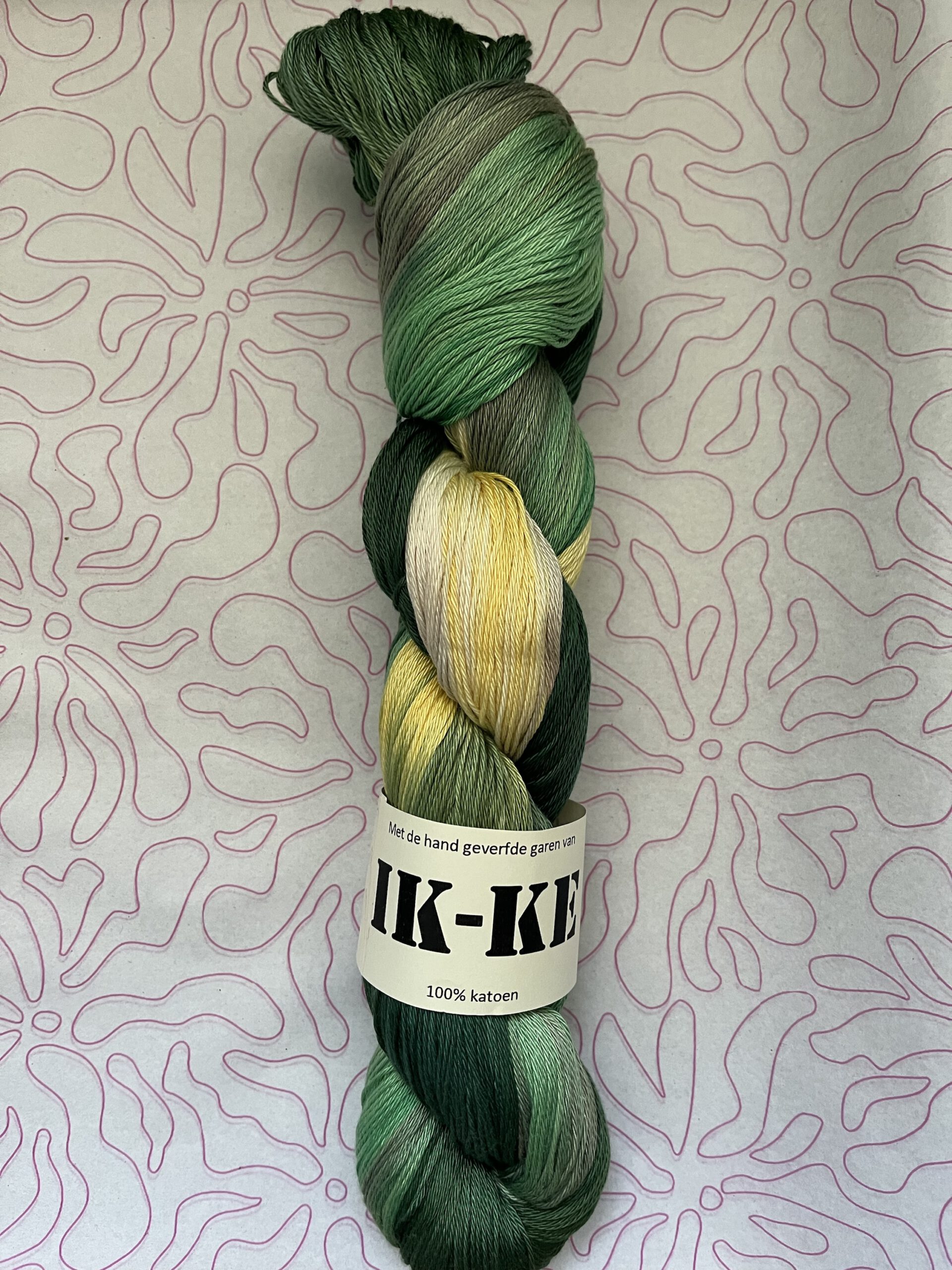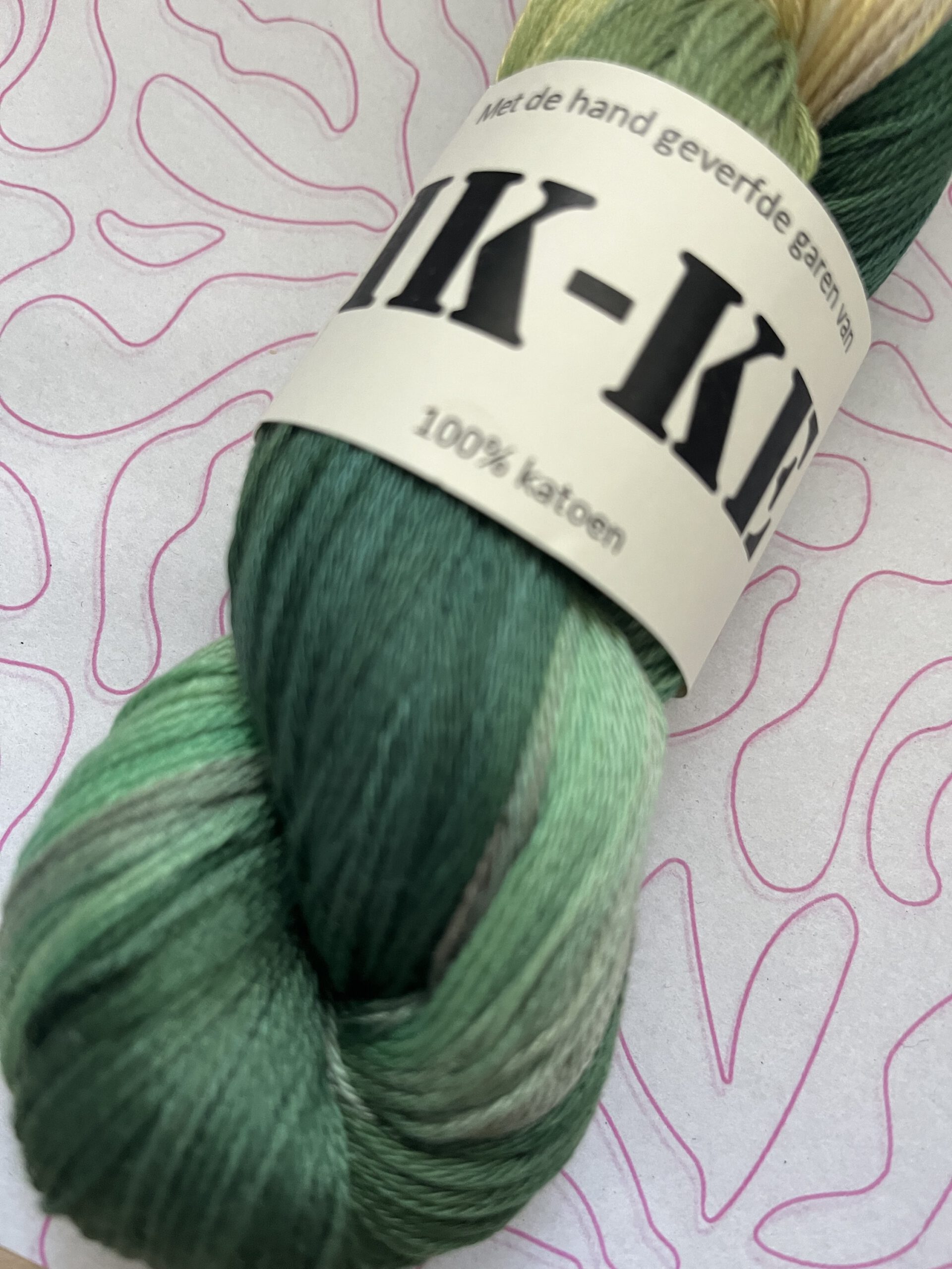 Handgeverfde 100% katoenen garen in de kleur Weideveld.