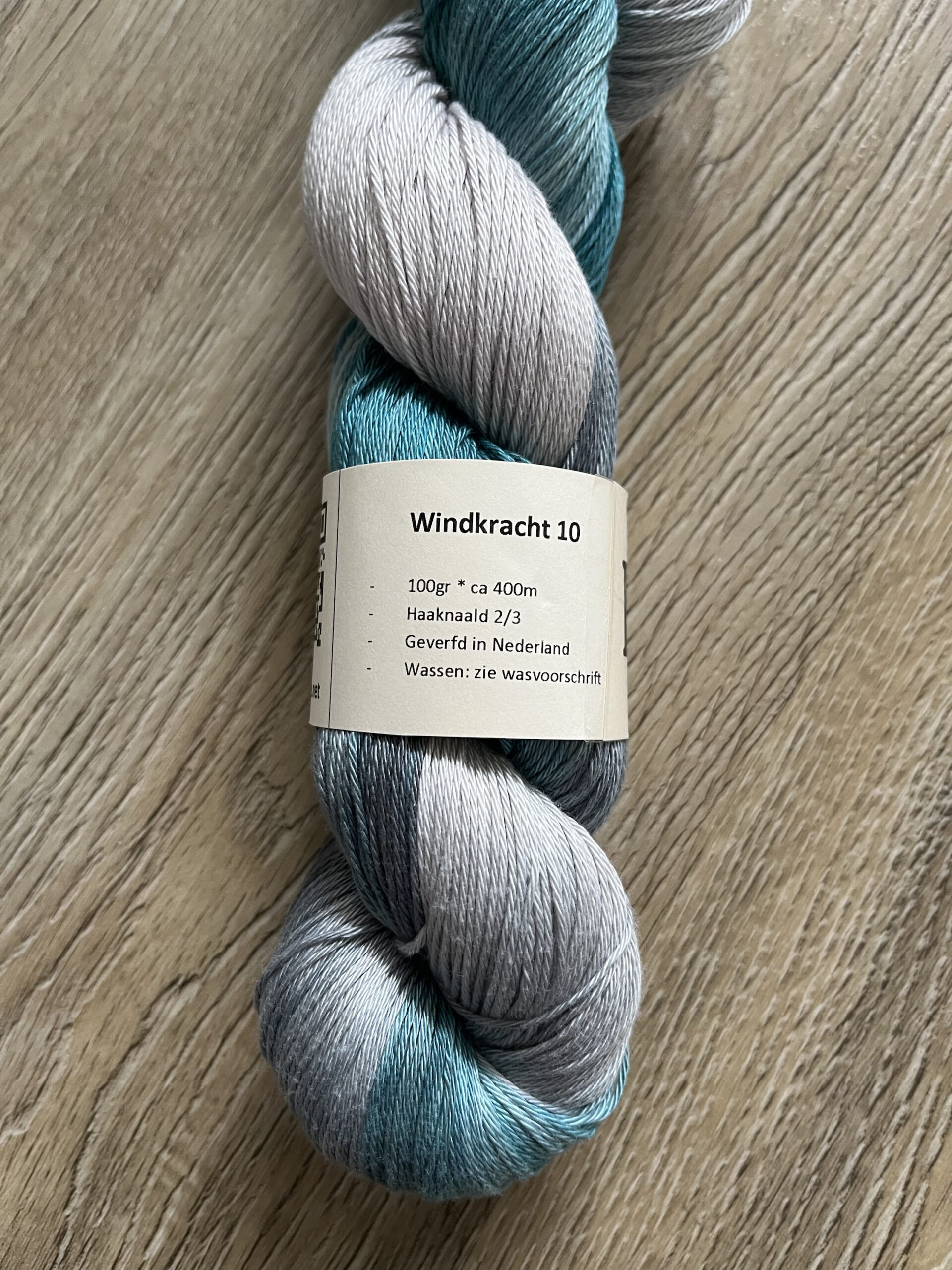 Handgeverfde 100% katoenen garen in de kleur Windkracht 10.