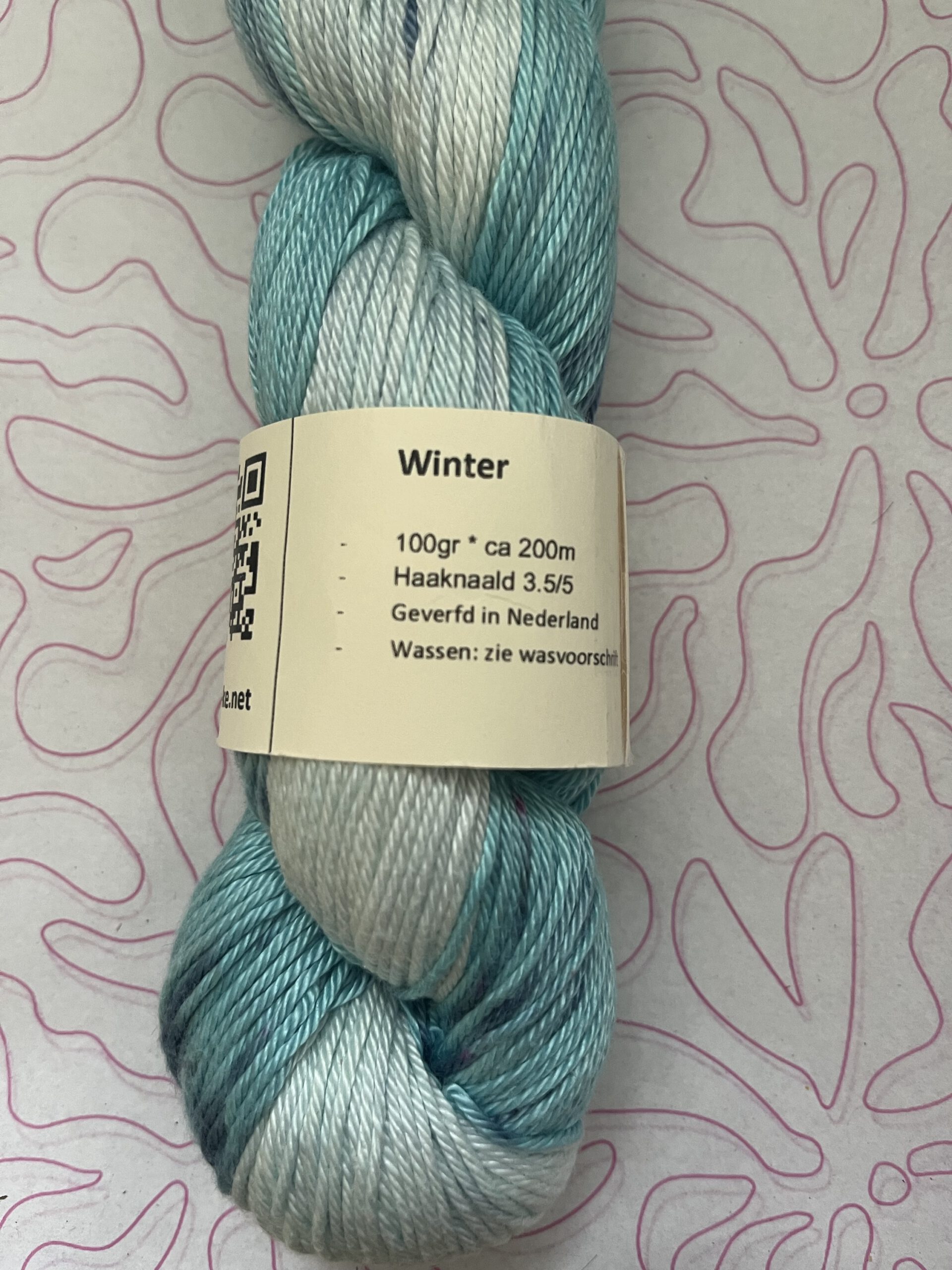 Handgeverfde 100% katoenen garen in de kleur Winter.