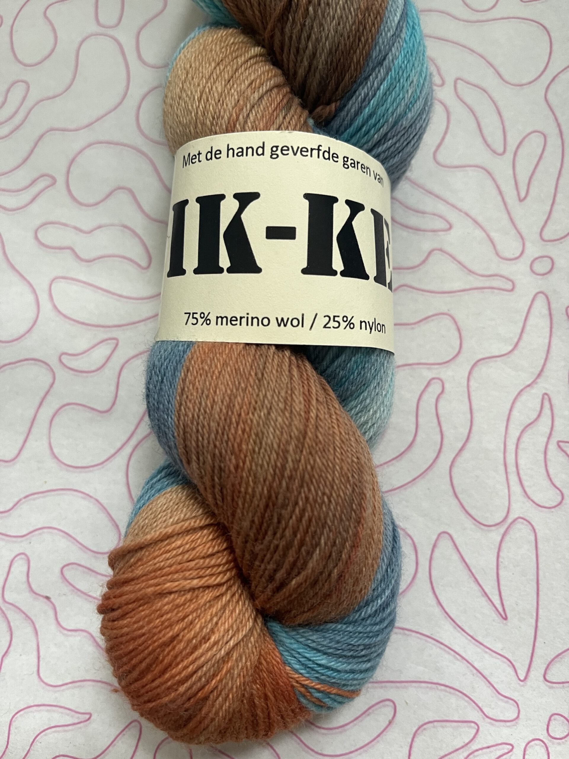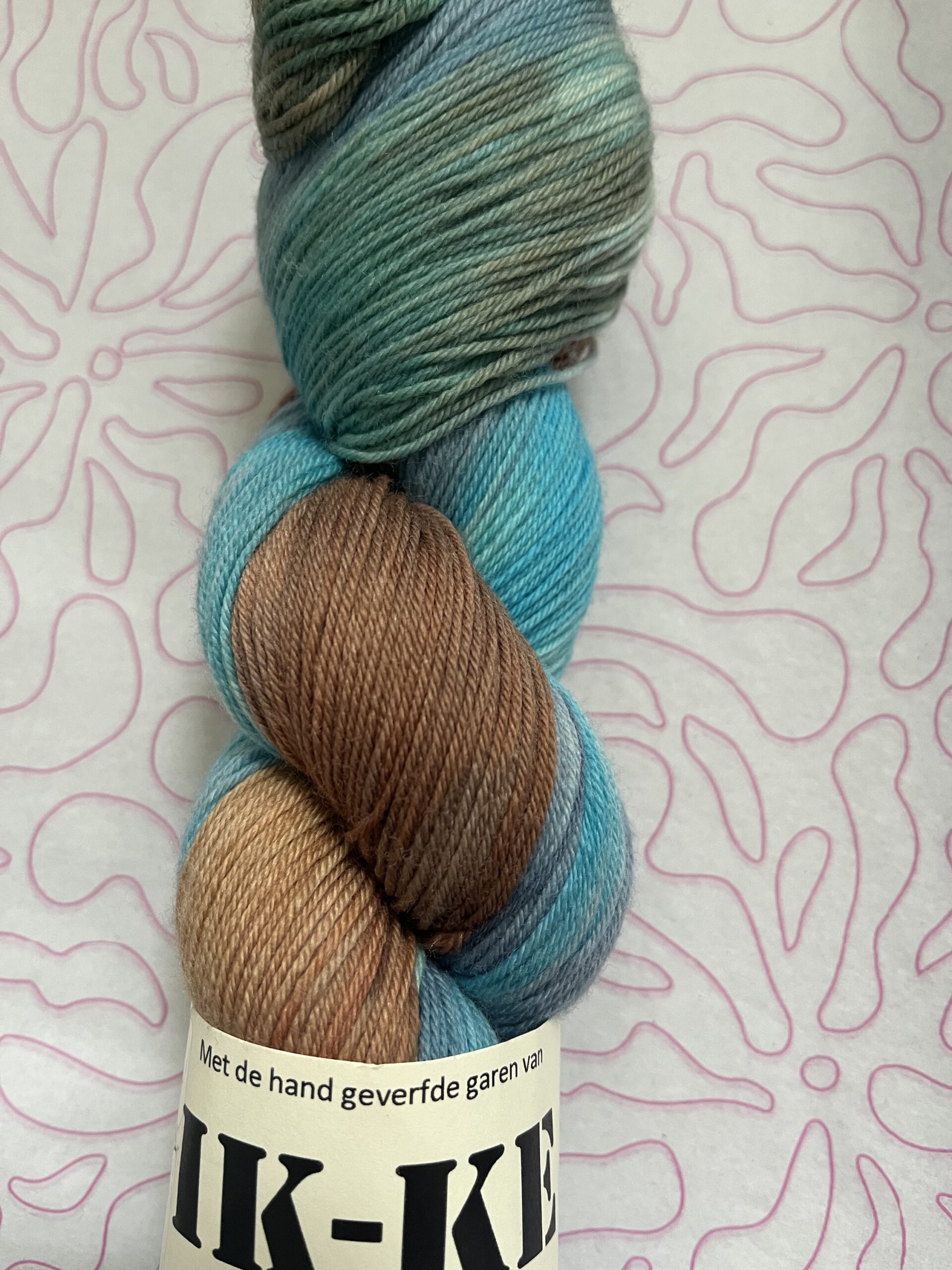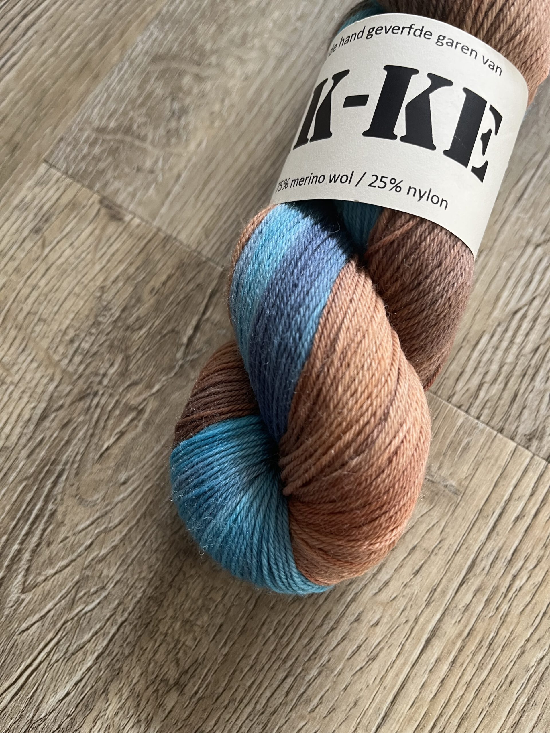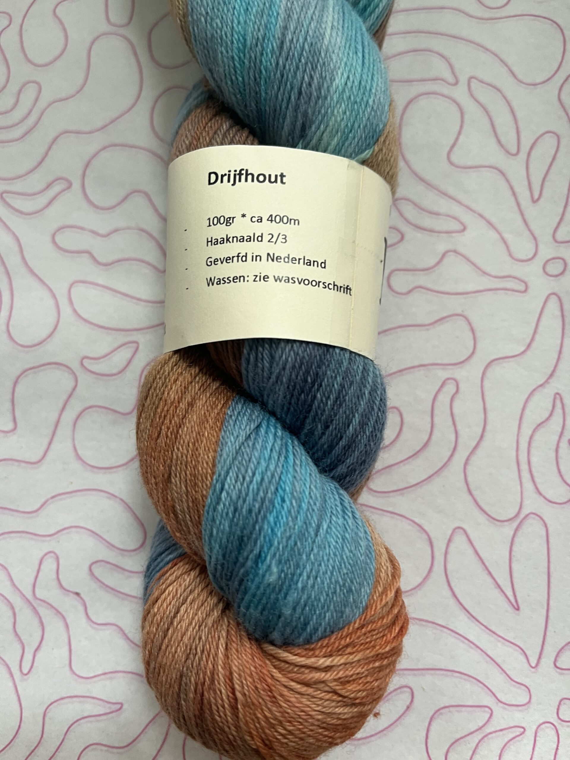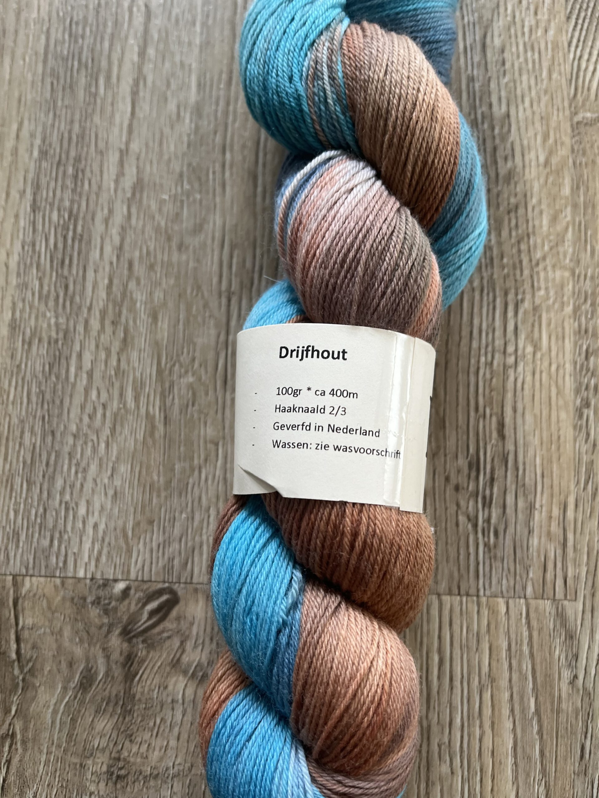 Handgeverfde wollen garen in de kleur Drijfhout.