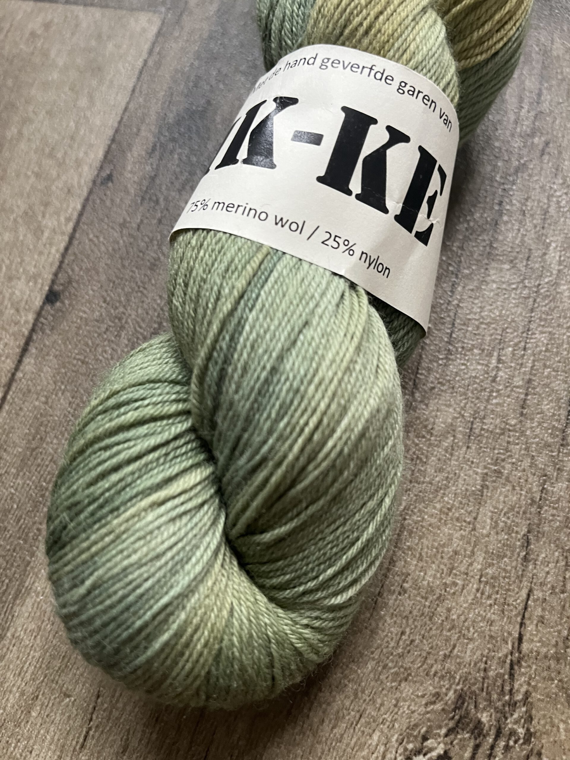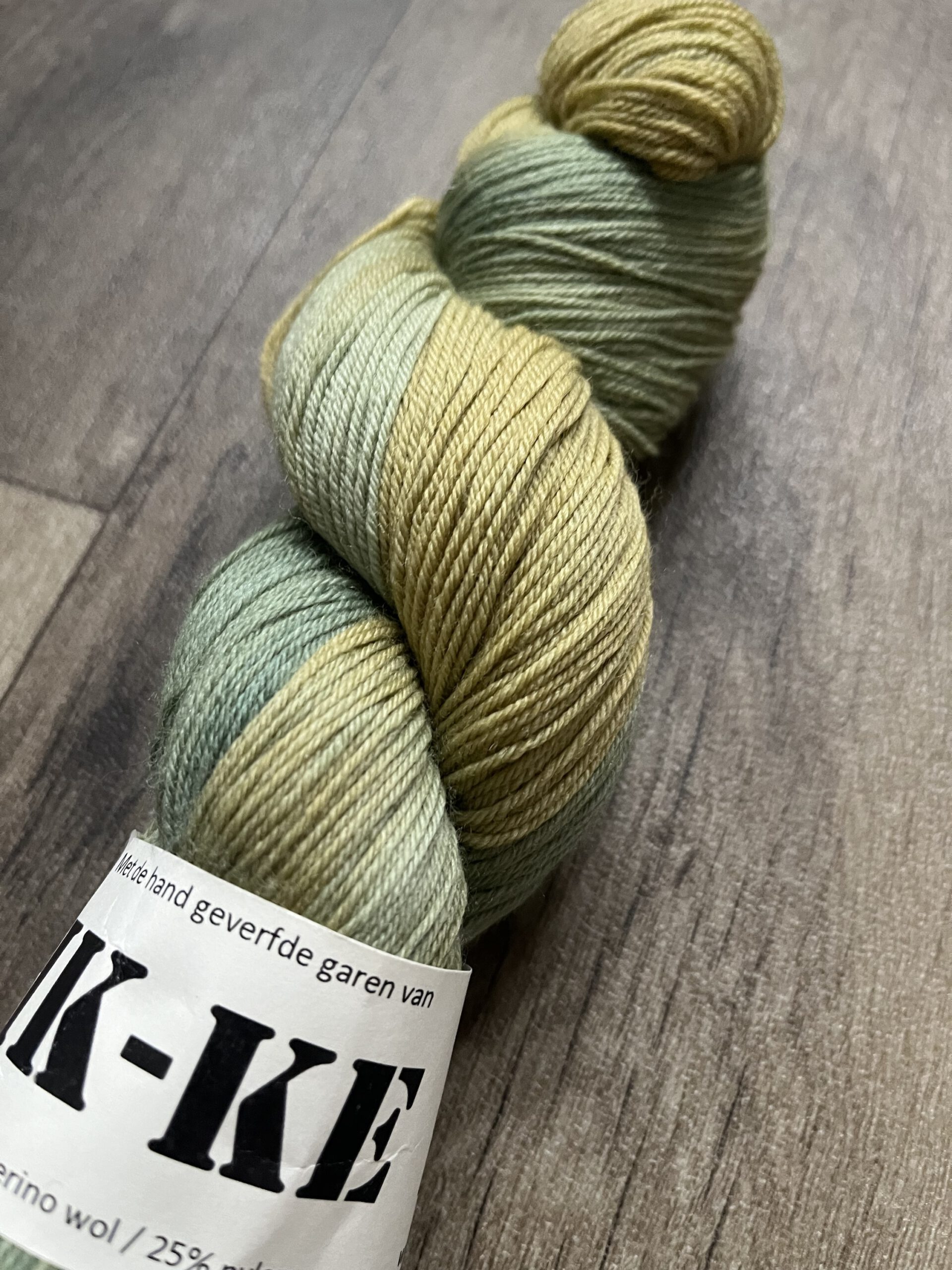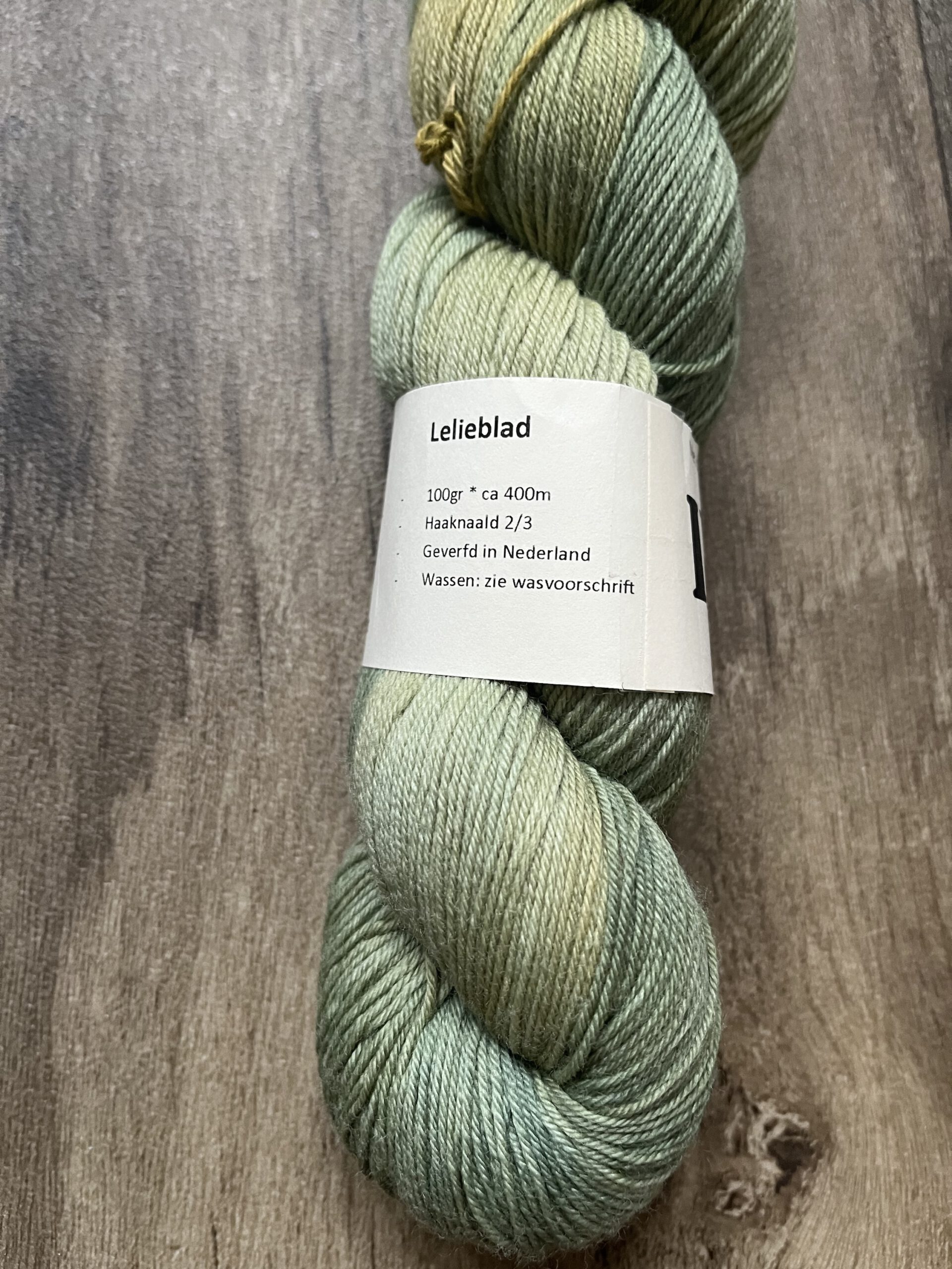 Handgeverfde wollen garen in de kleur Lelieblad.