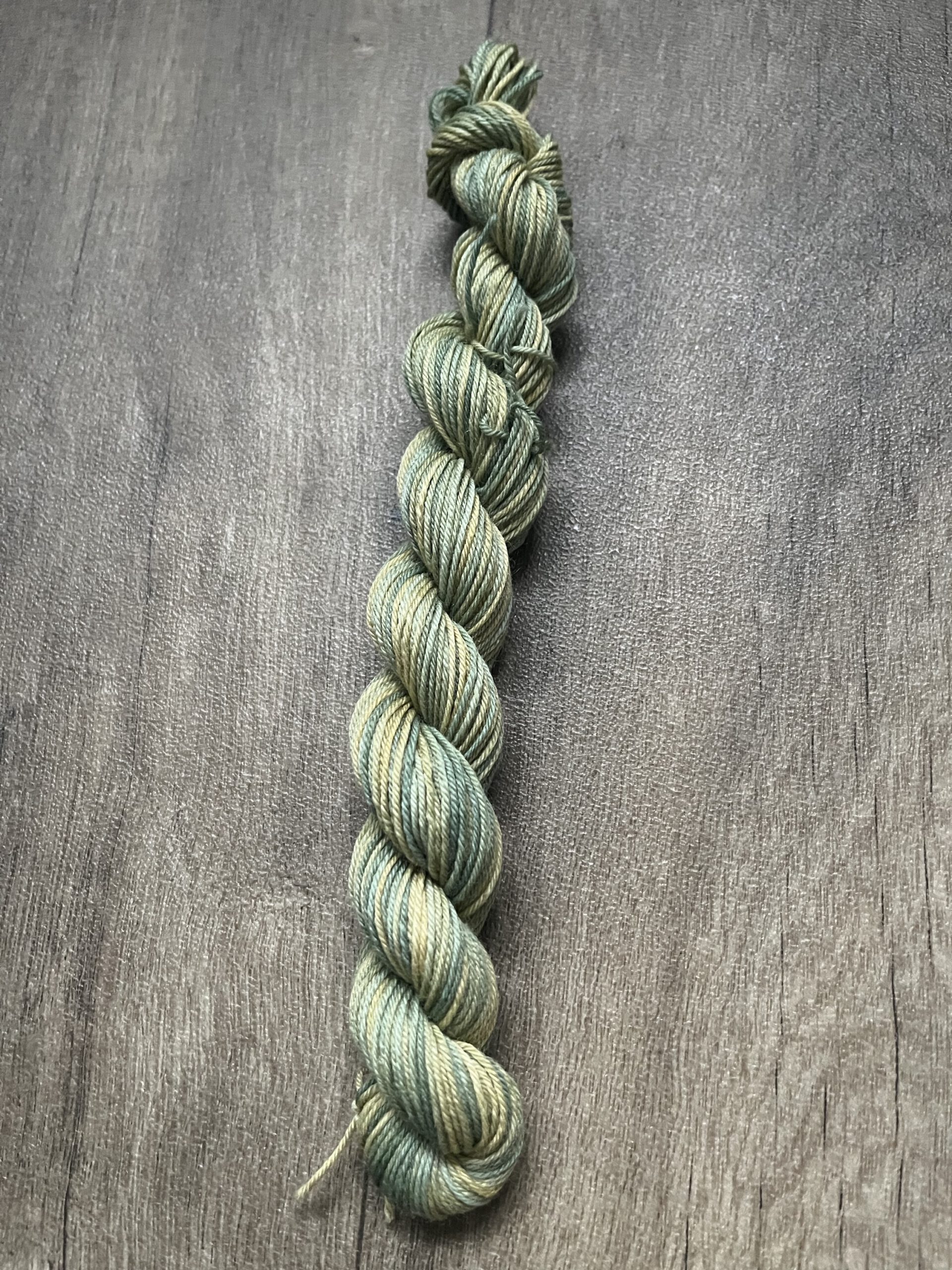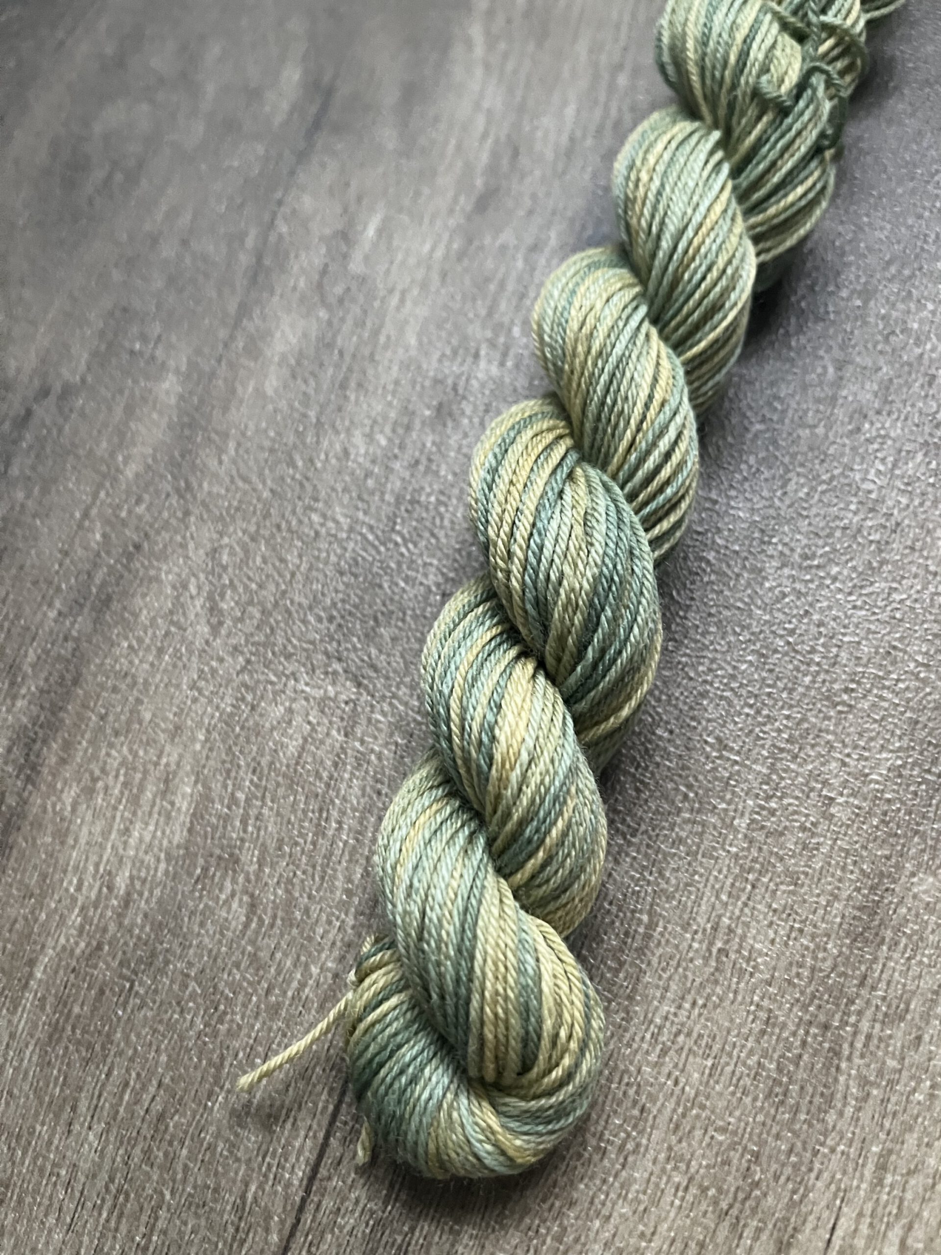 Handgeverfde wollen garen in de kleur Lelieblad.