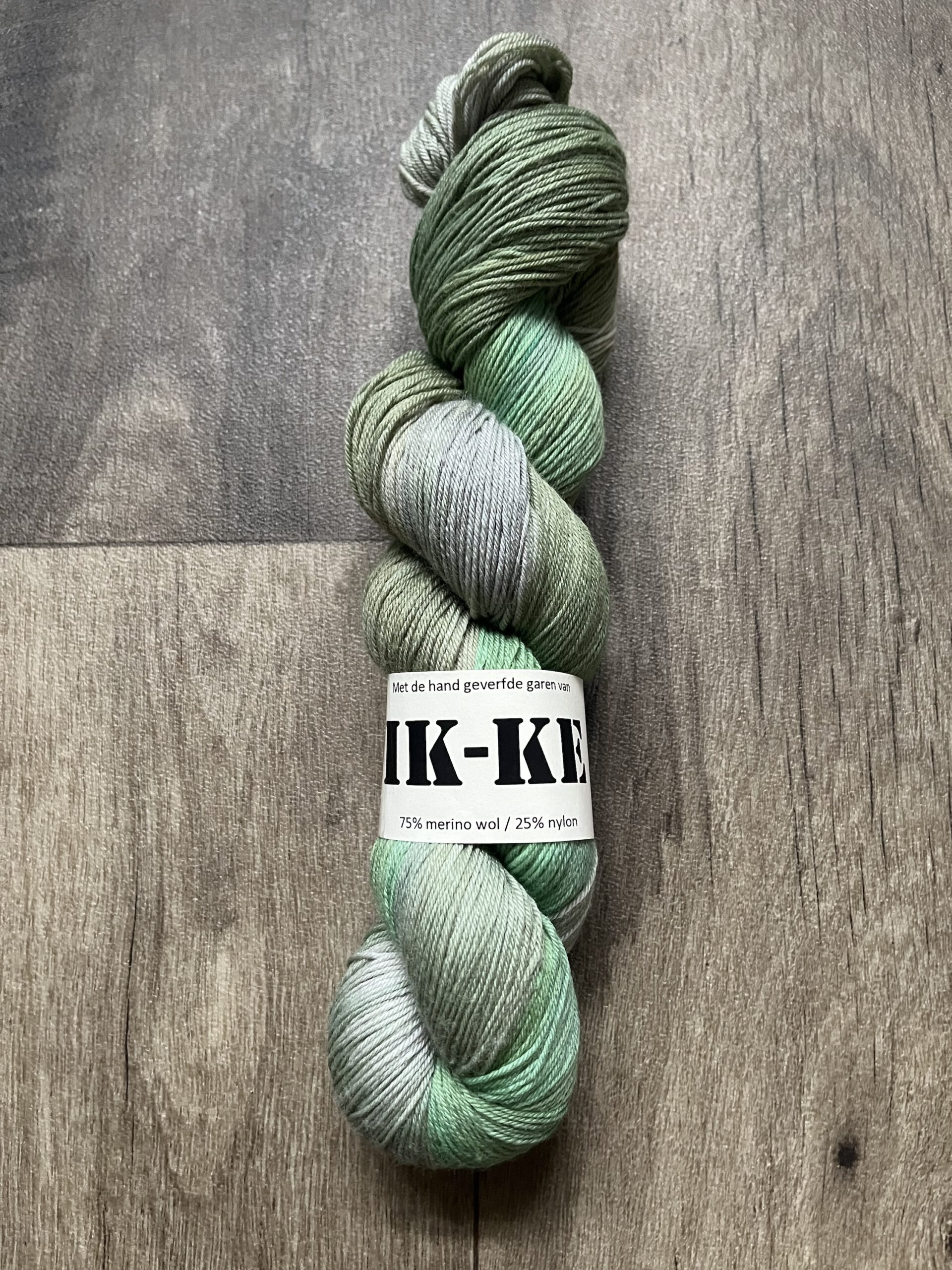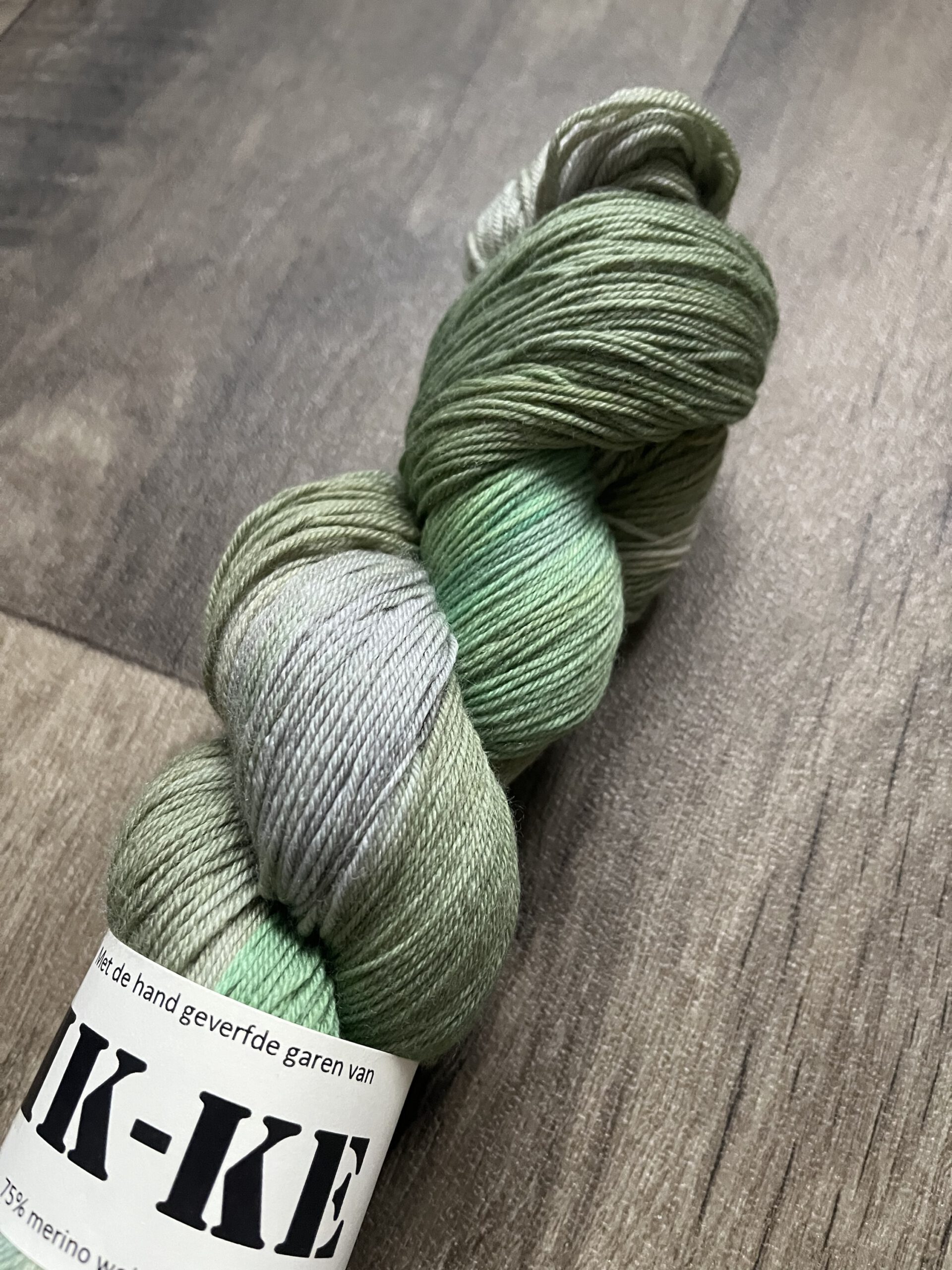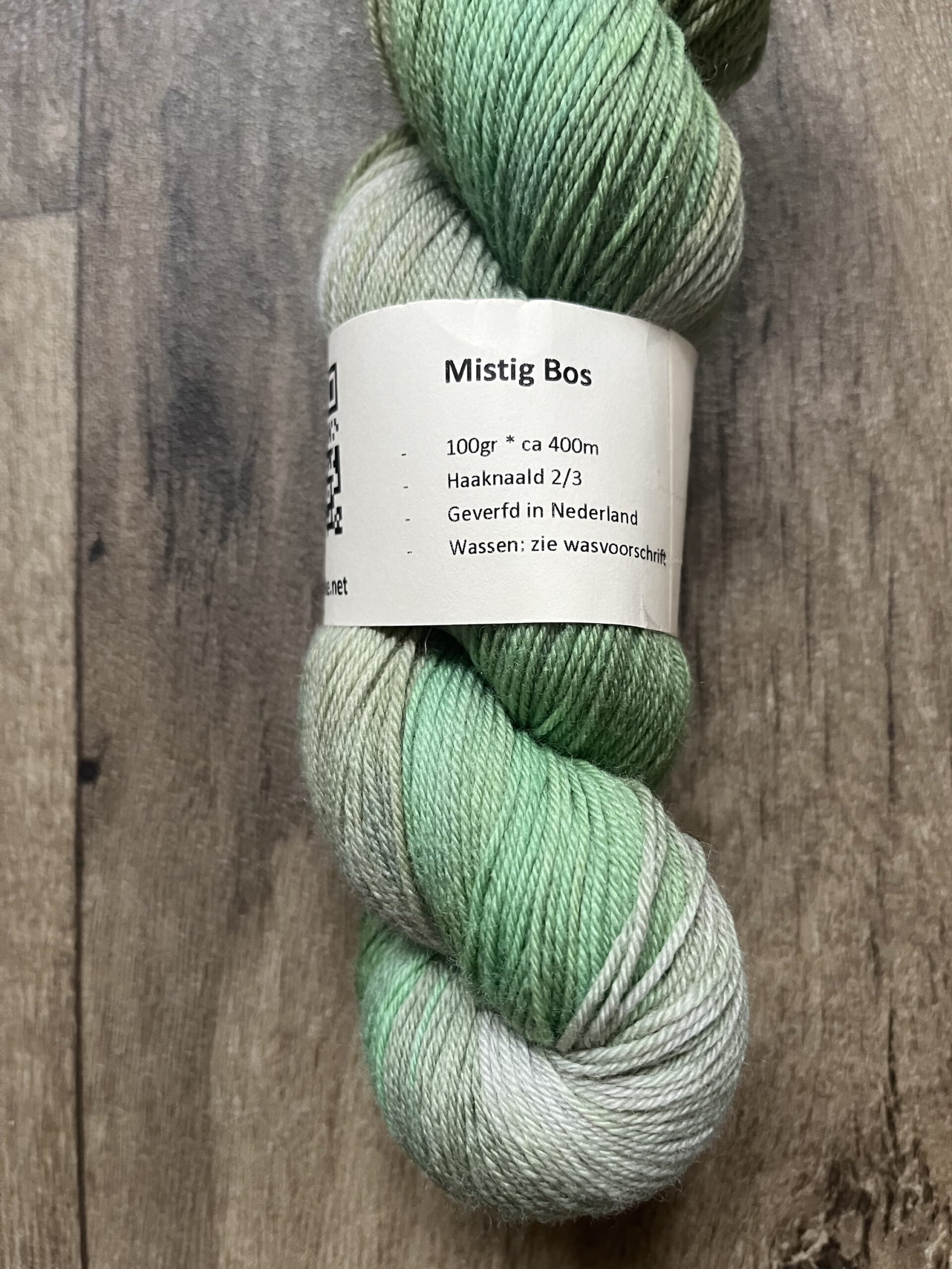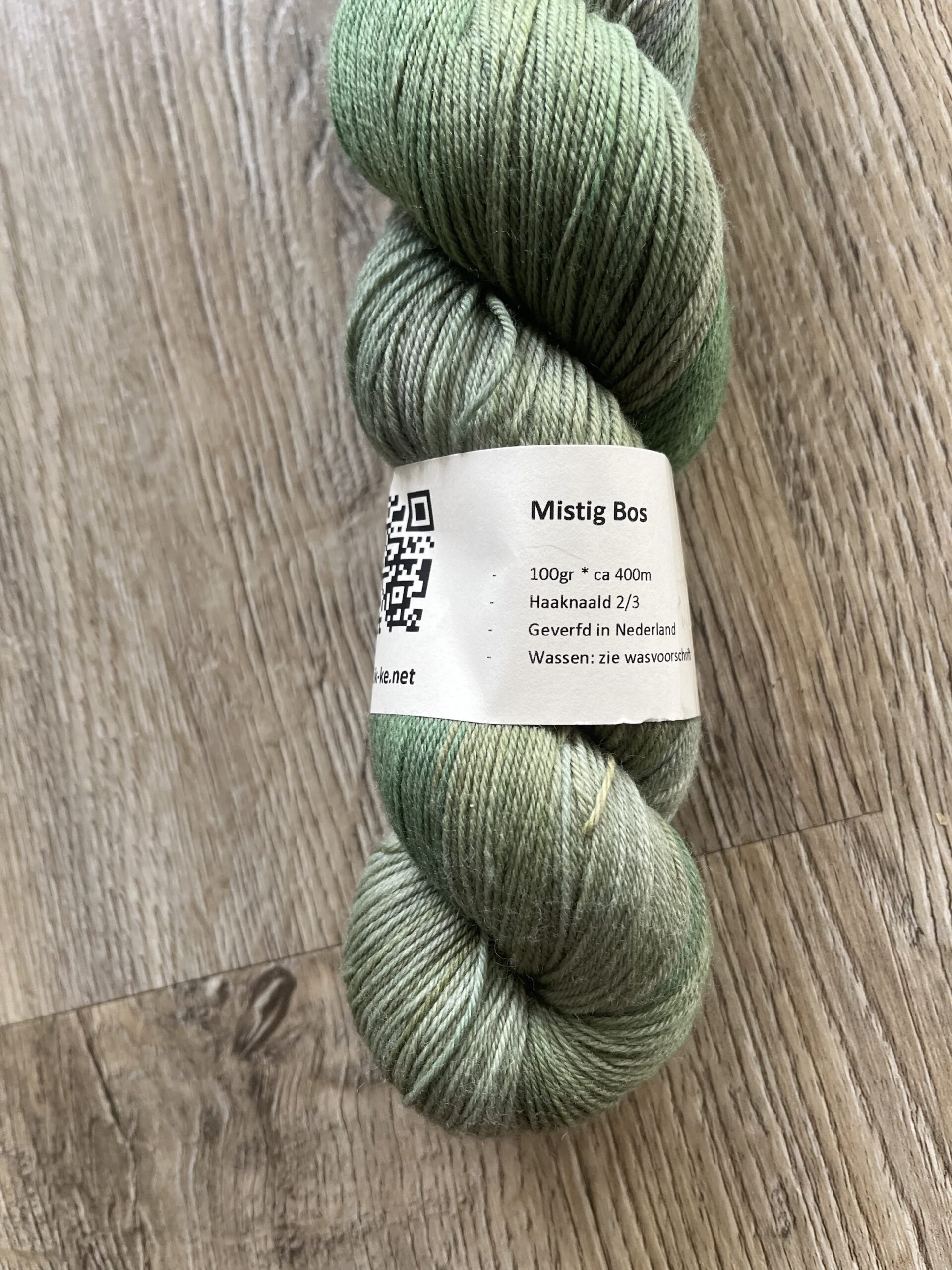 Handgeverfde wollen garen in de kleur Mistig bos.