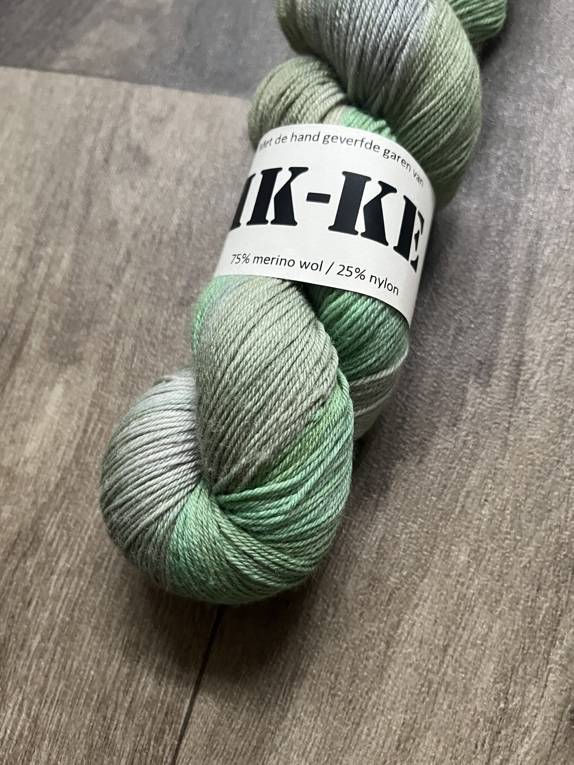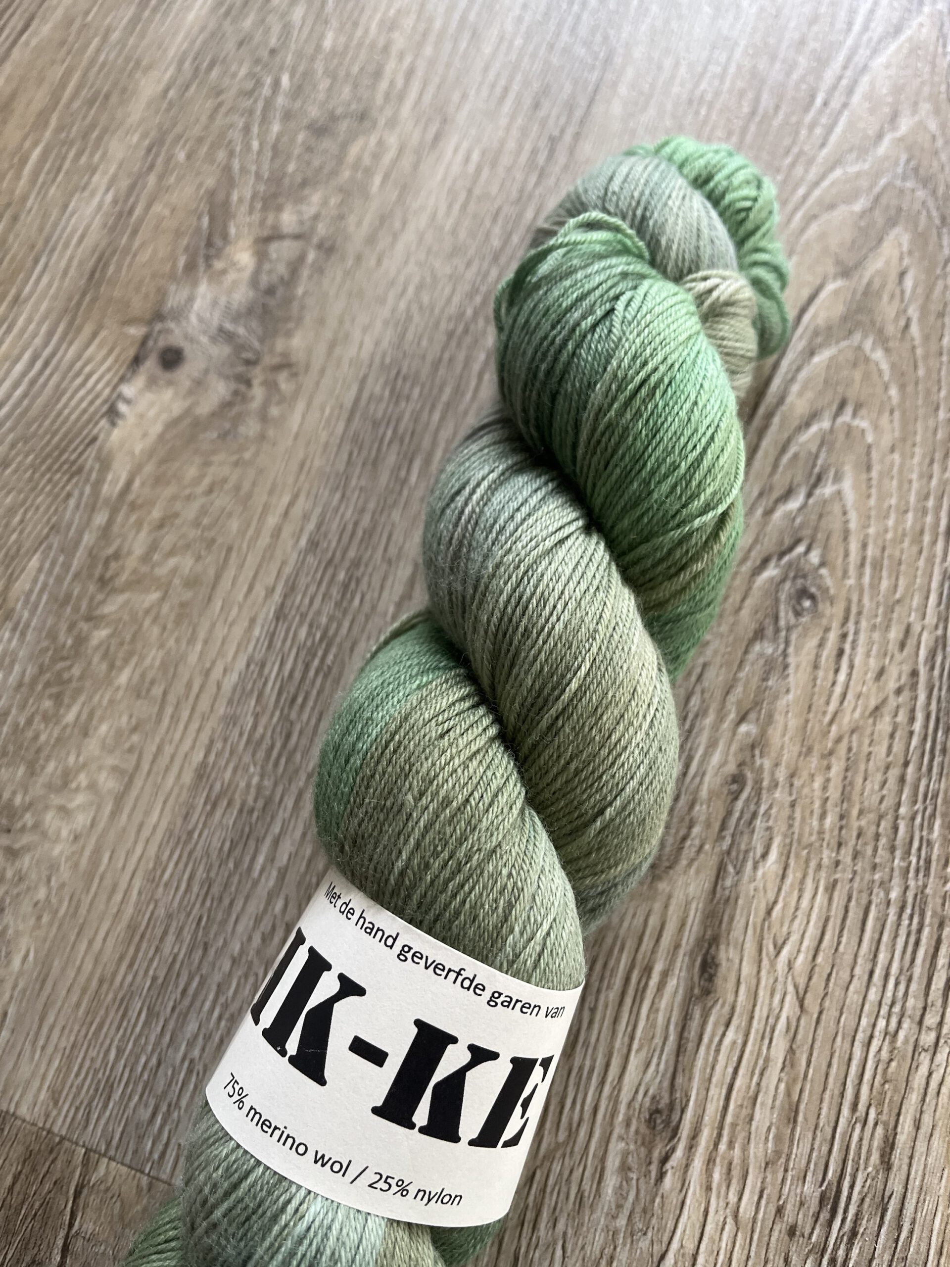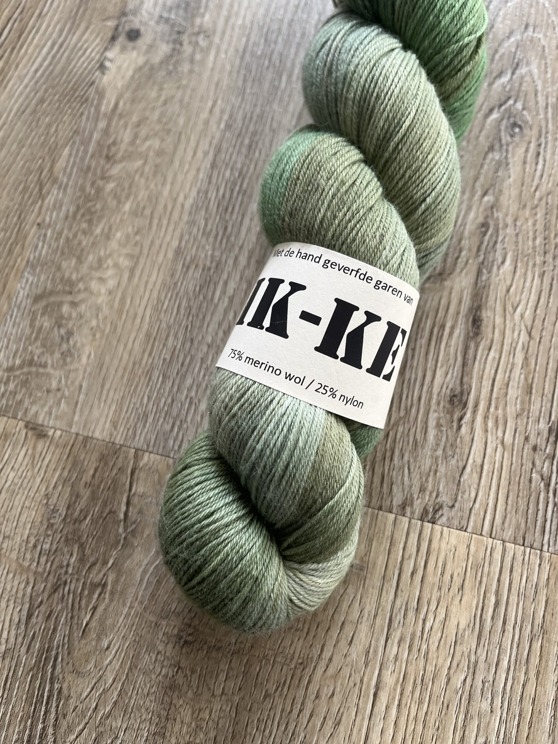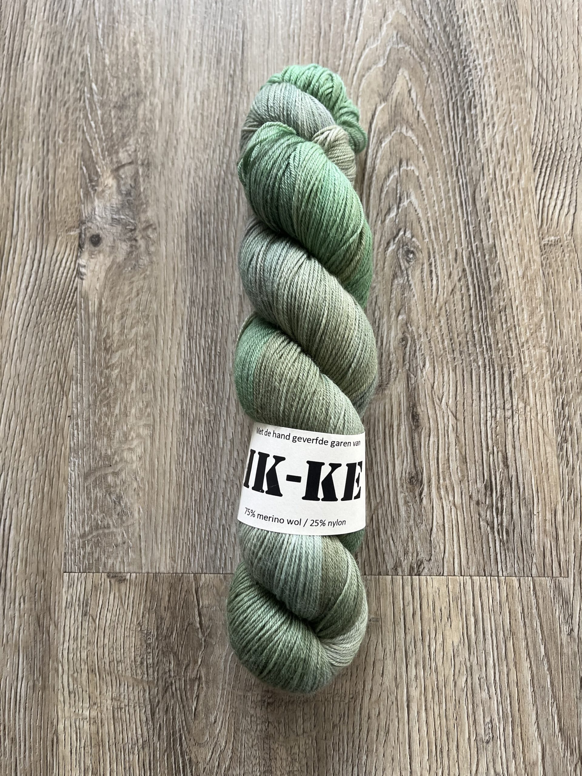Handgeverfde wollen garen in de kleur Mistig bos.