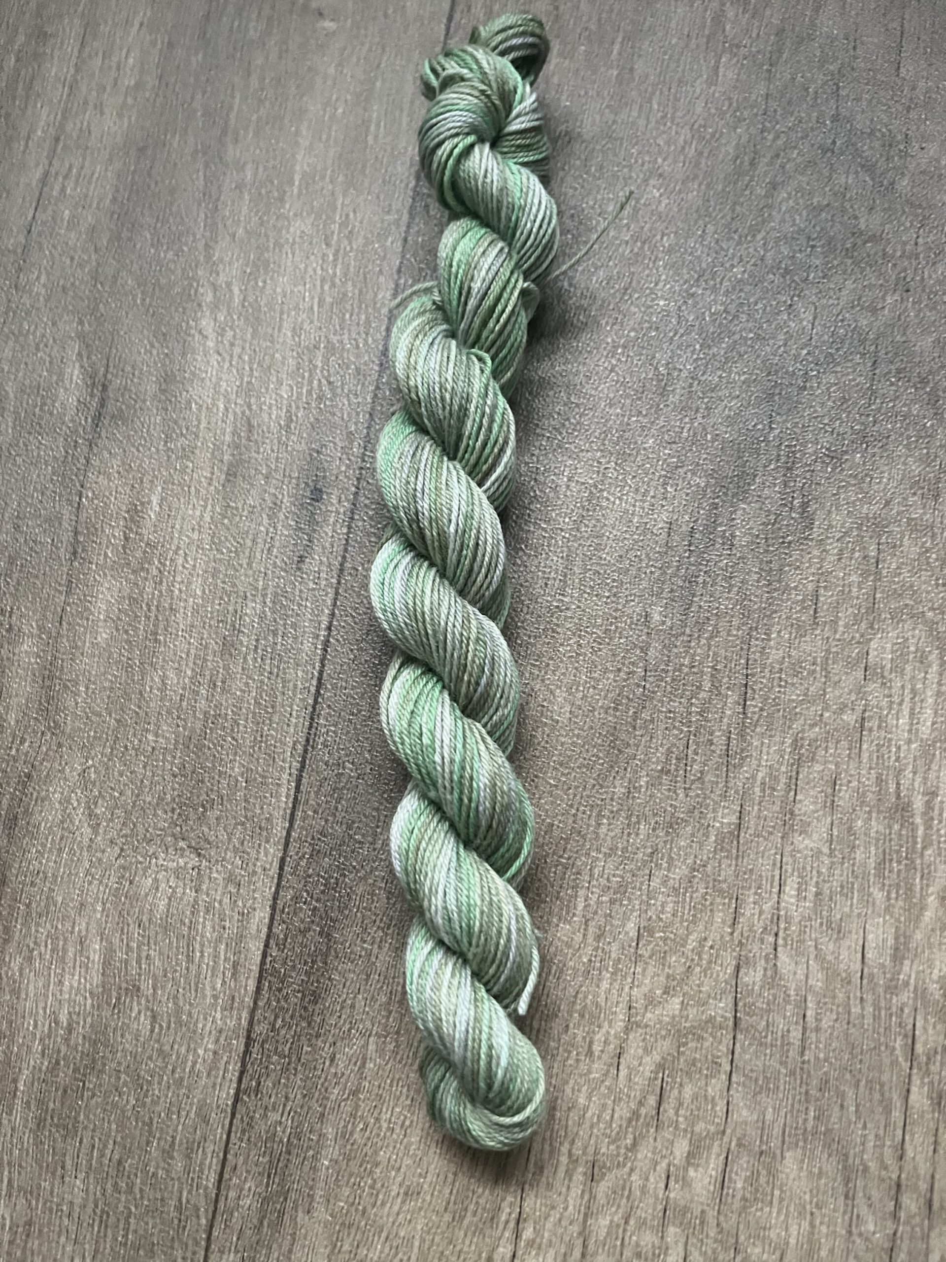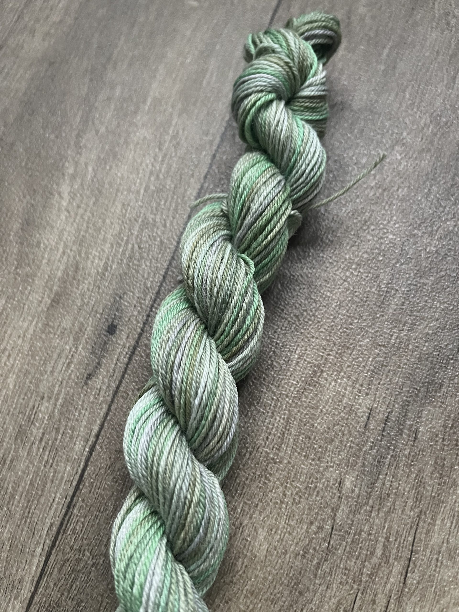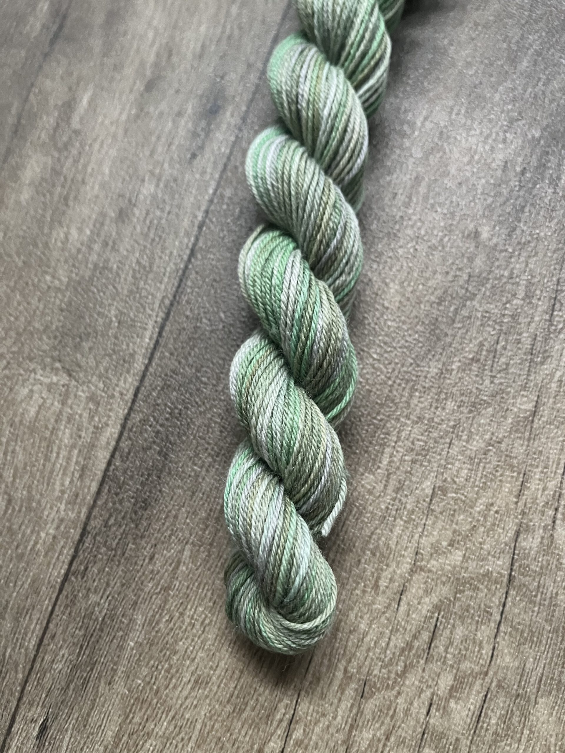 Er is geen streng qua kleur precies hetzelfde, ook al komen de strengen uit hetzelfde verfbad. Dit komt doordat de strengen met de hand geverfd worden en de kleuren elke streng net iets anders kunnen raken.