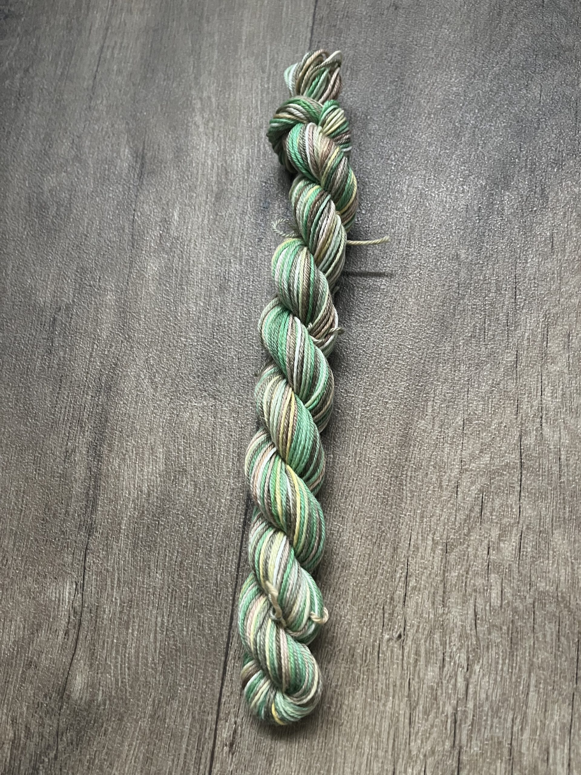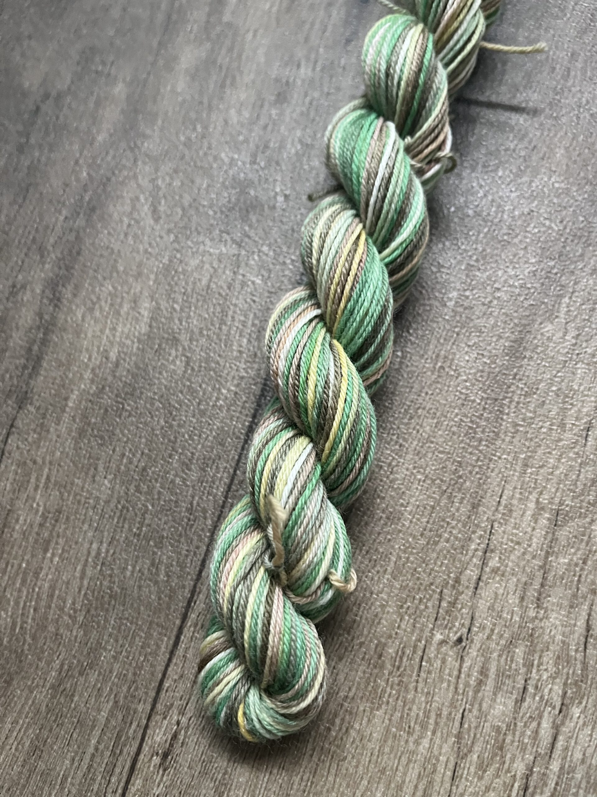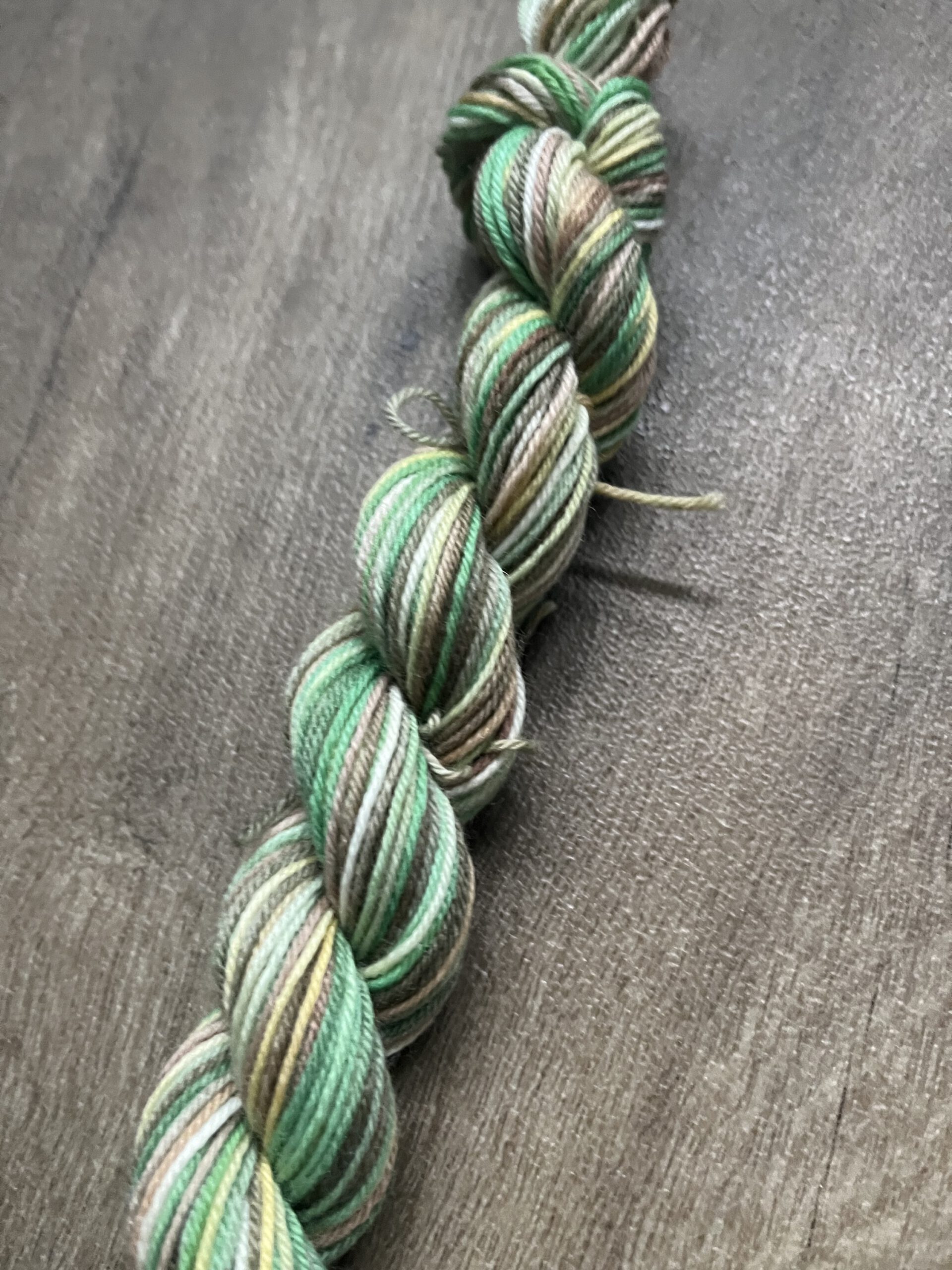 Handgeverfde wollen garen in de kleur Moestuin.