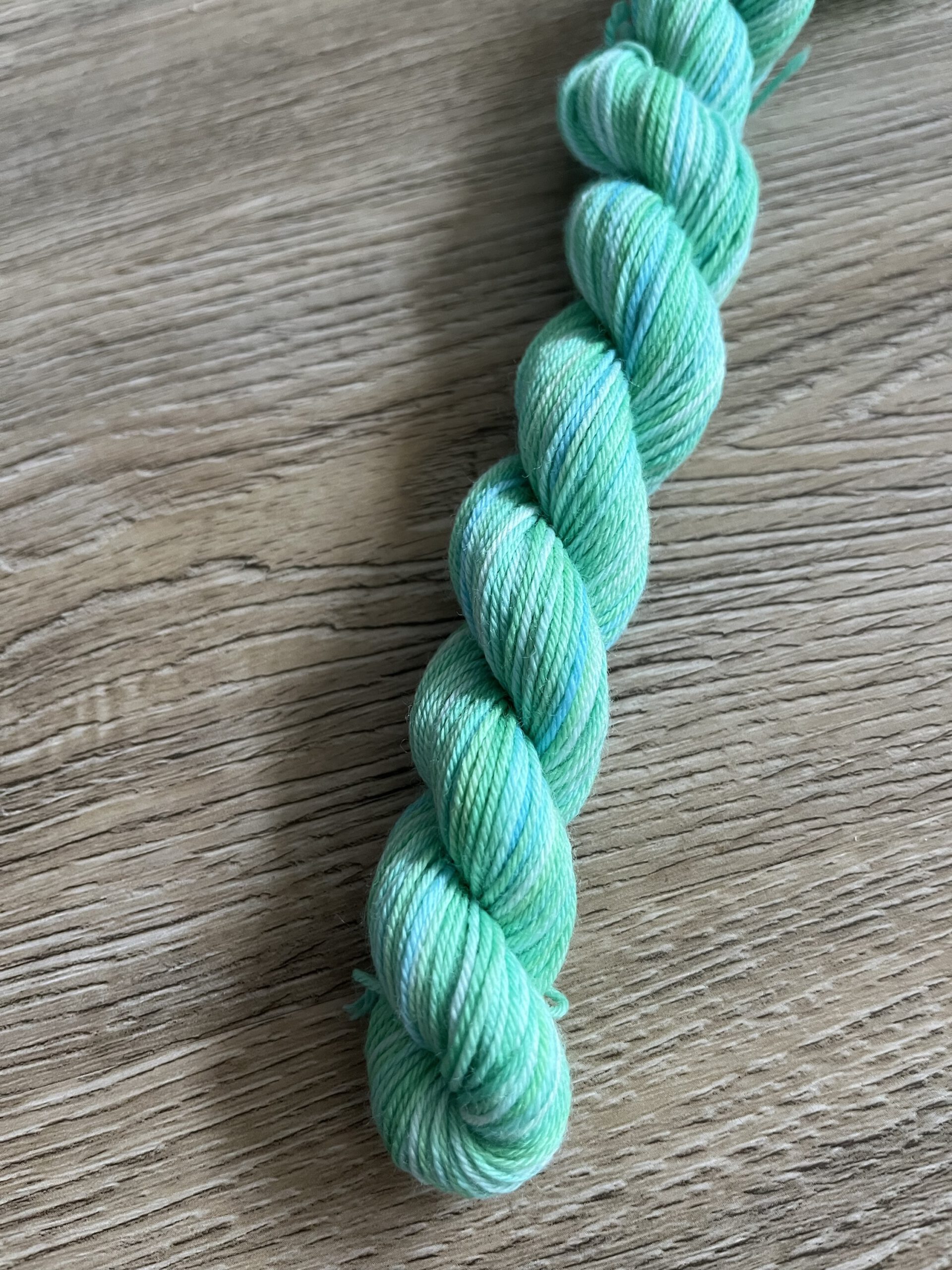 Er is geen streng qua kleur precies hetzelfde, ook al komen de strengen uit hetzelfde verfbad. Dit komt doordat de strengen met de hand geverfd worden en de kleuren elke streng net iets anders kunnen raken.