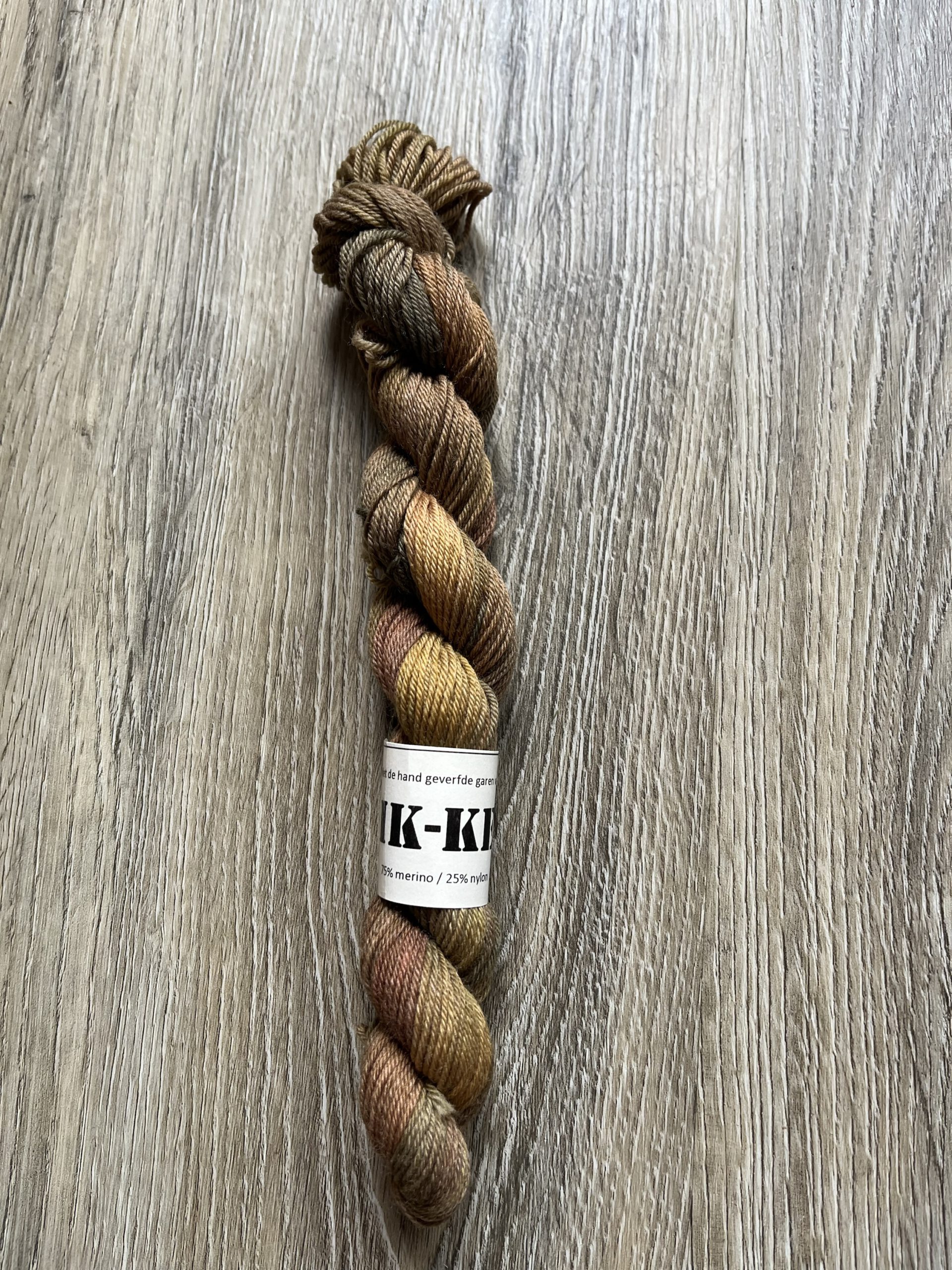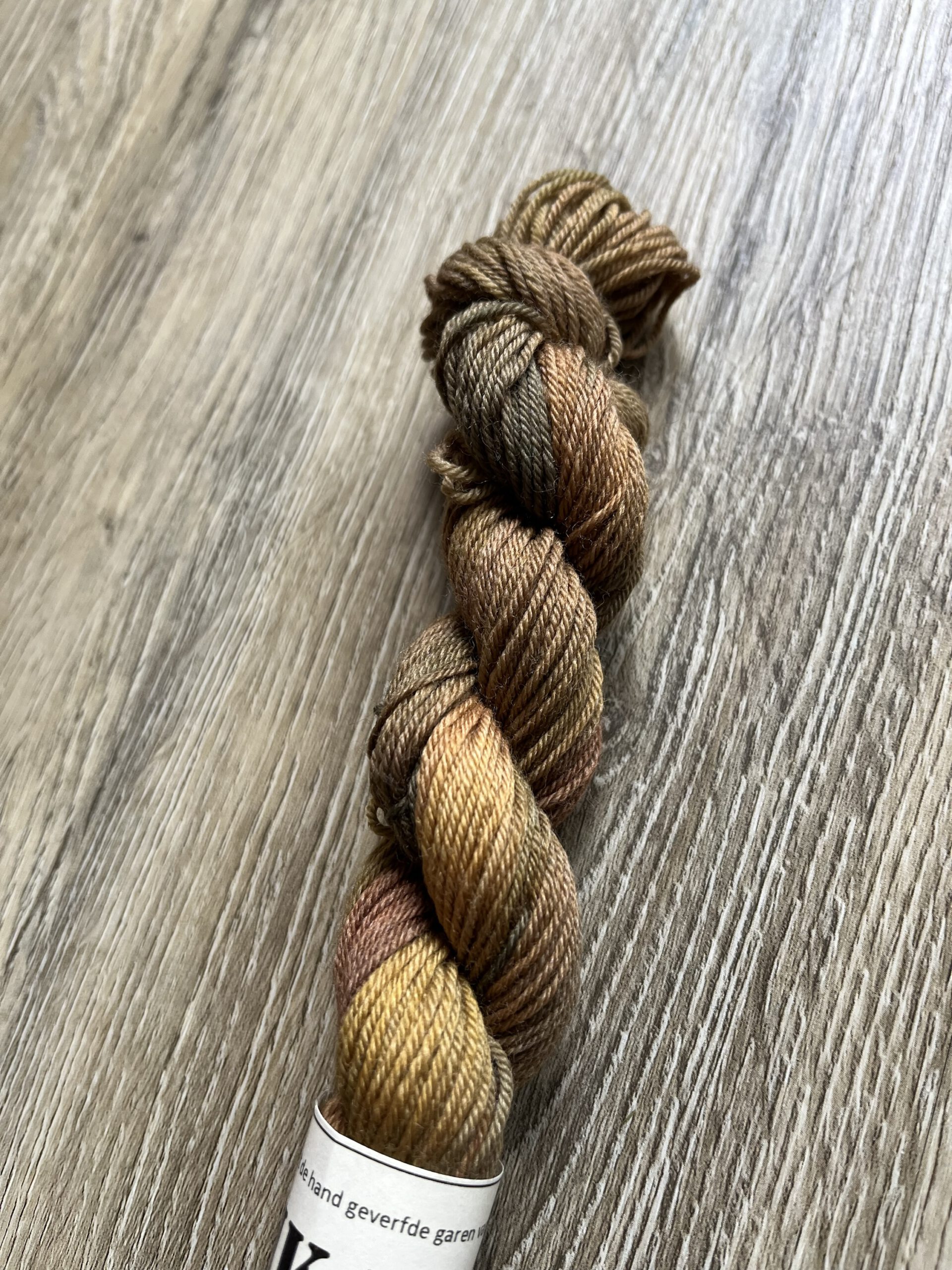 Er is geen streng qua kleur precies hetzelfde, ook al komen de strengen uit hetzelfde verfbad. Dit komt doordat de strengen met de hand geverfd worden en de kleuren elke streng net iets anders kunnen raken.