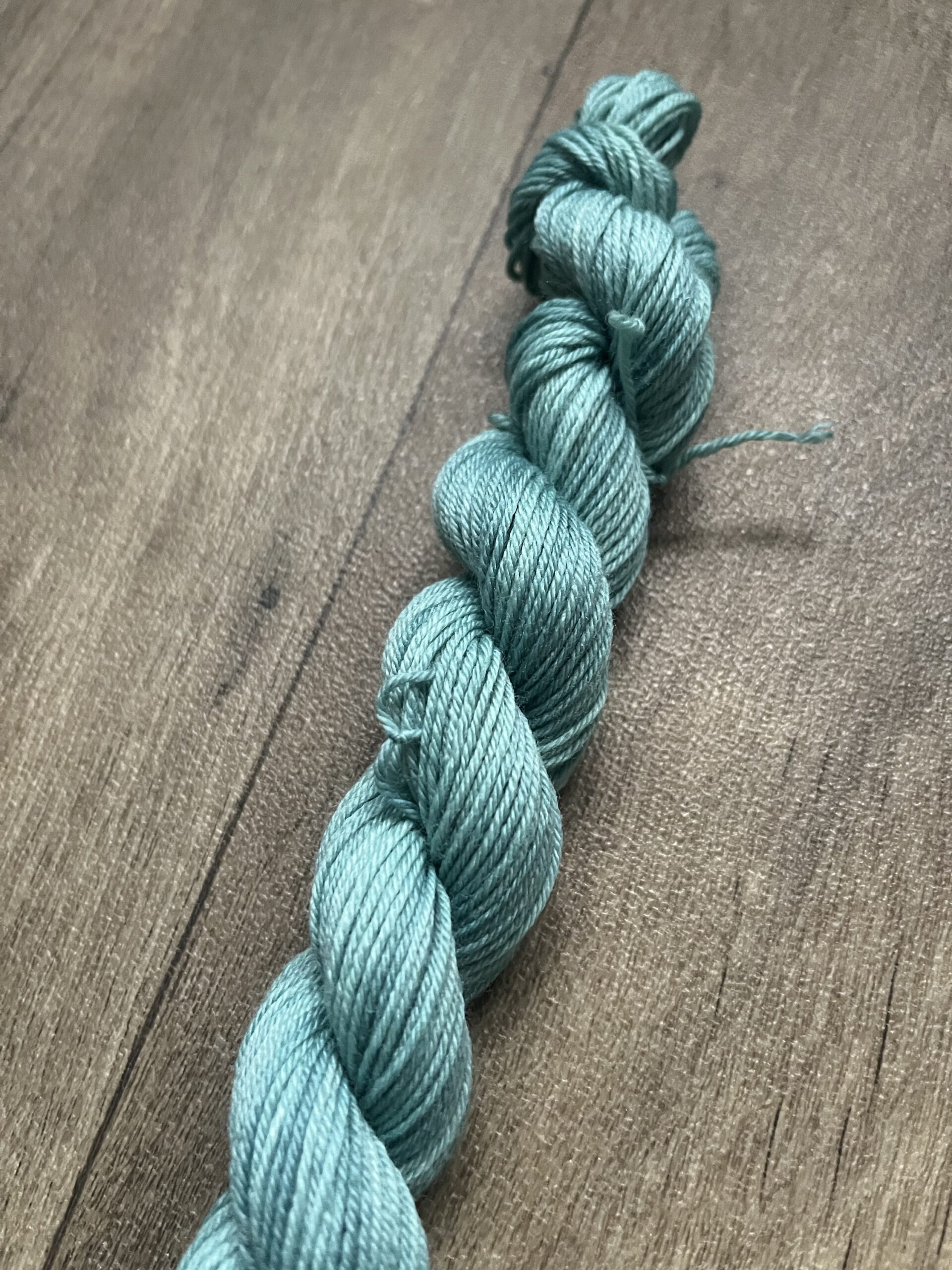 Er is geen streng qua kleur precies hetzelfde, ook al komen de strengen uit hetzelfde verfbad. Dit komt doordat de strengen met de hand geverfd worden en de kleuren elke streng net iets anders kunnen raken.