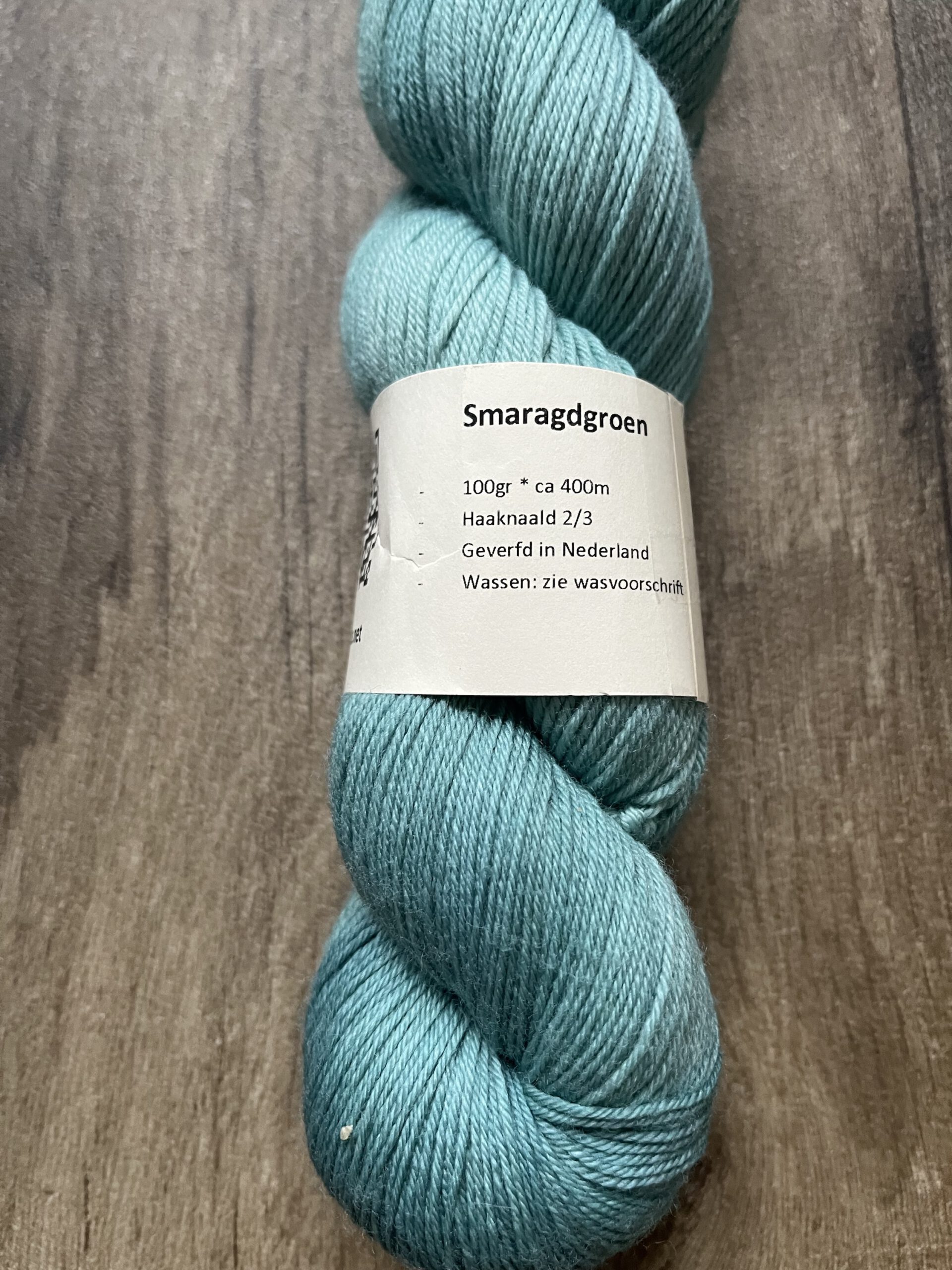 Handgeverfde wollen garen in de kleur Smaragdgroen.